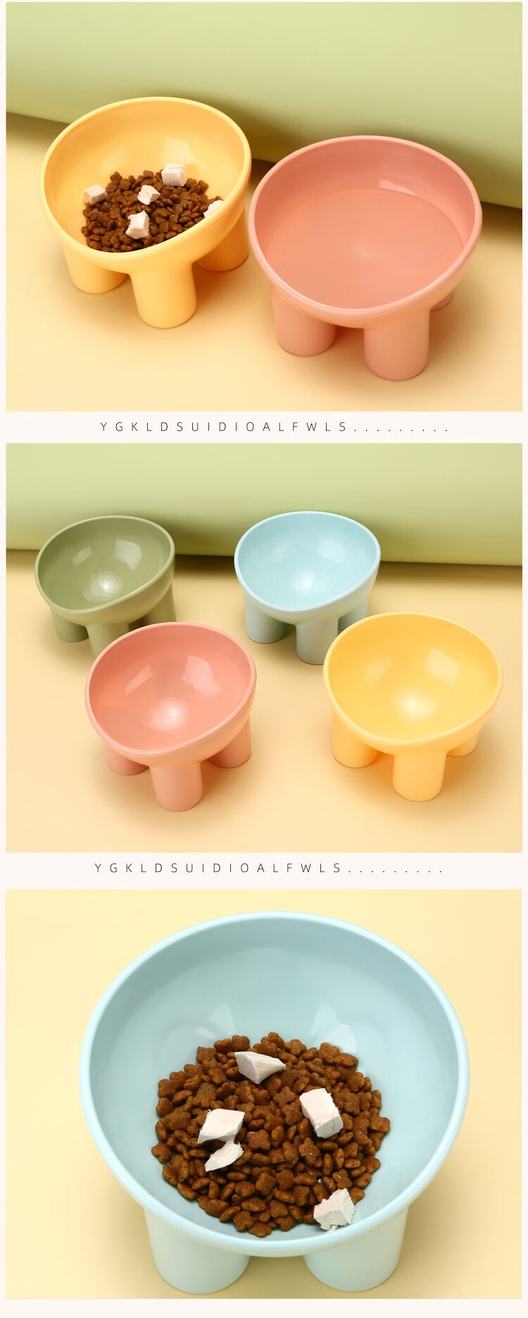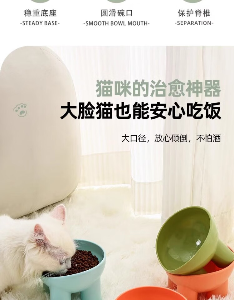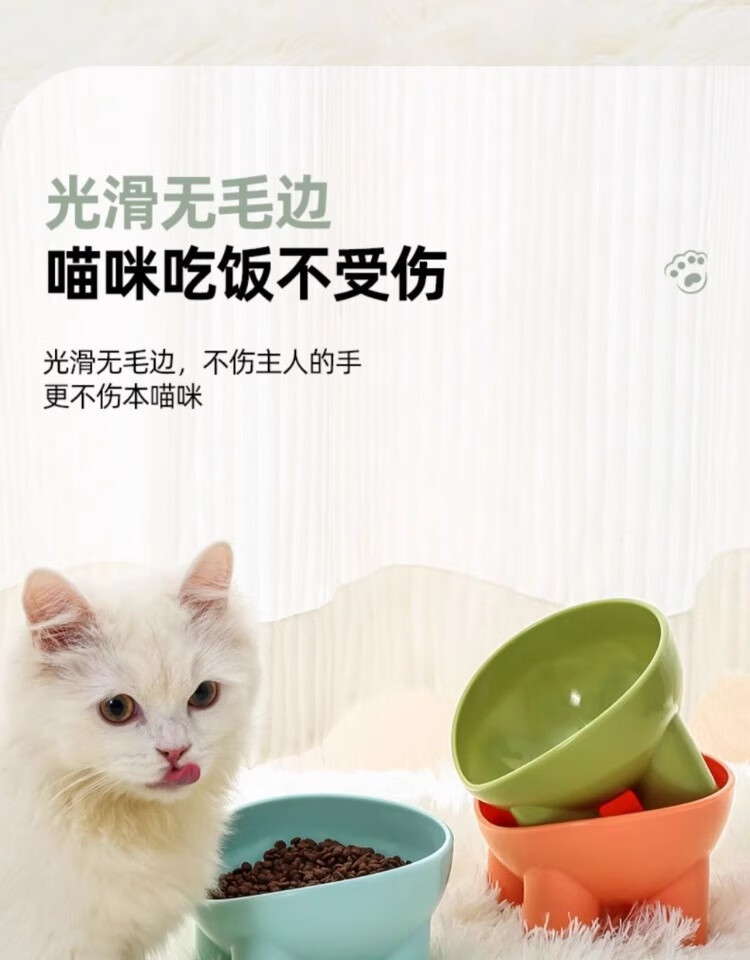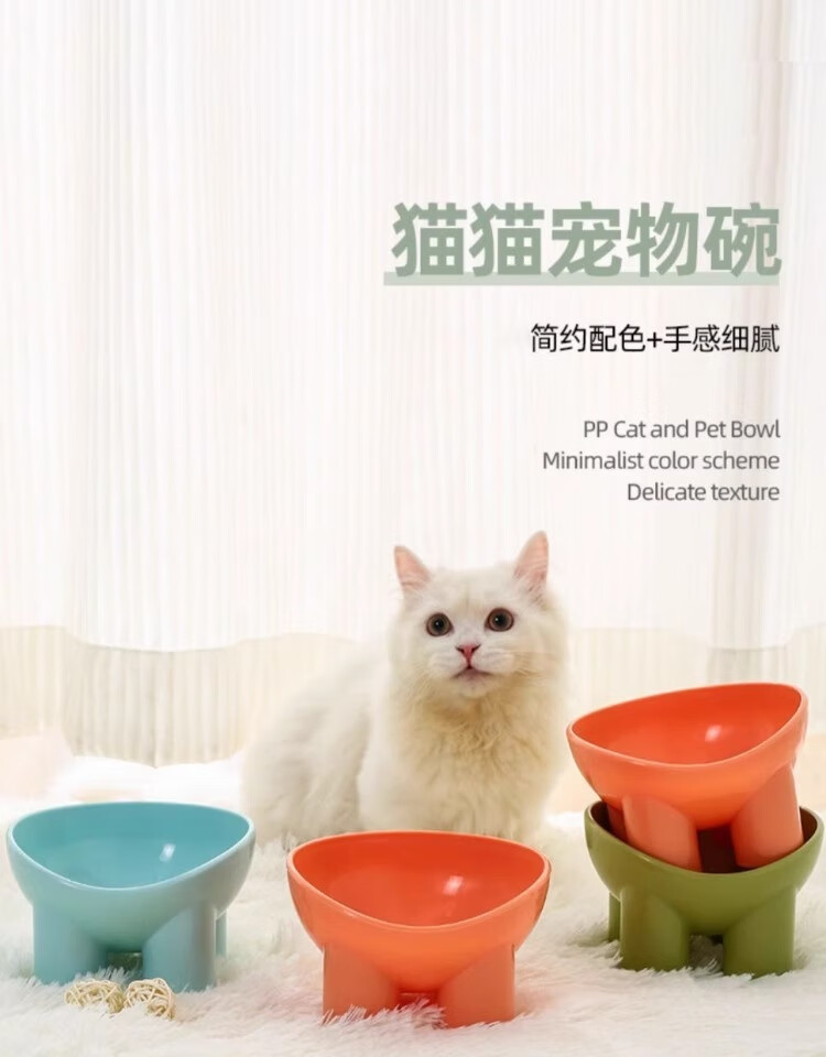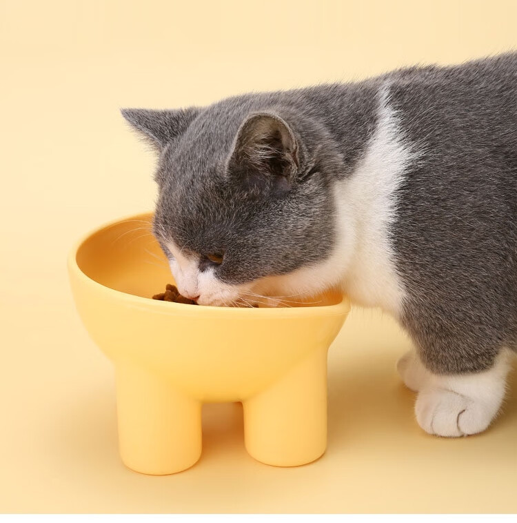 New pet bowl, macaron, ivory leg, neck guard, high foot, slant mouth, drinking water feeding bowl, dog bowl, food bowl, 1 random color (special price)