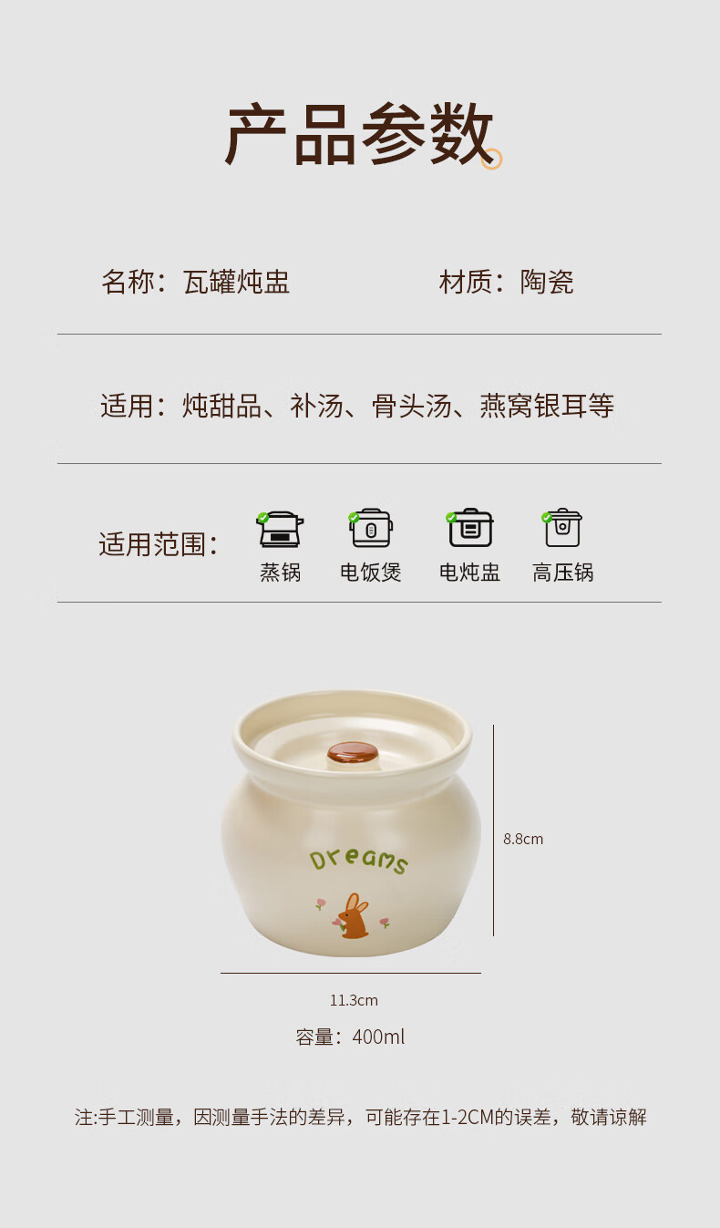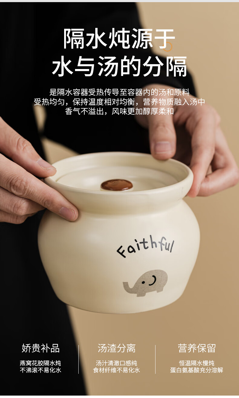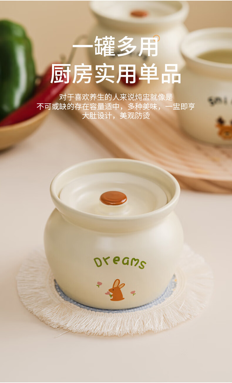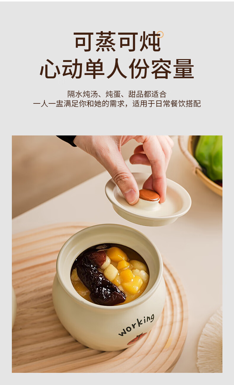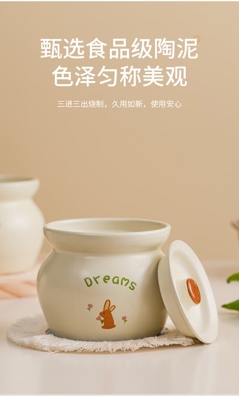 Yundi cream style stew pot earthenware pot simmering soup bowl ceramic water-proof stew pot pot with lid household Shaxian one-person soup steaming cup DY cream earthen pot stew pot-Xiaoxiang 11.8cm