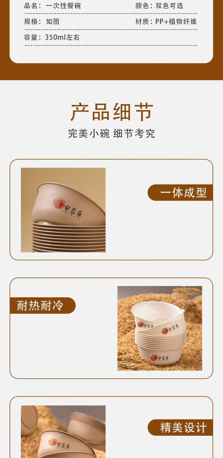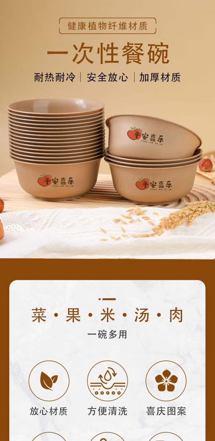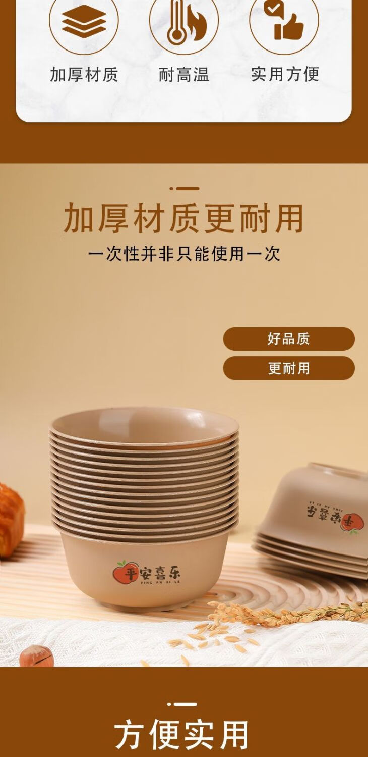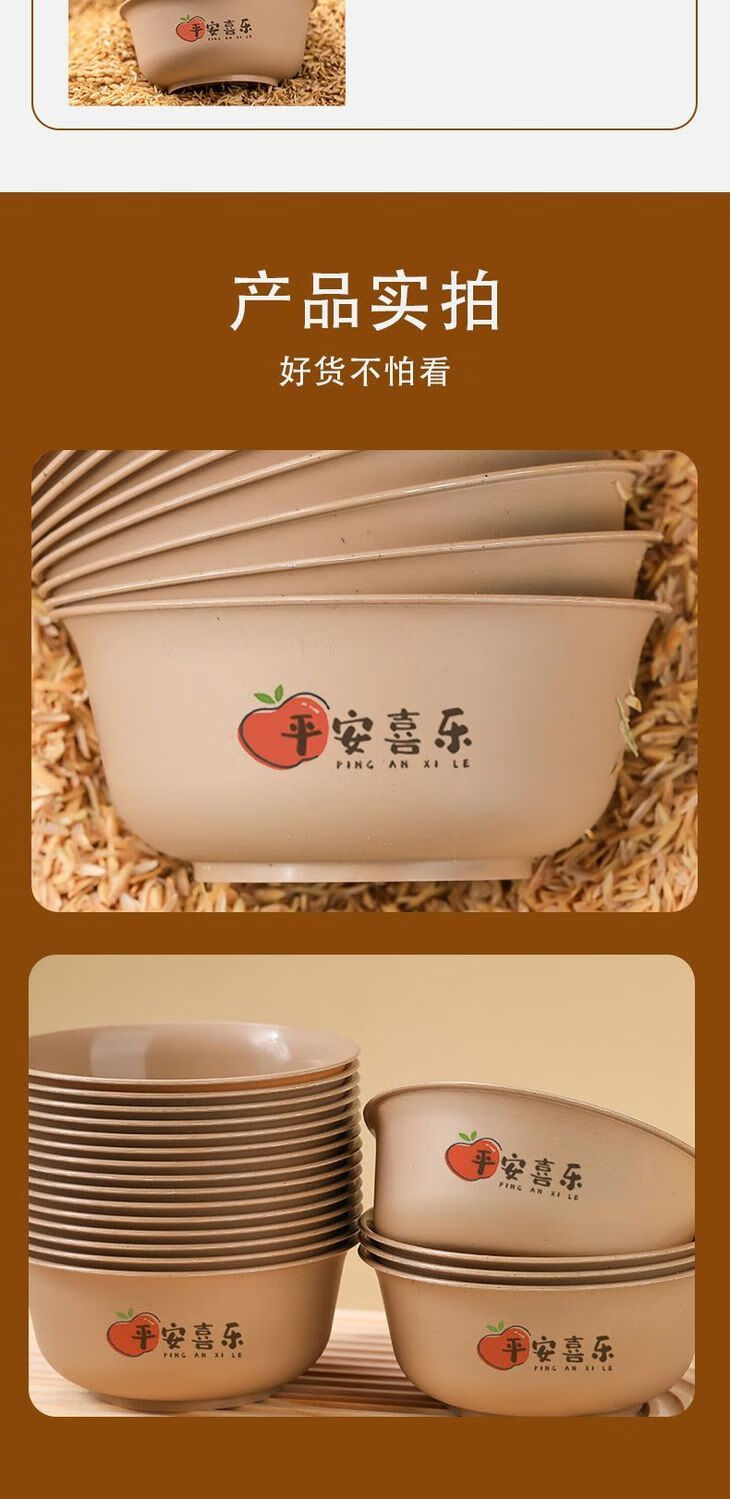 Rice husk disposable bowl printed round bowl degradable environmentally friendly food grade household thickening and hardening high temperature resistant camping Ping An Xile rice husk bowl original color 100 pieces