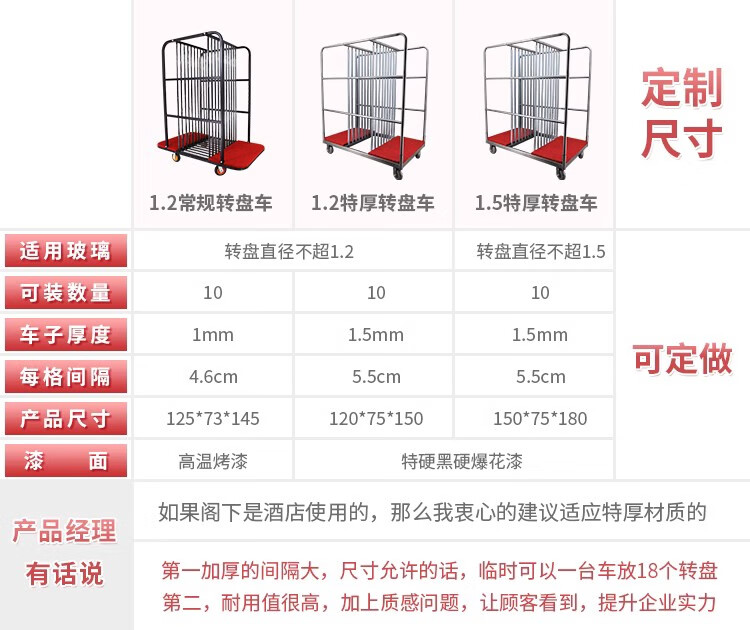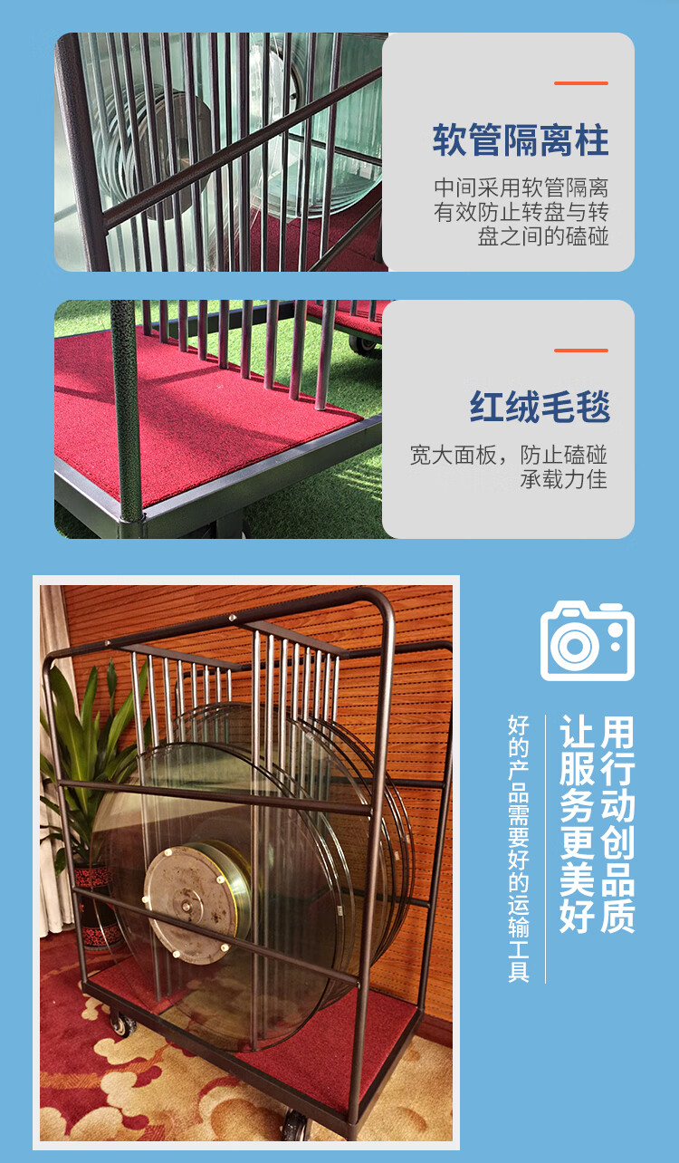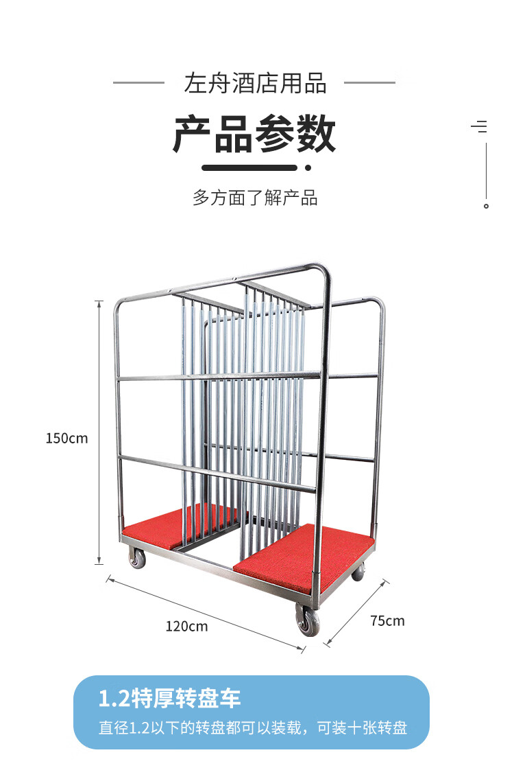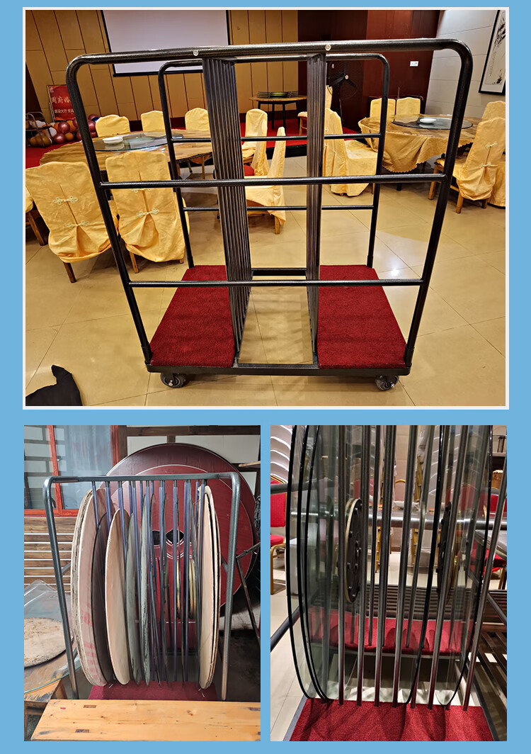Zuozhou Zuozhou glass turntable hotel restaurant banquet metal storage collection truck stainless steel hotel linen truck flatbed truck 1.2 meters thickened square tube