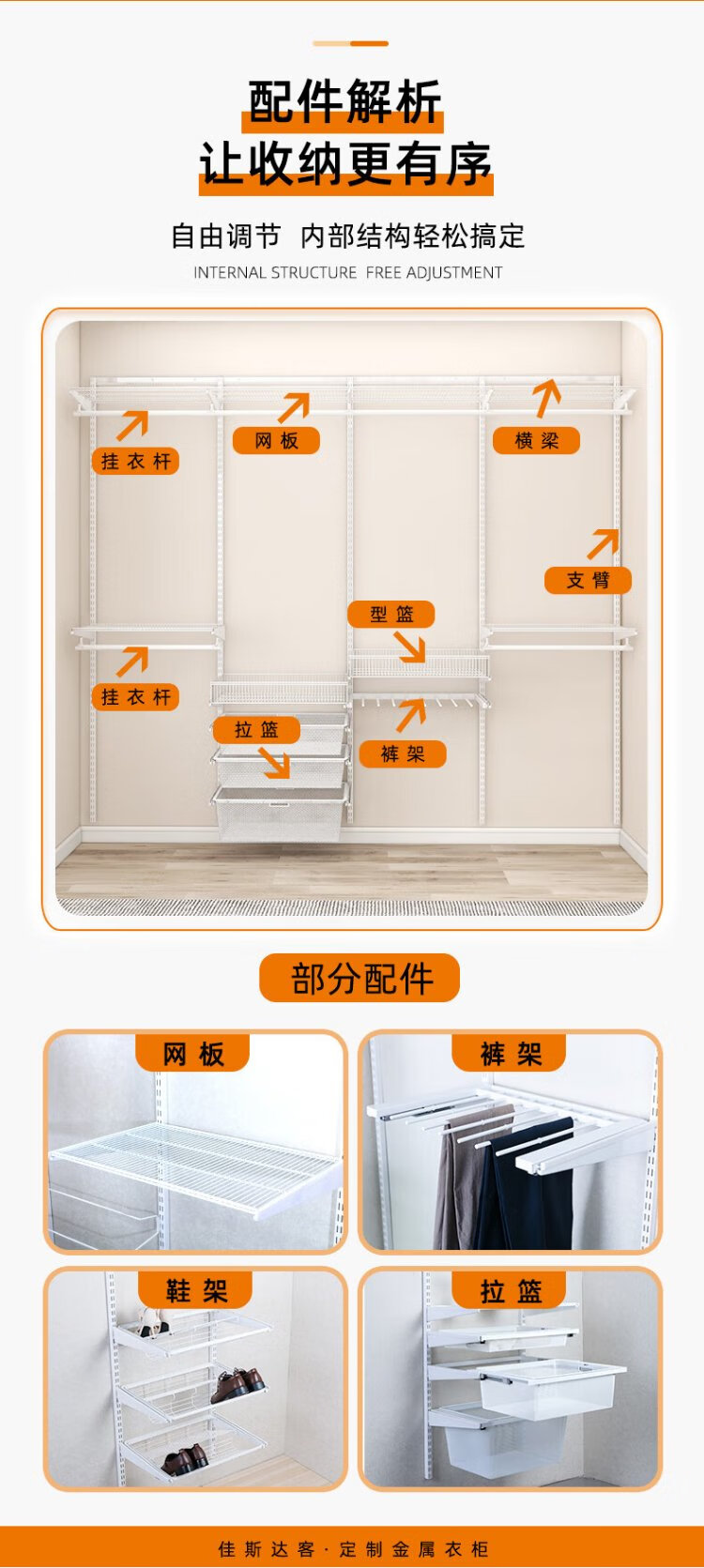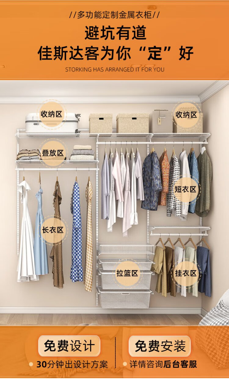 Jiasidake open metal wardrobe whole house custom-made cloakroom and bedroom wardrobe customization - the price is subject to the actual plan National subsidy package 2000