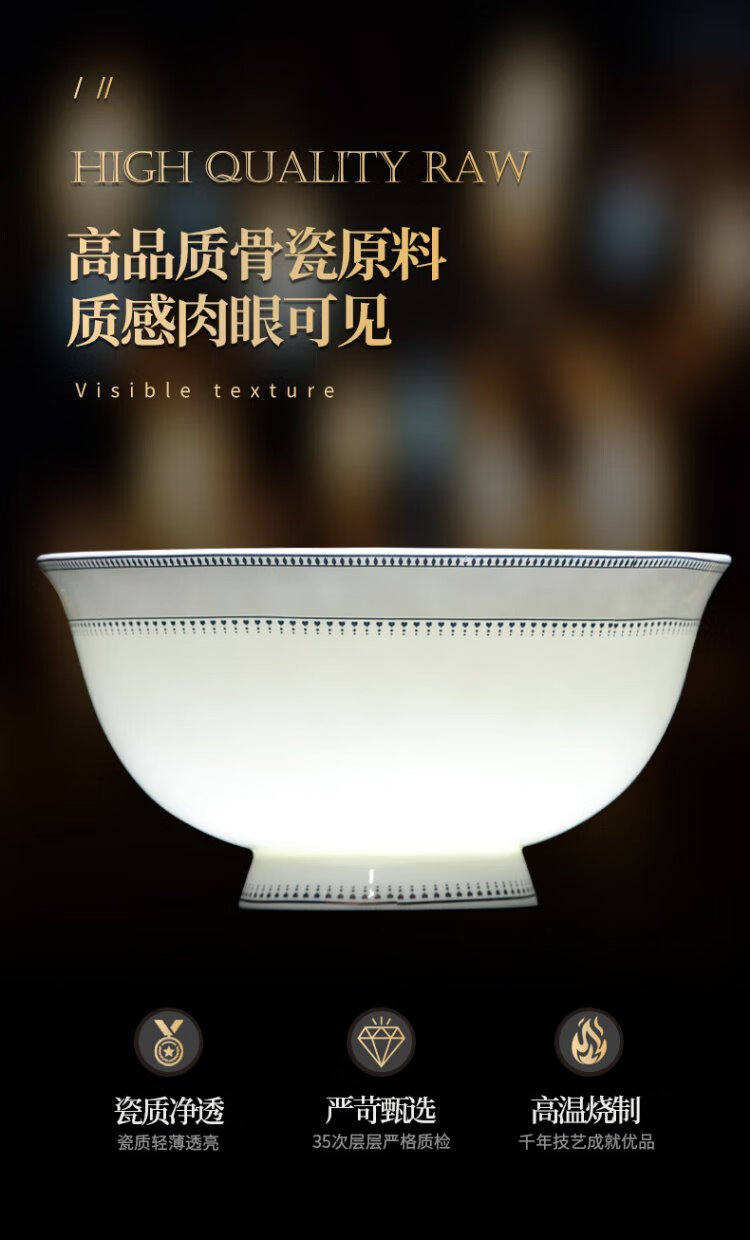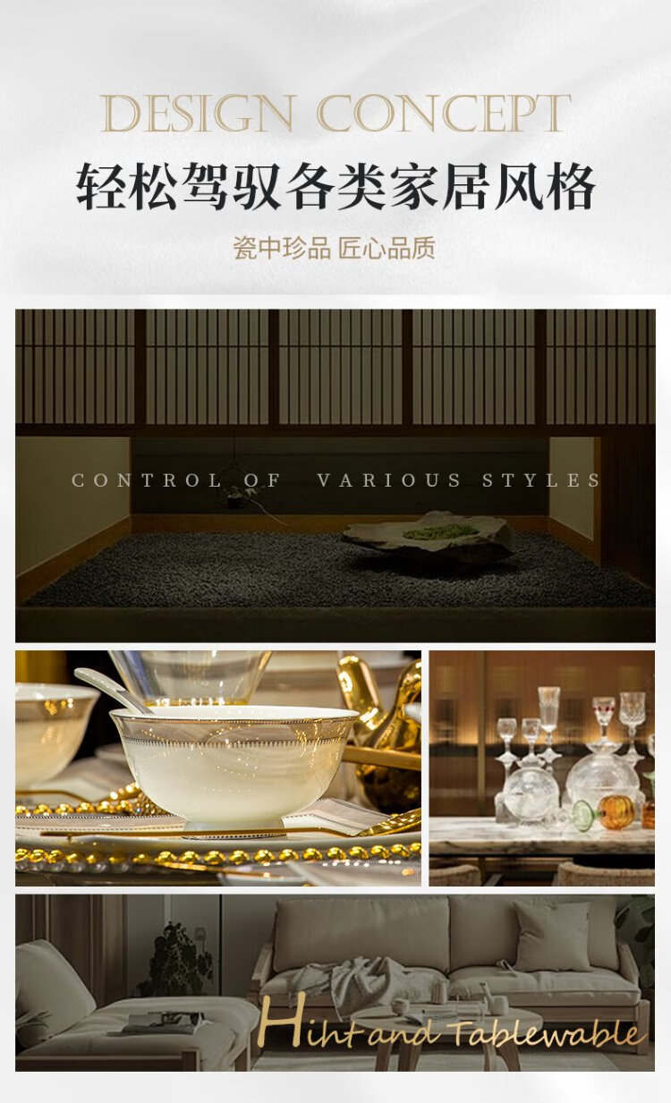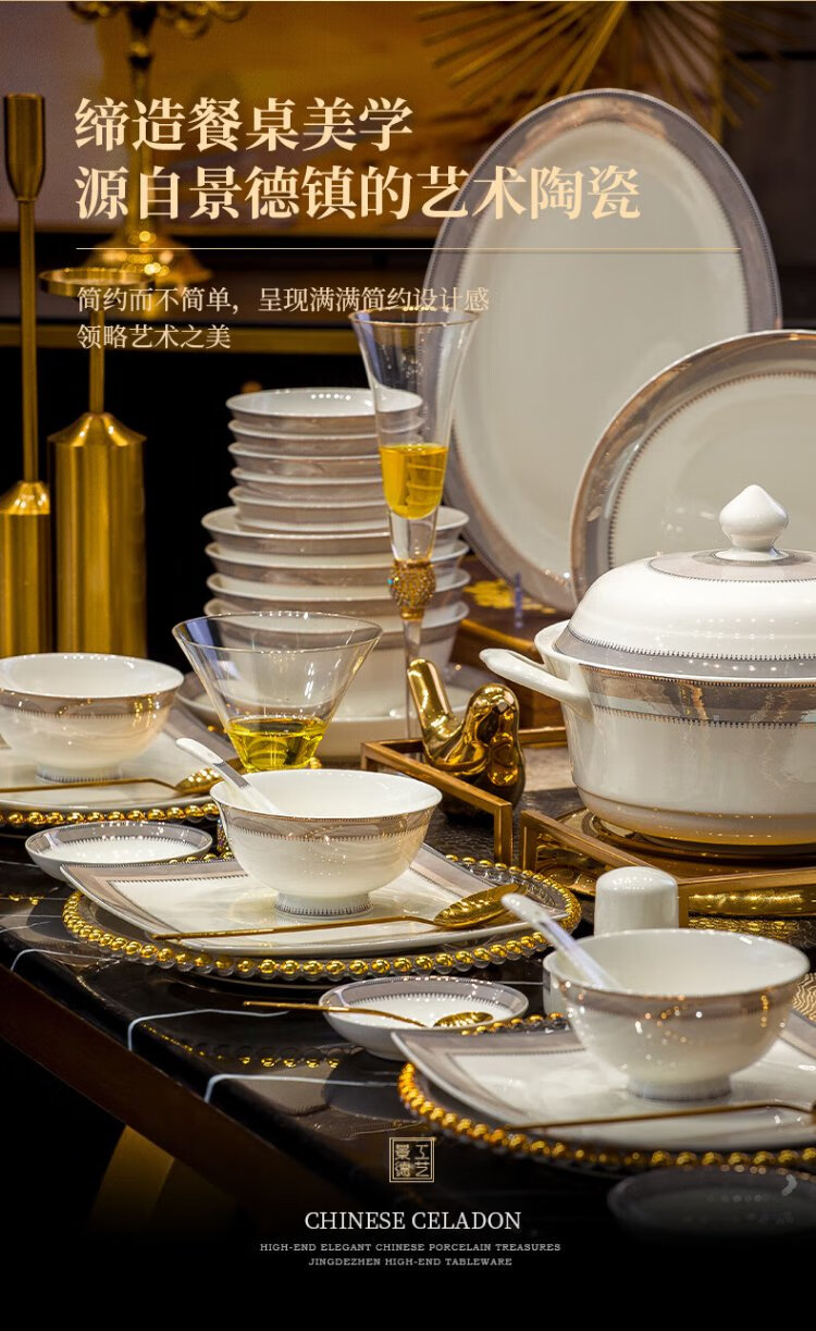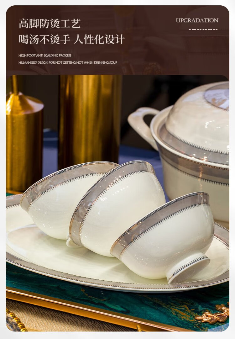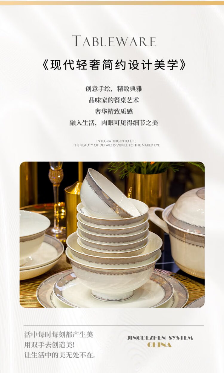 Yang Qintang bowl household 2025 new high-end bone china tableware set bowl and plate combination Jingdezhen ceramic dishes housewarming gift Hilton | high temperature underglaze color | leather box packaging 66 pieces
