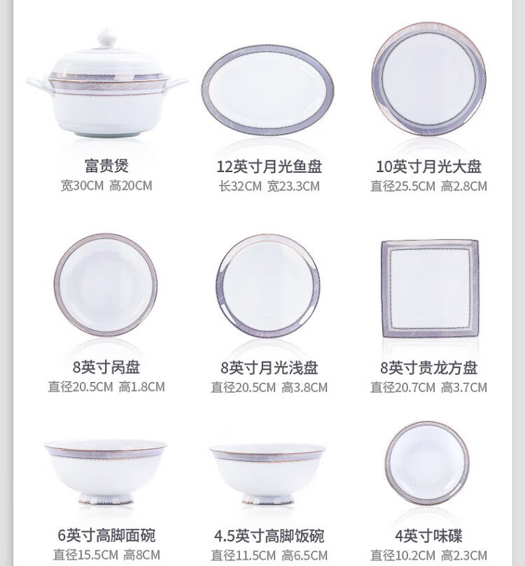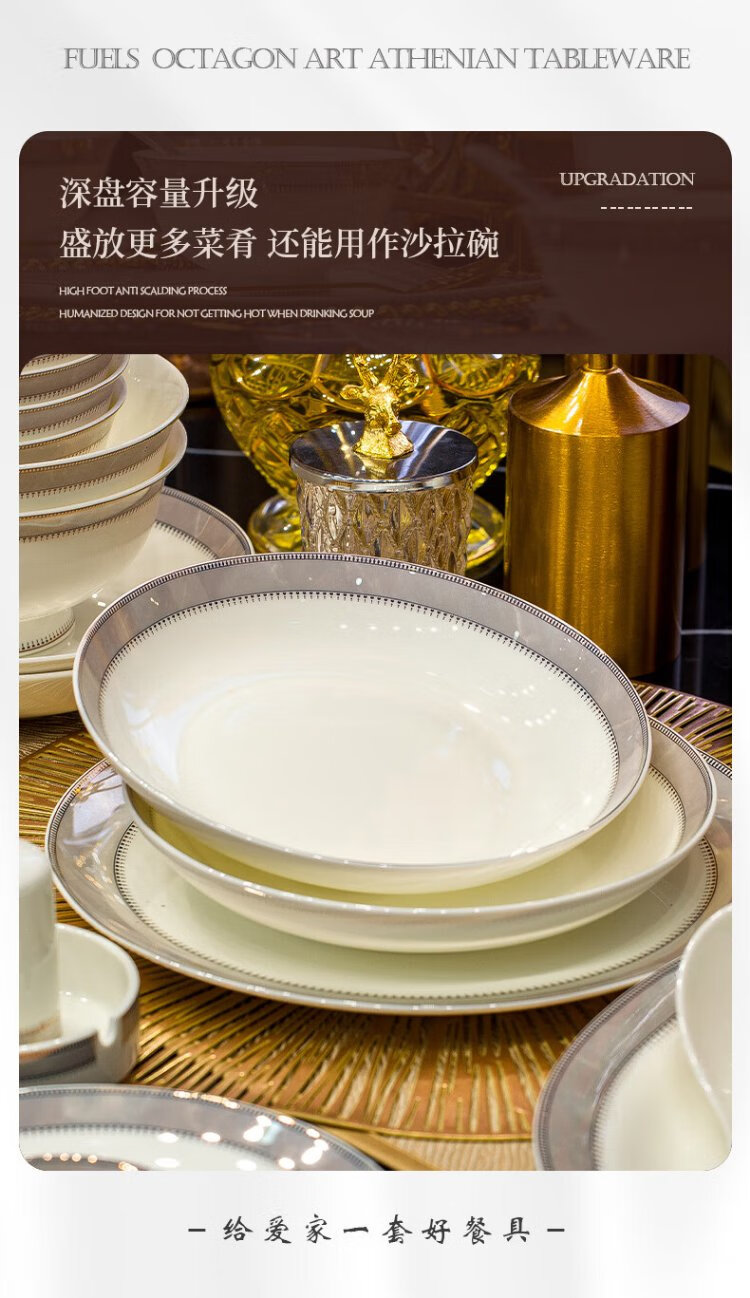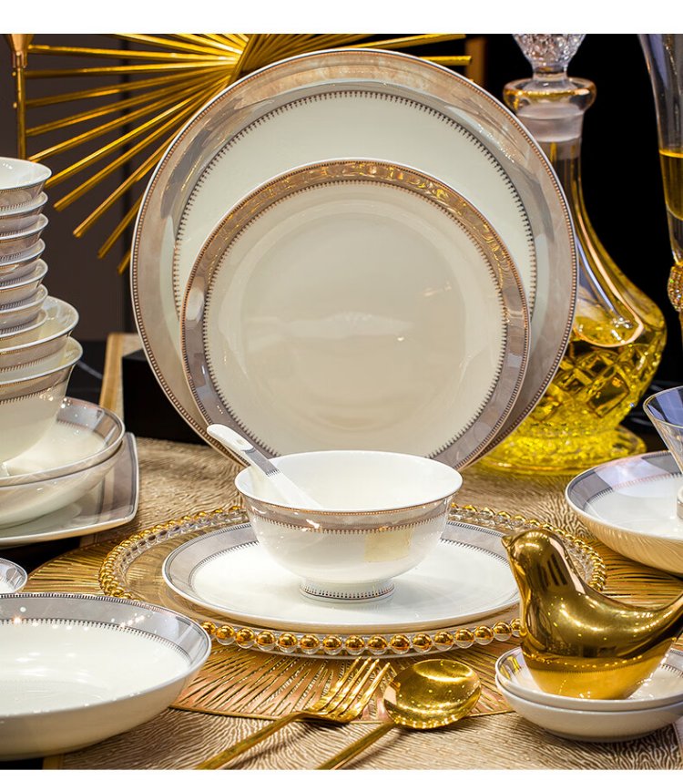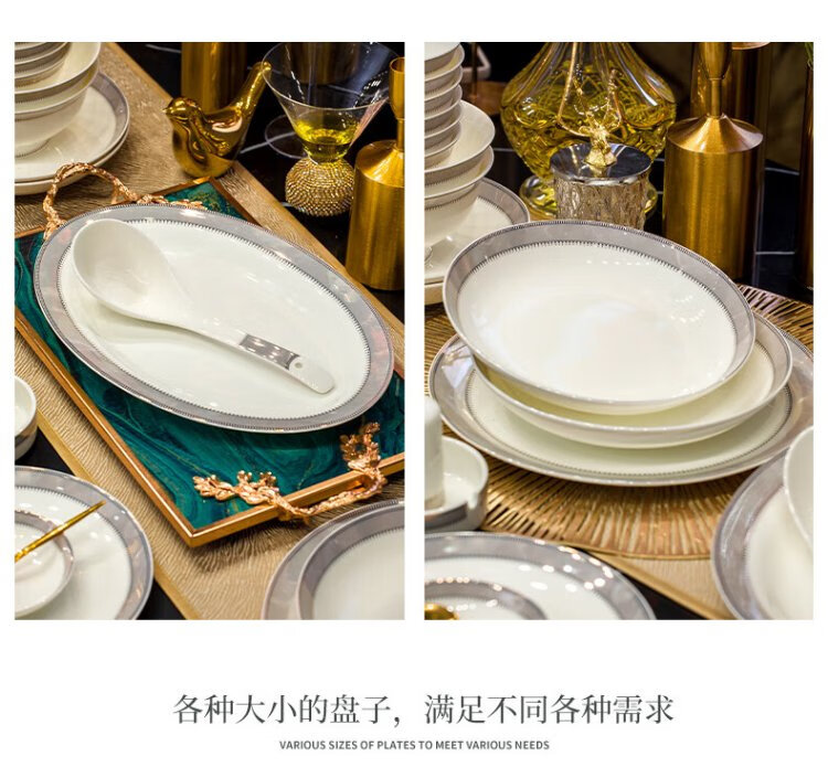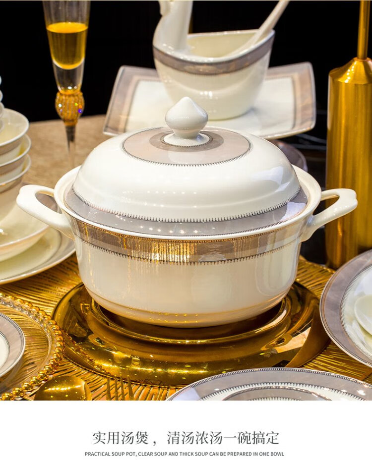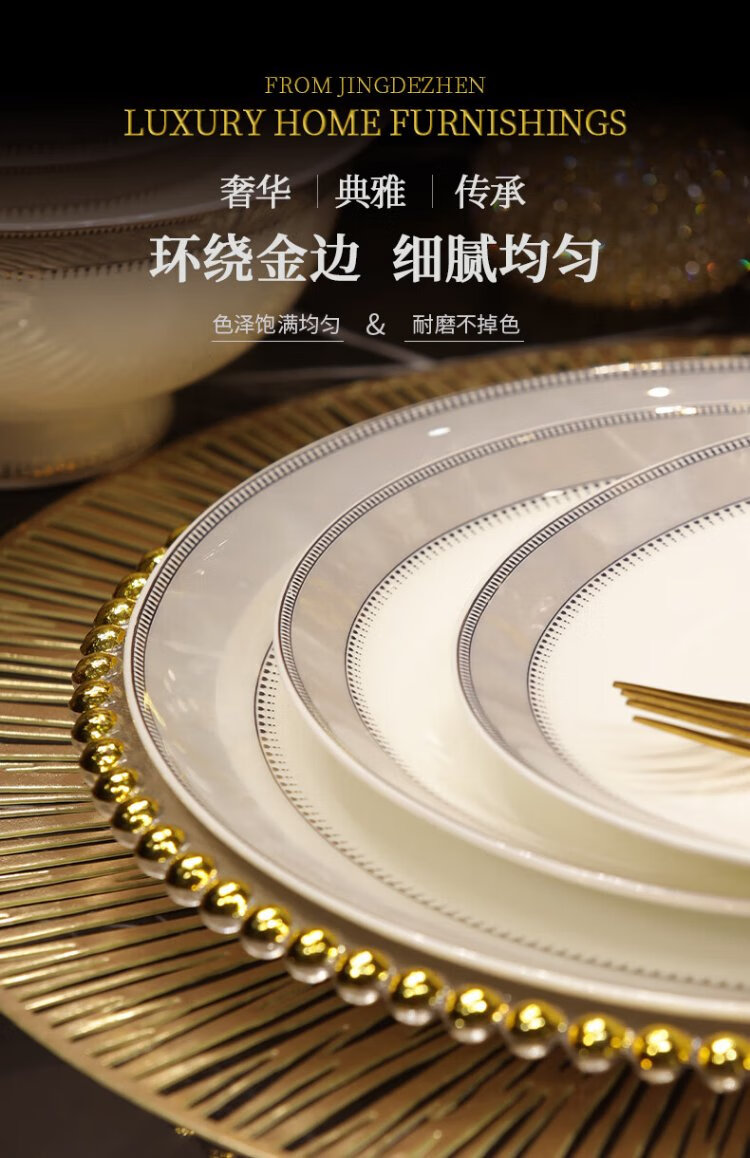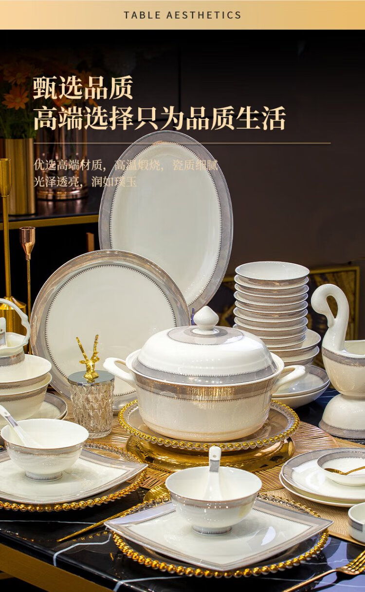 Yang Qintang bowl household 2025 new high-end bone china tableware set bowl and plate combination Jingdezhen ceramic dishes housewarming gift Hilton | high temperature underglaze color | leather box packaging 66 pieces