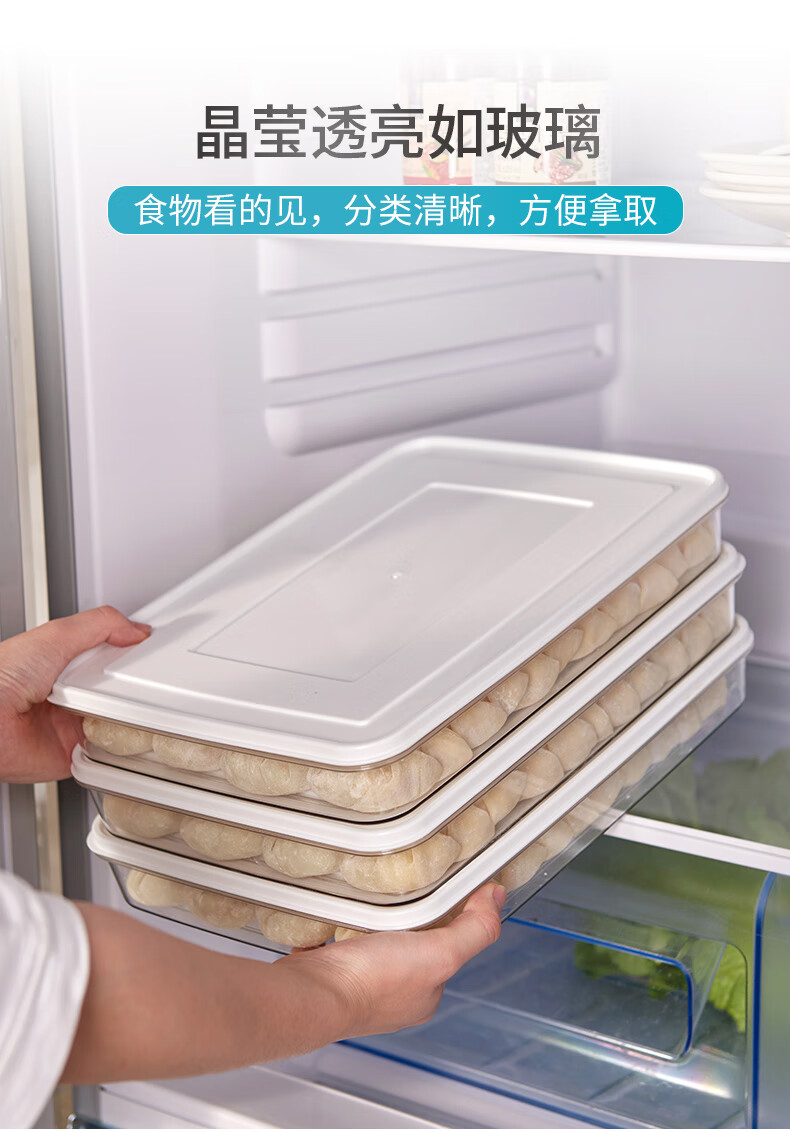 Nuoqianshang frozen dumpling box household food-grade refrigerator quick-frozen storage box dumplings and wonton crisper box with one layer and one cover thickened pp style - transparent cover - 210g 1 layer 1 layer 1 cover