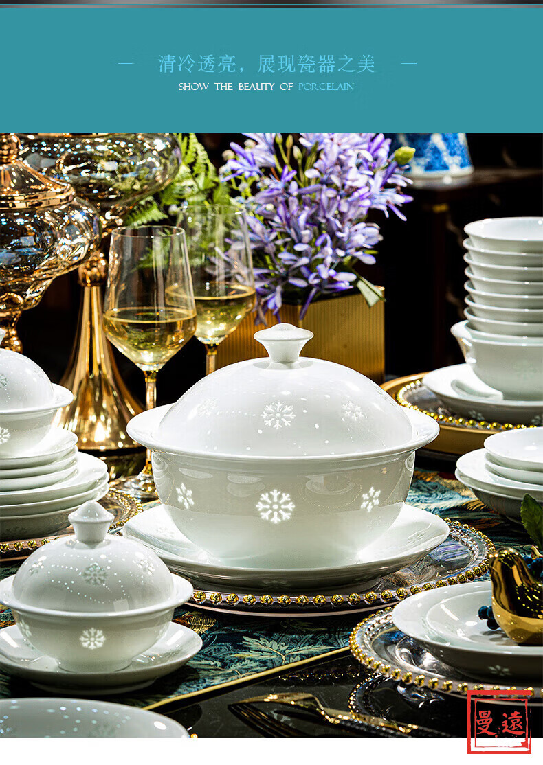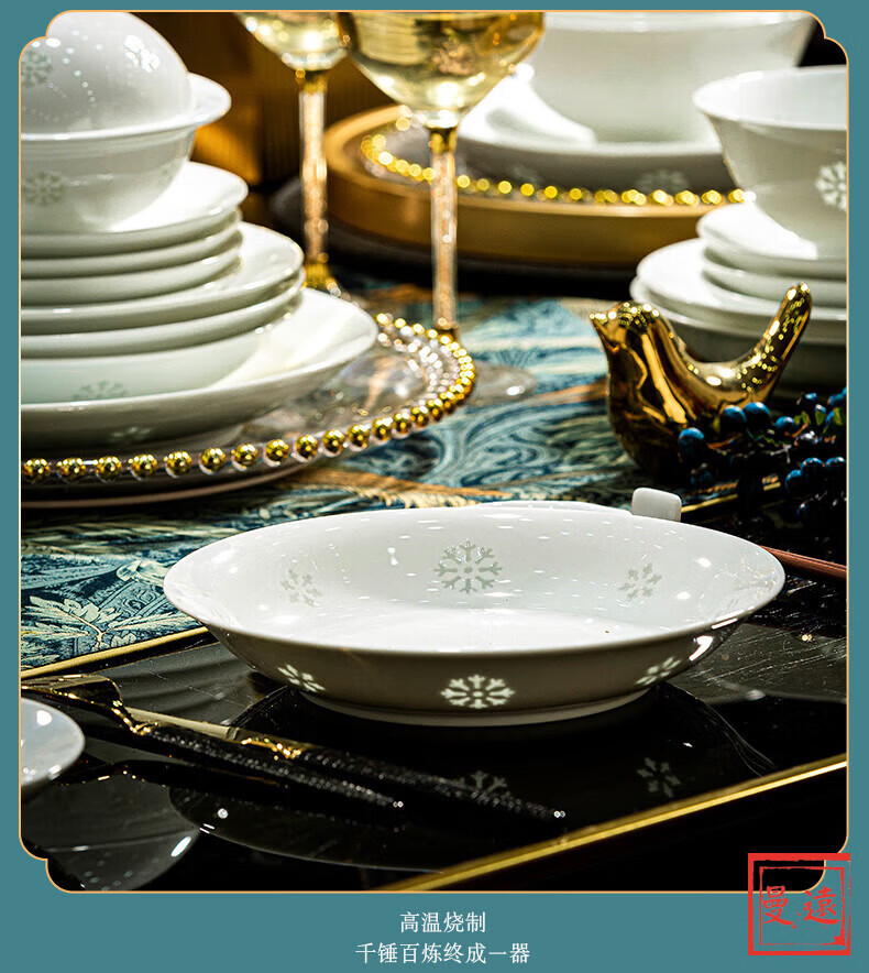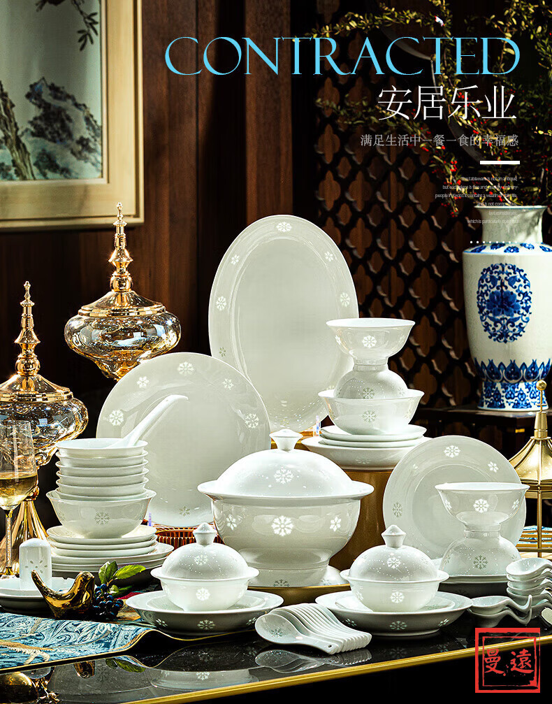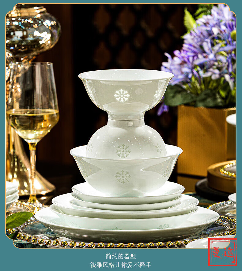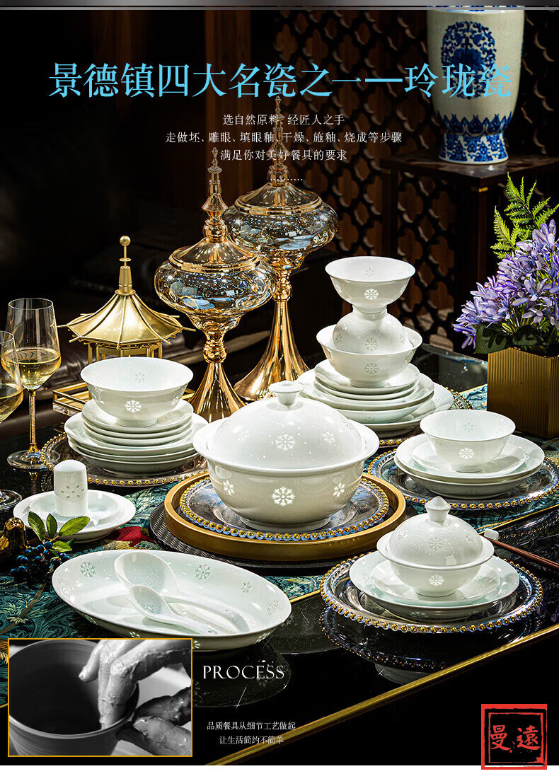Manyuan underglaze color authentic Jingdezhen high-end porcelain exquisite porcelain tableware dishes set underglaze color housewarming gift box to live and work in peace and contentment Linglong porcelain configuration for 10 people 68-piece set
