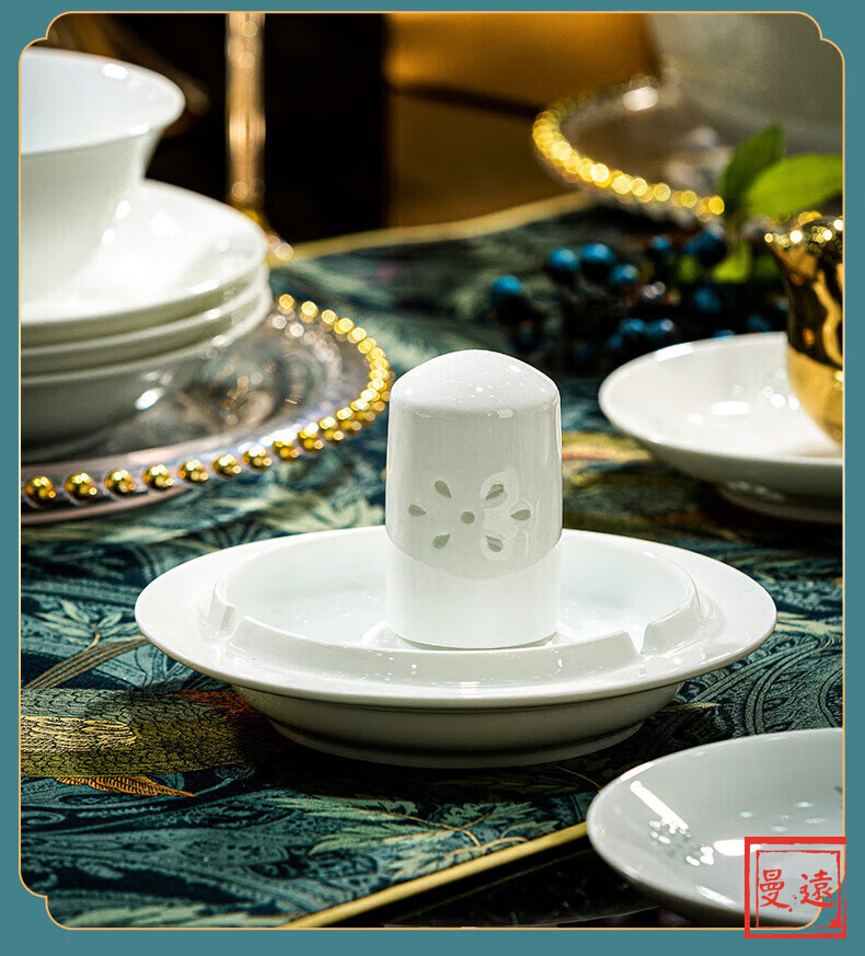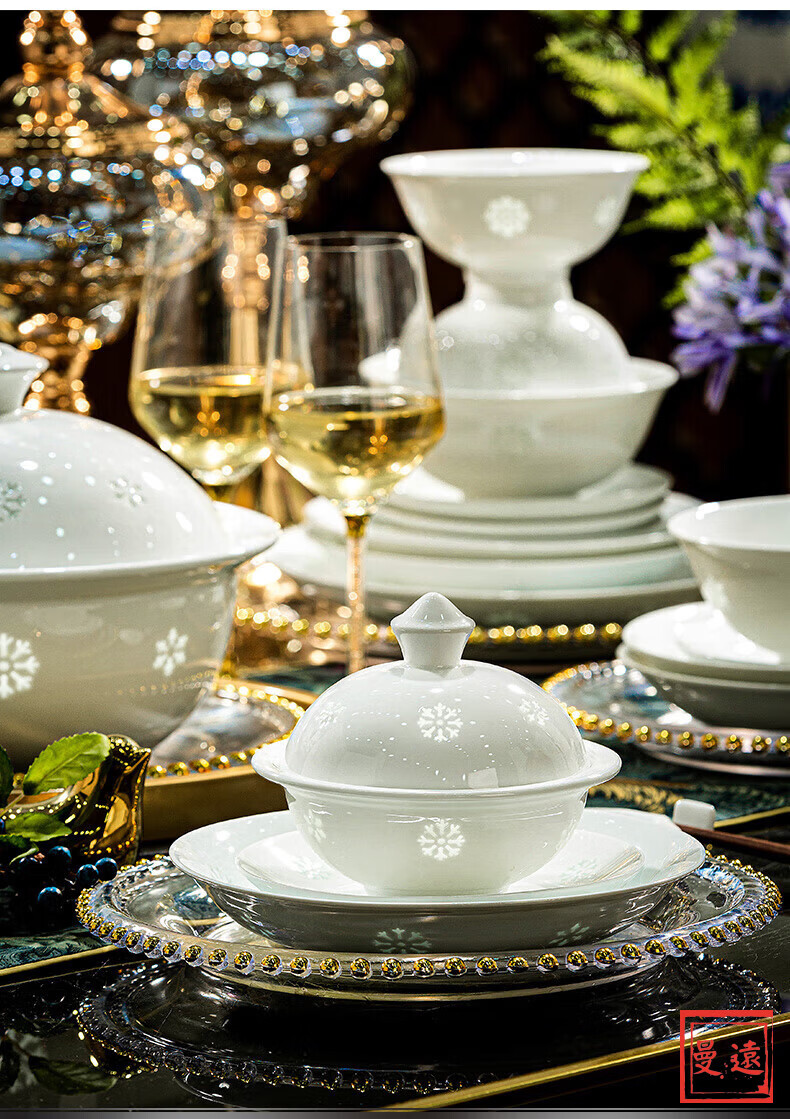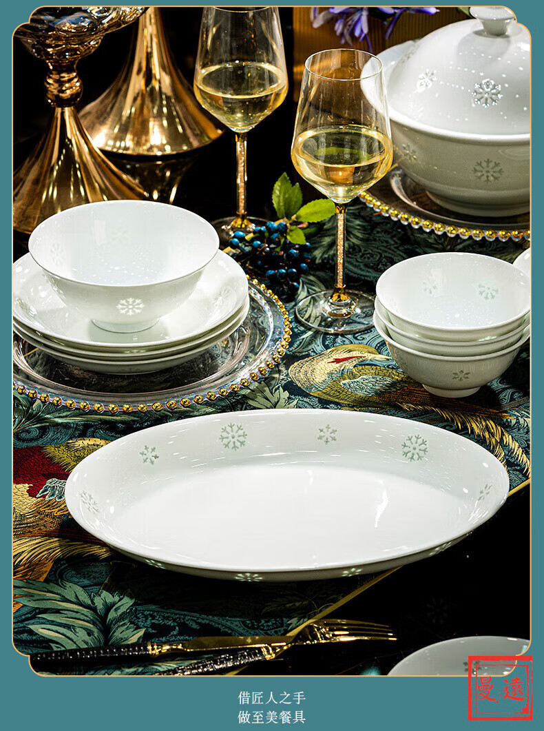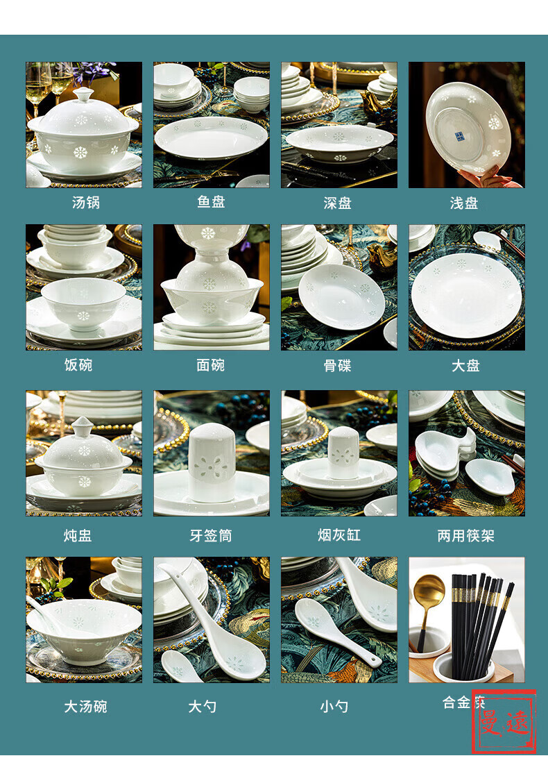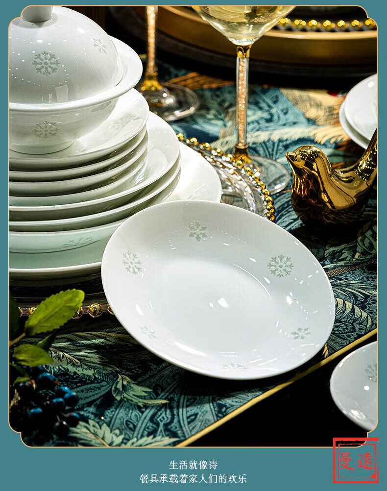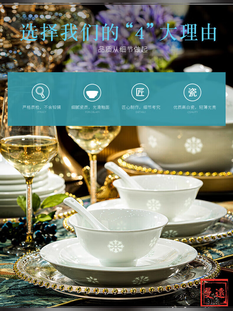 Manyuan underglaze color authentic Jingdezhen high-end porcelain exquisite porcelain tableware dishes set underglaze color housewarming gift box to live and work in peace and contentment Linglong porcelain configuration for 10 people 68-piece set