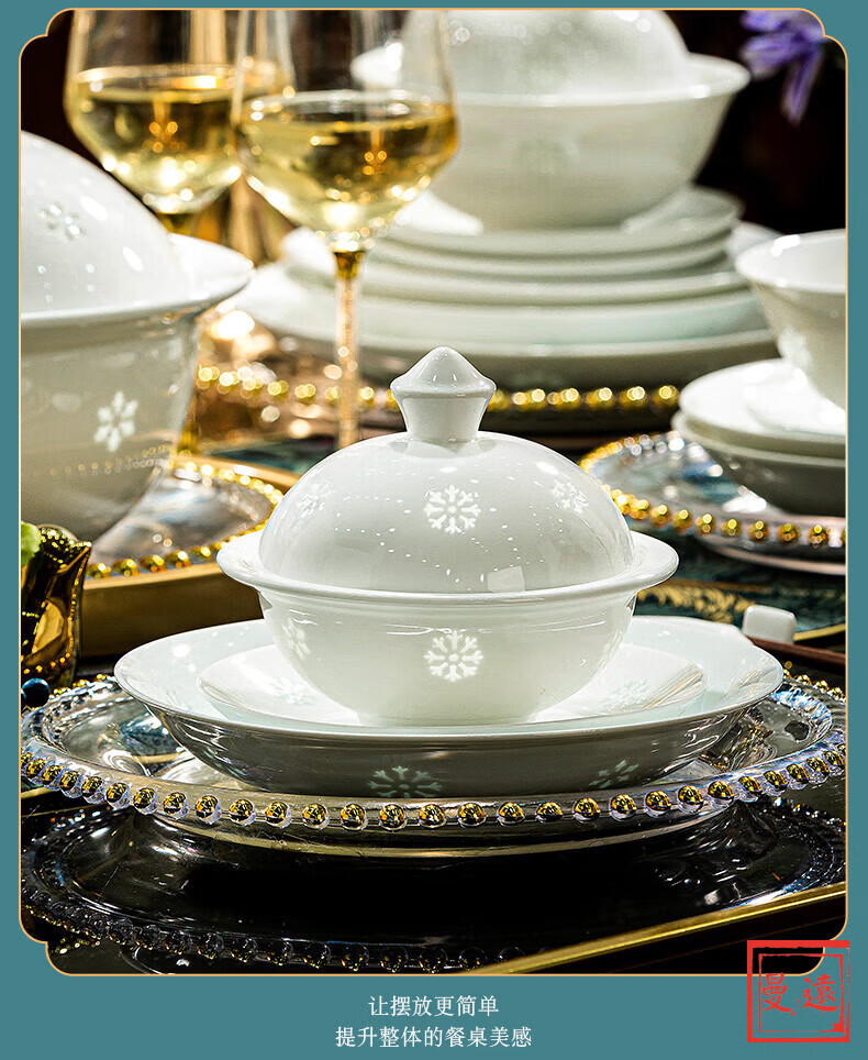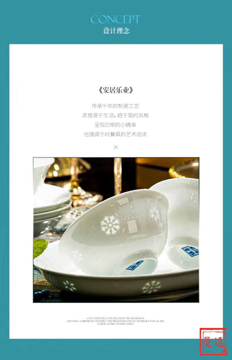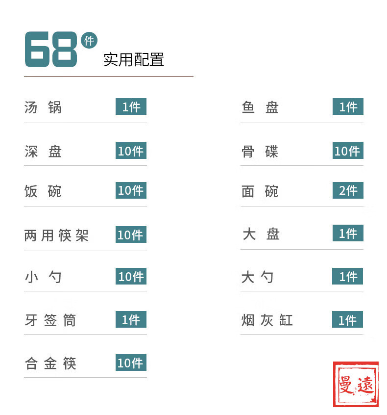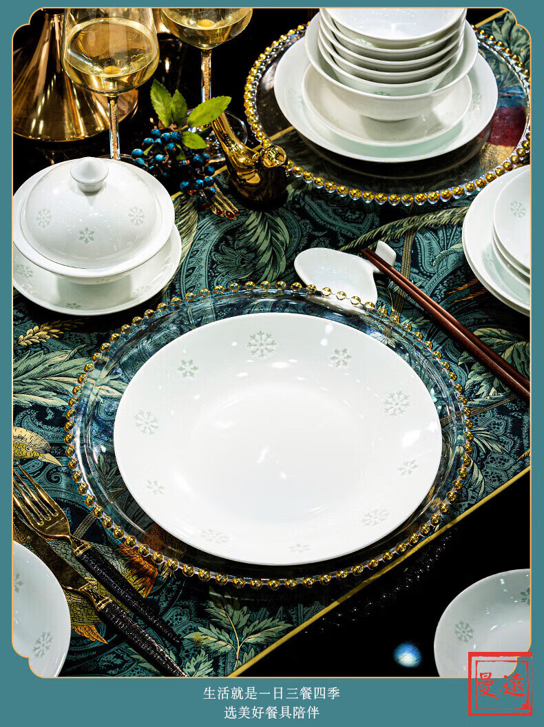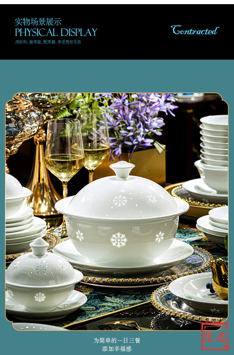 Manyuan underglaze color authentic Jingdezhen high-end porcelain exquisite porcelain tableware dishes set underglaze color housewarming gift box to live and work in peace and contentment Linglong porcelain configuration for 10 people 68-piece set