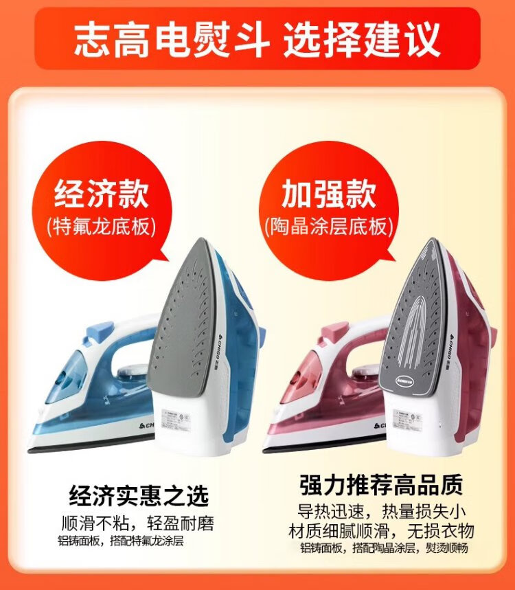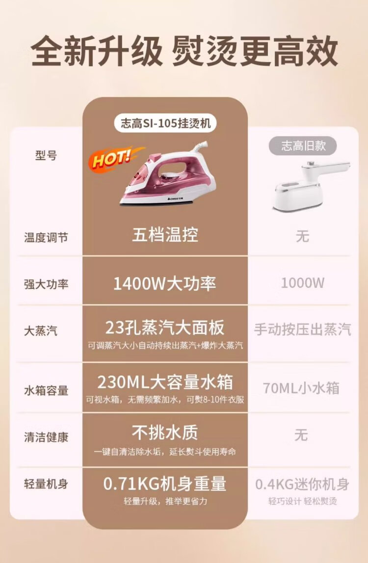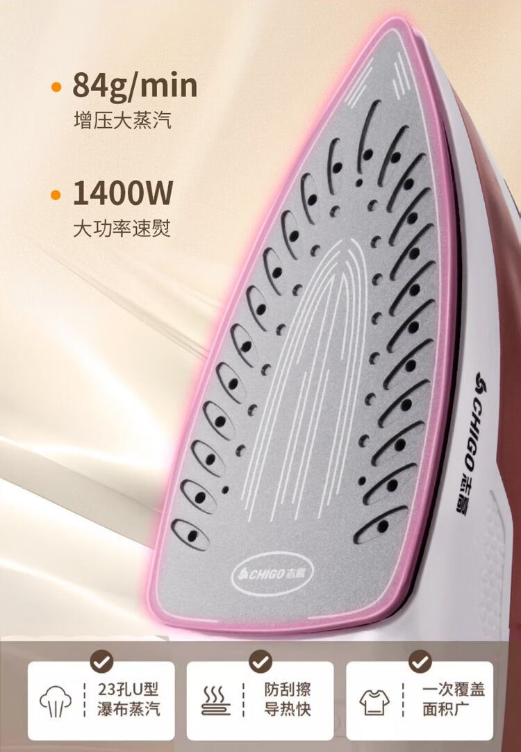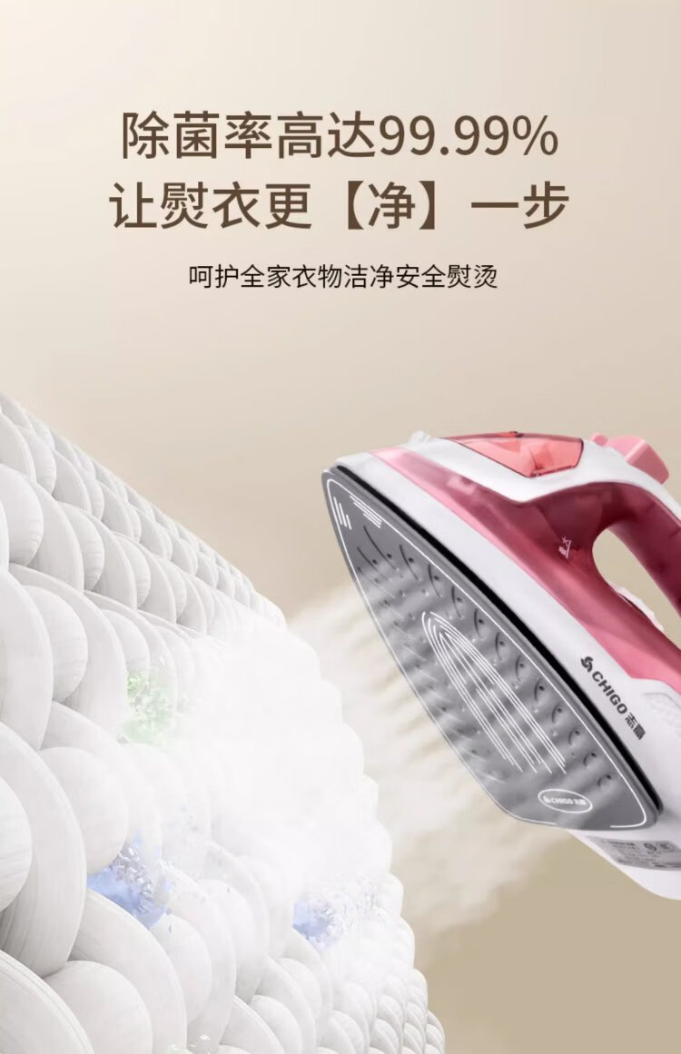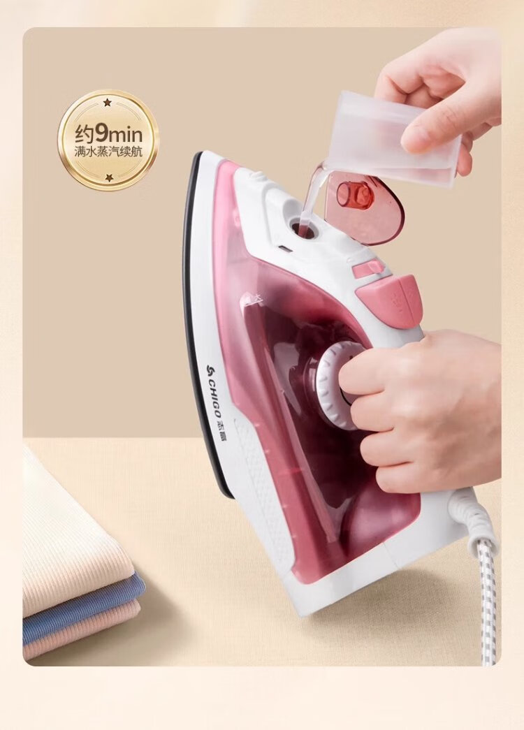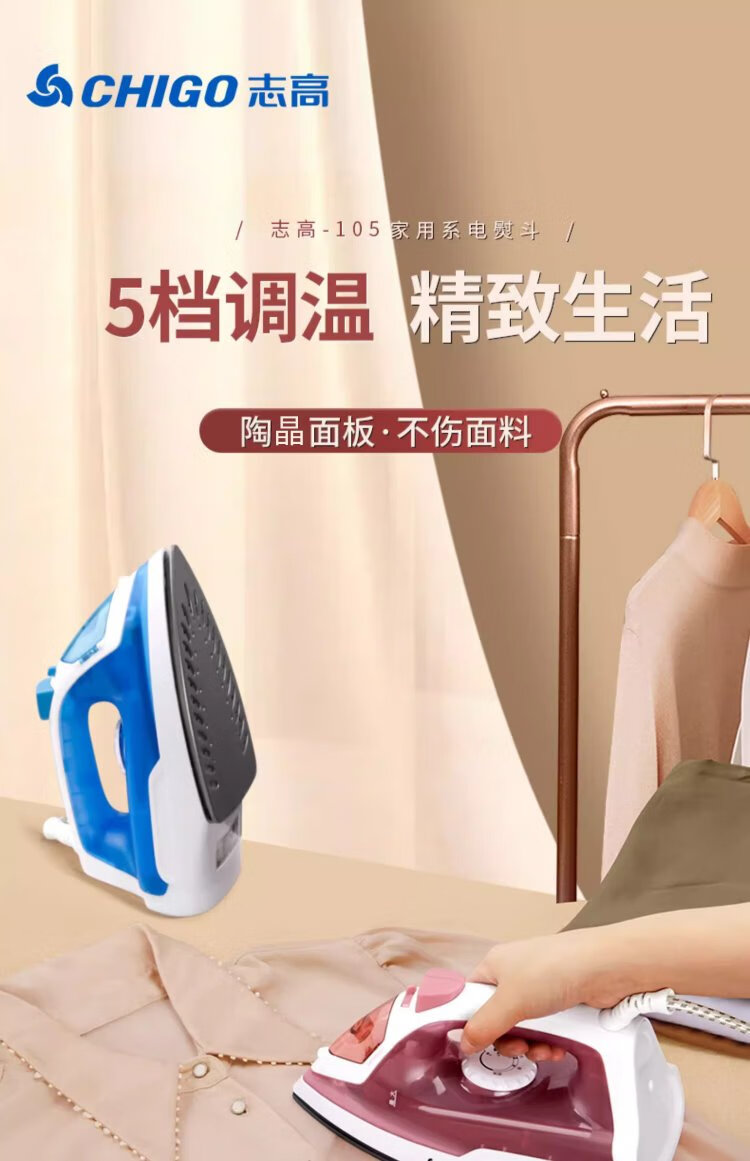 Chigo steam electric iron handheld household small ironing machine hanging ironing machine clothes calligraphy iron spelling bean old-fashioned electric iron high-power ironing five-speed temperature adjustment gift 105 deep space blue Teflon panel