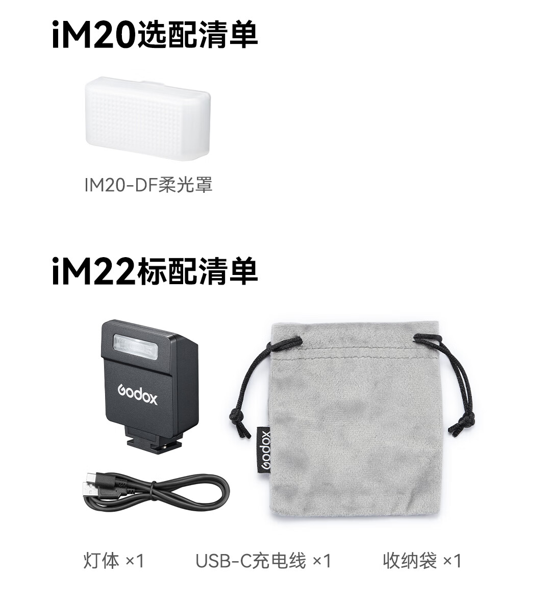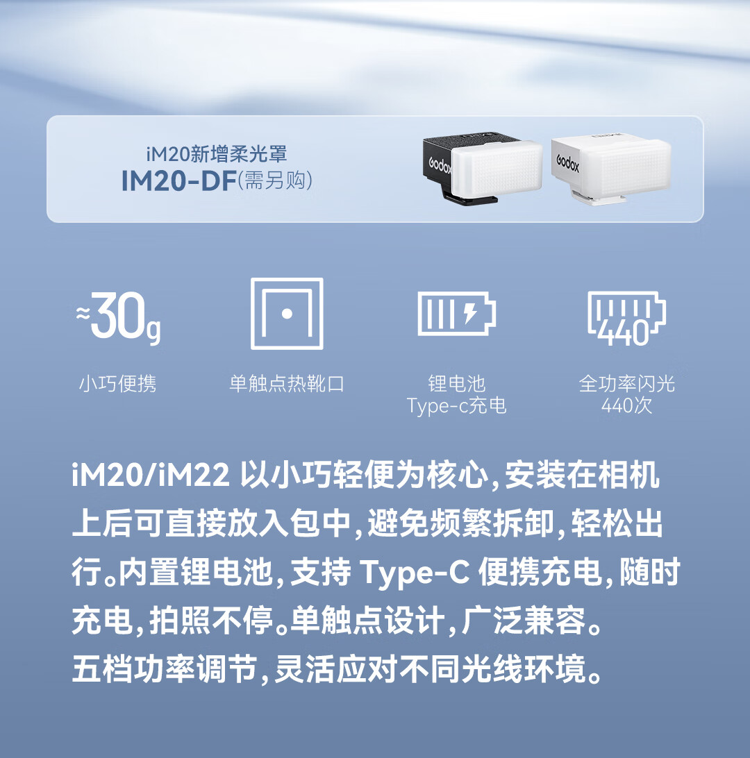 Godox Godox mini flash IM20/IM22 small top light SLR mirrorless camera dedicated external hot shoe light universal professional portable flash iM20 flash standard black model + soft box + hot shoe booster seat universal