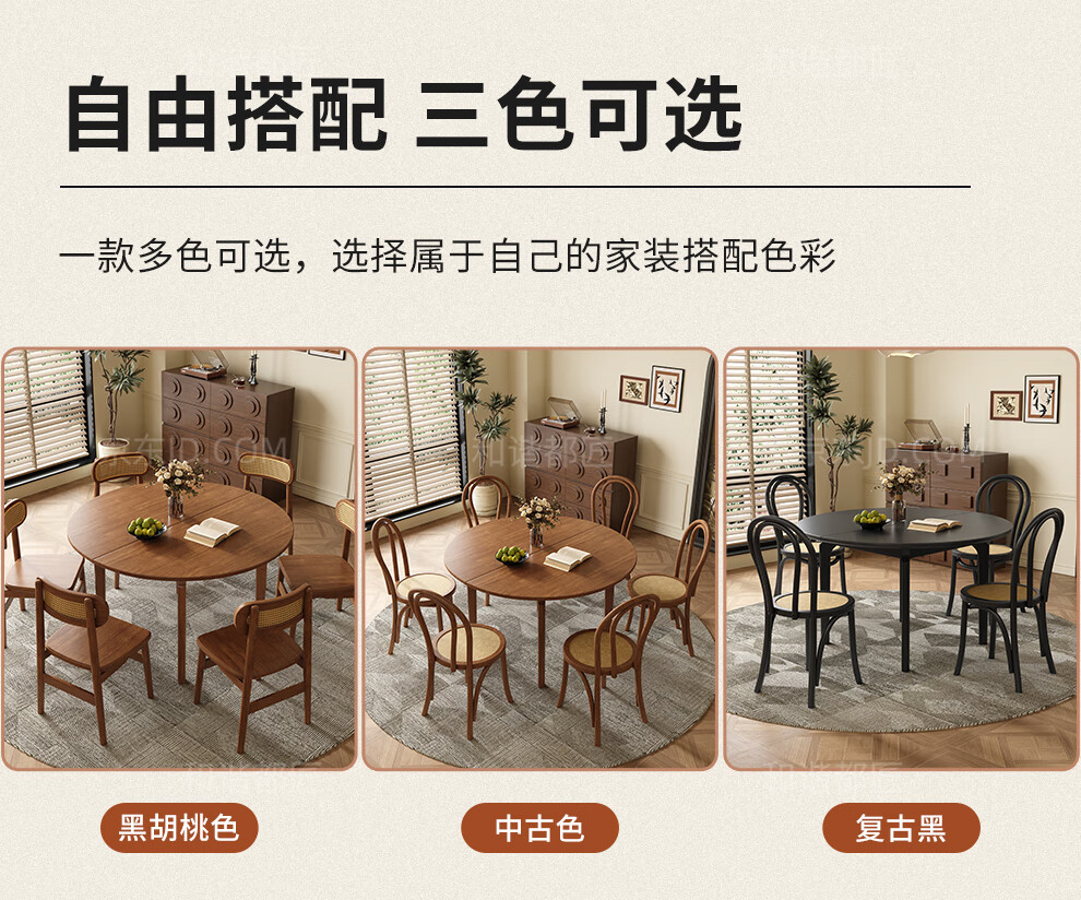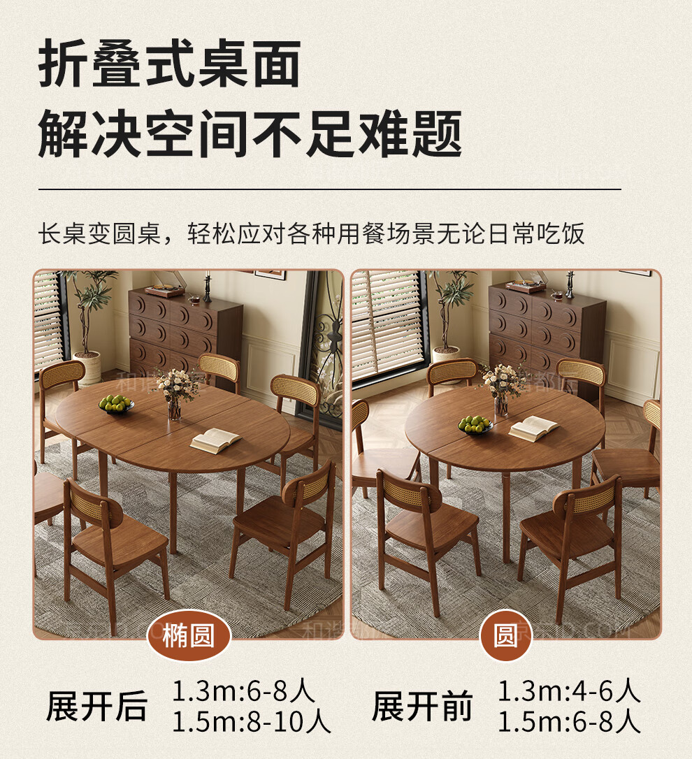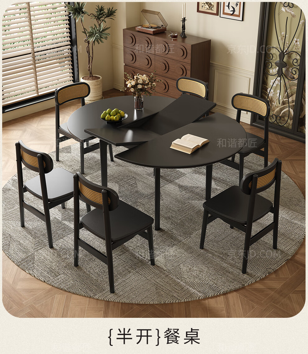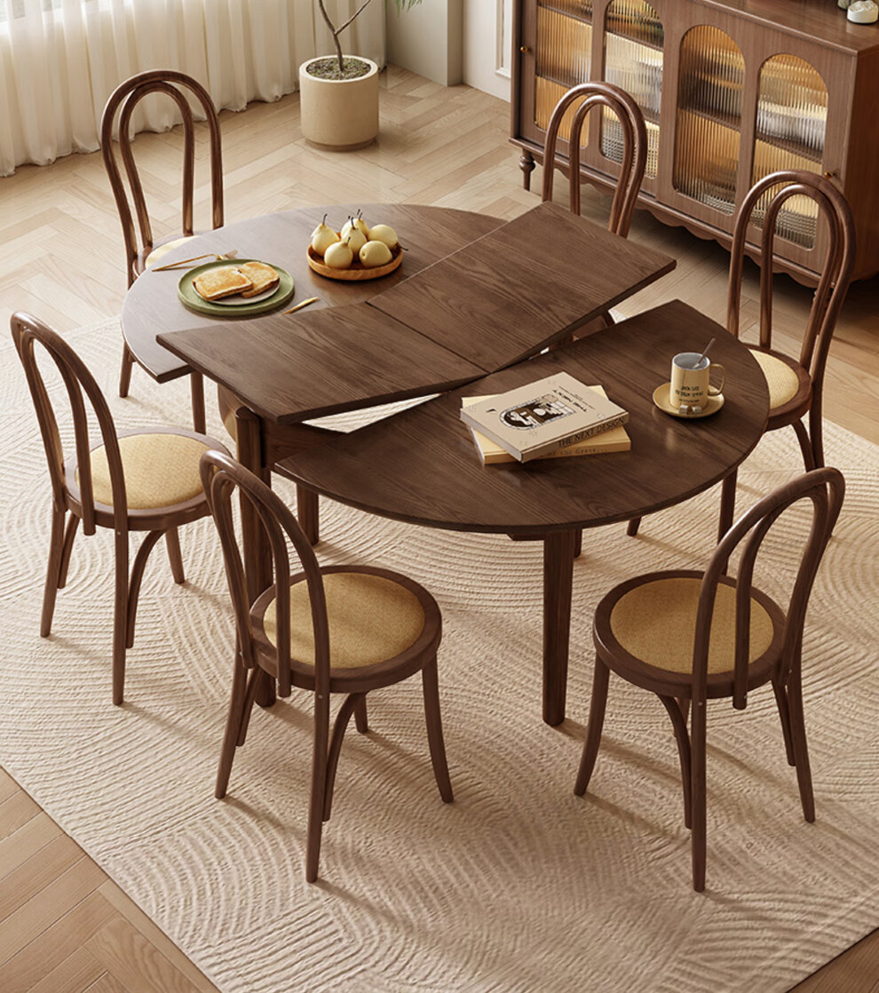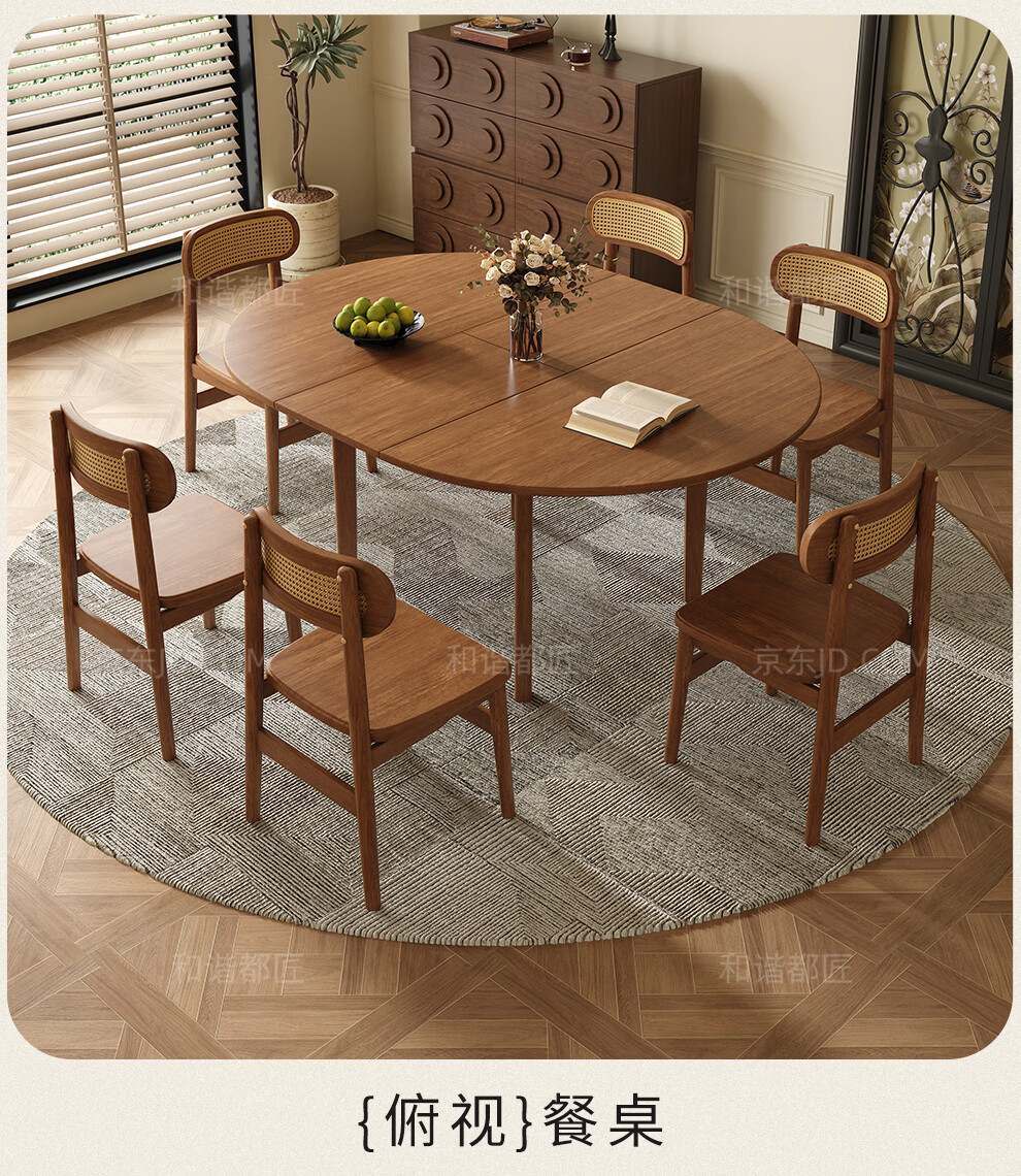 Harmony Dujiang mid-century solid wood dining table retractable folding oval dining table small apartment home dining table and chair combination walnut color single dining table 1 meter retractable to 1.3 meters