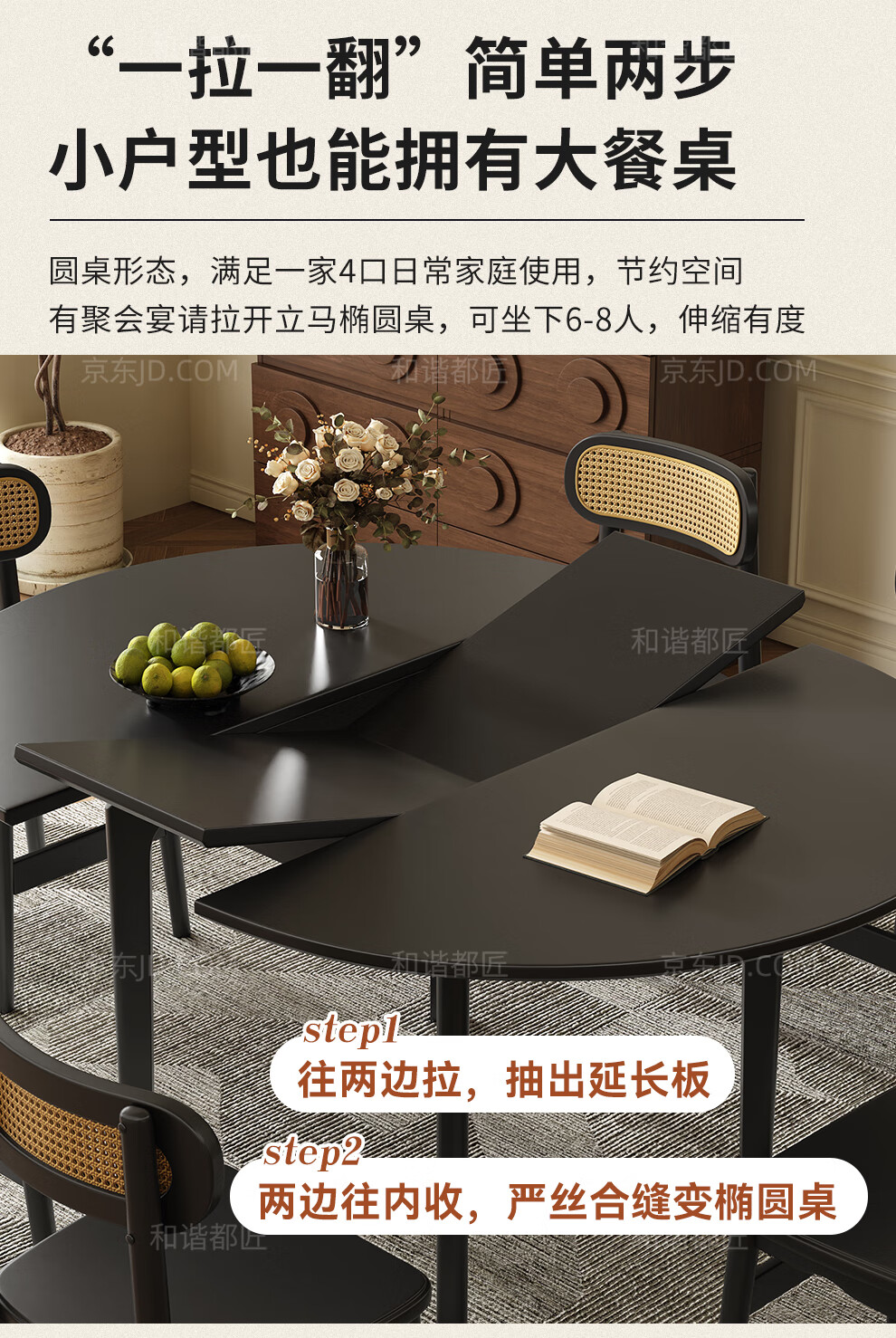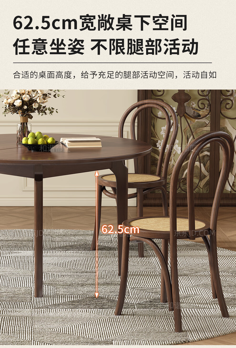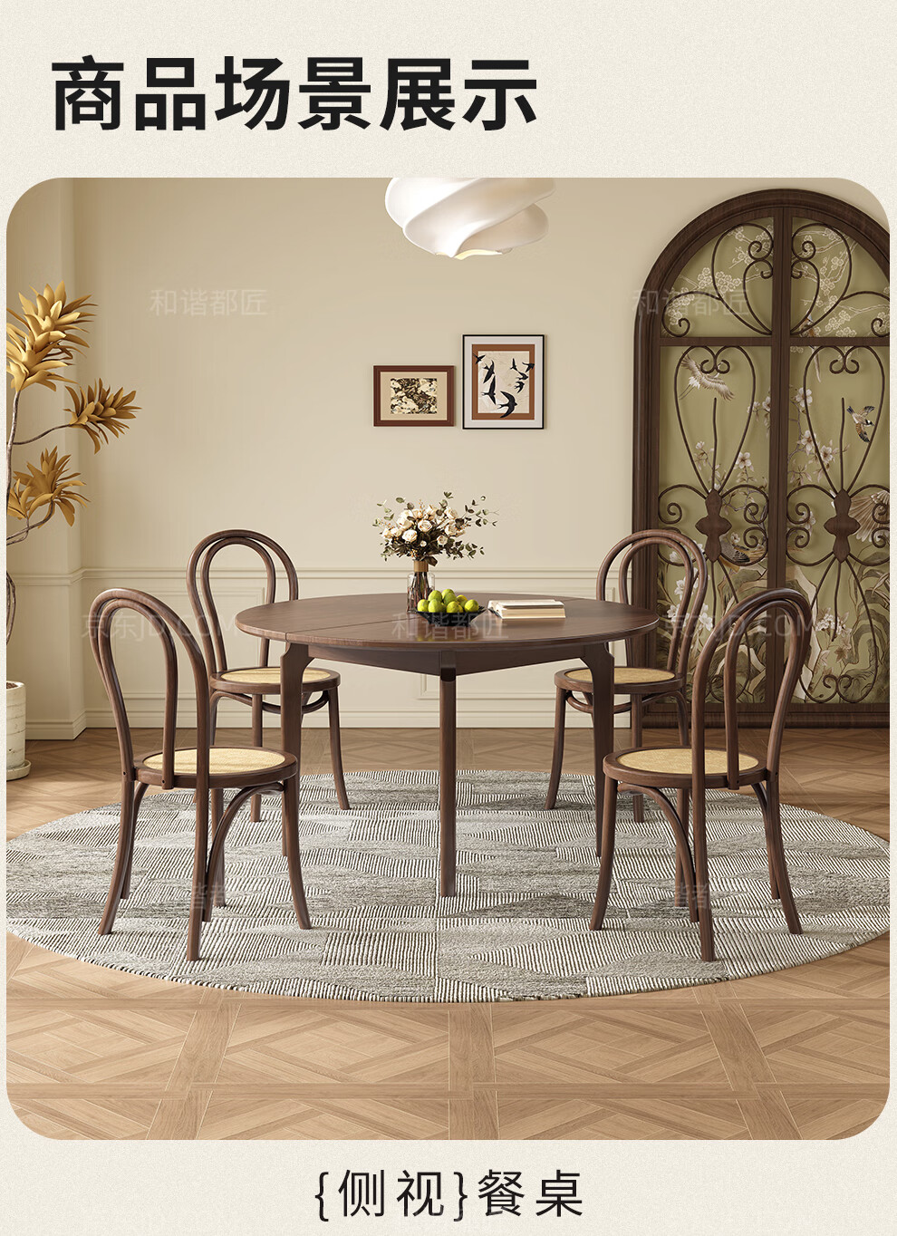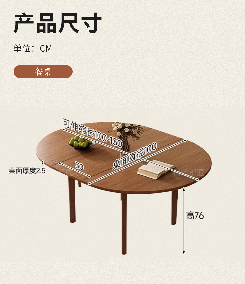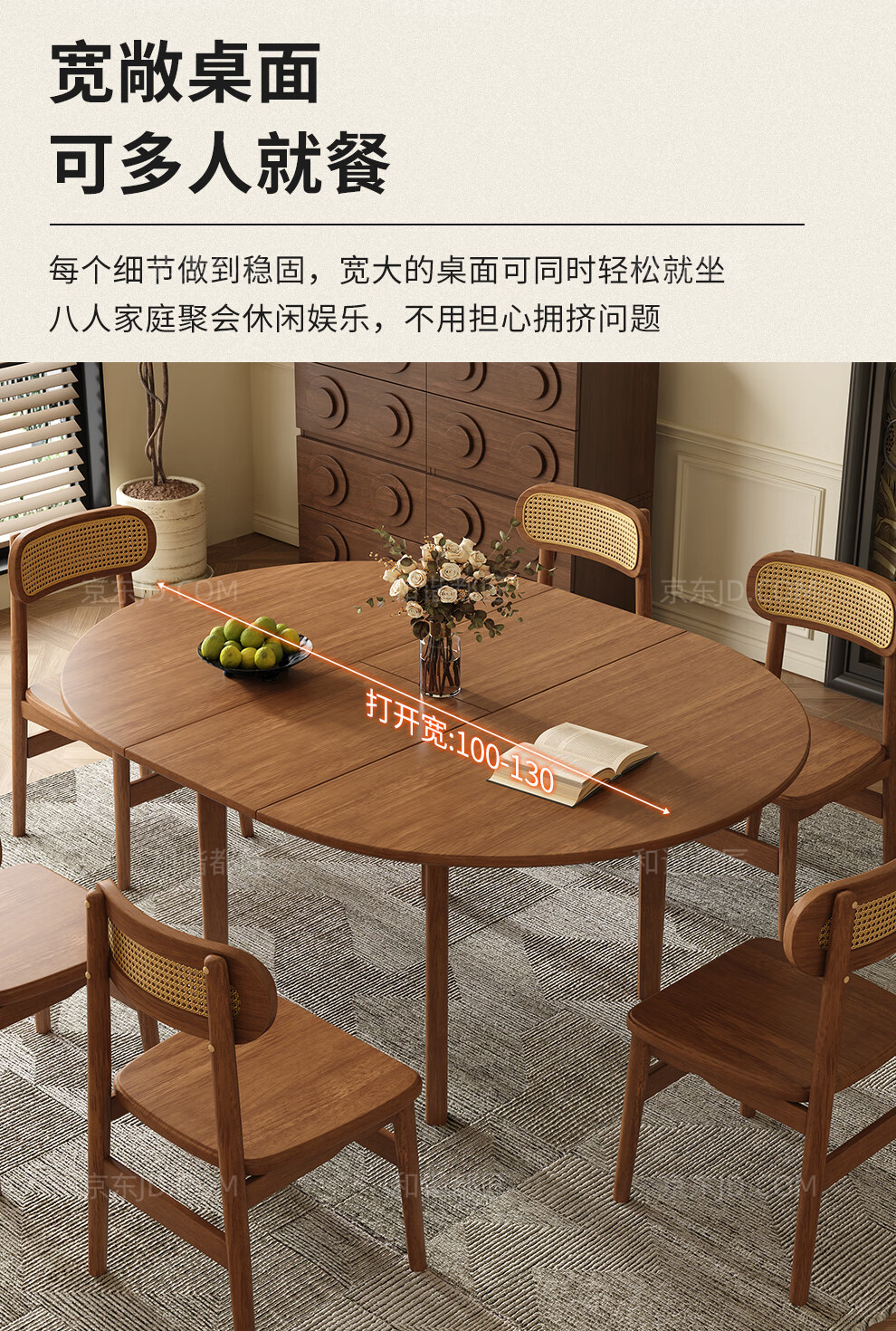 Harmony Dujiang mid-century solid wood dining table retractable folding oval dining table small apartment home dining table and chair combination walnut color single dining table 1 meter retractable to 1.3 meters