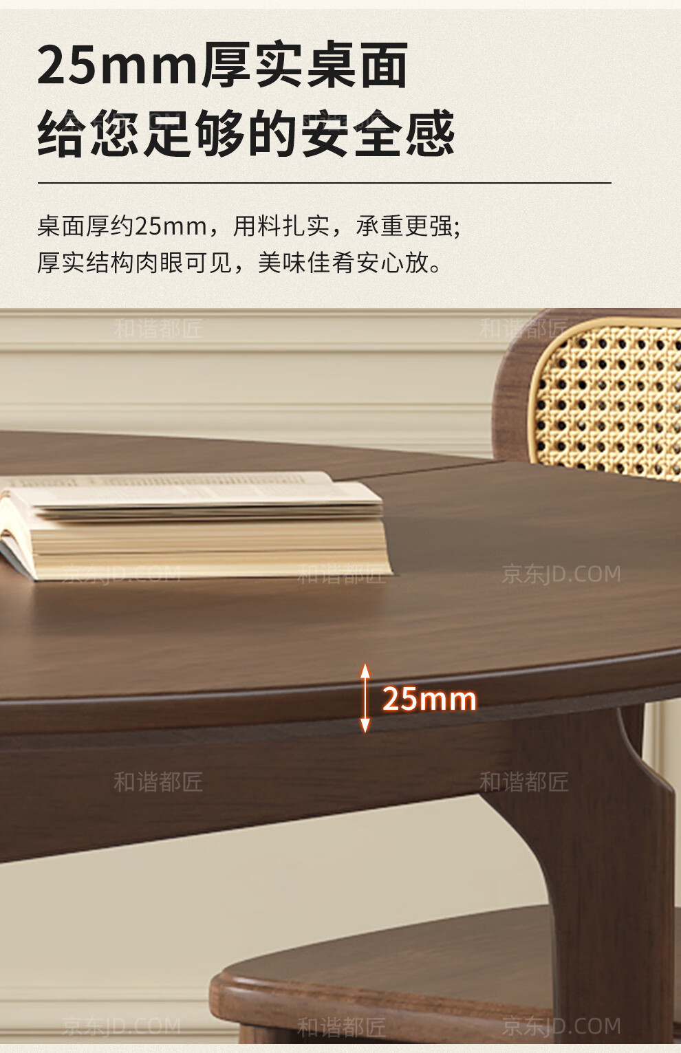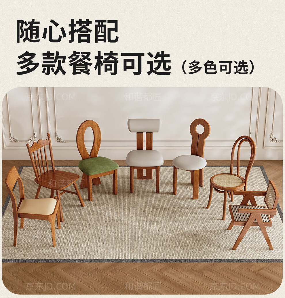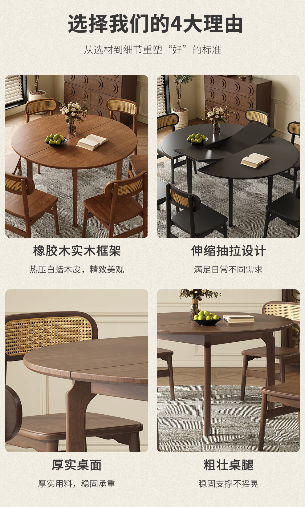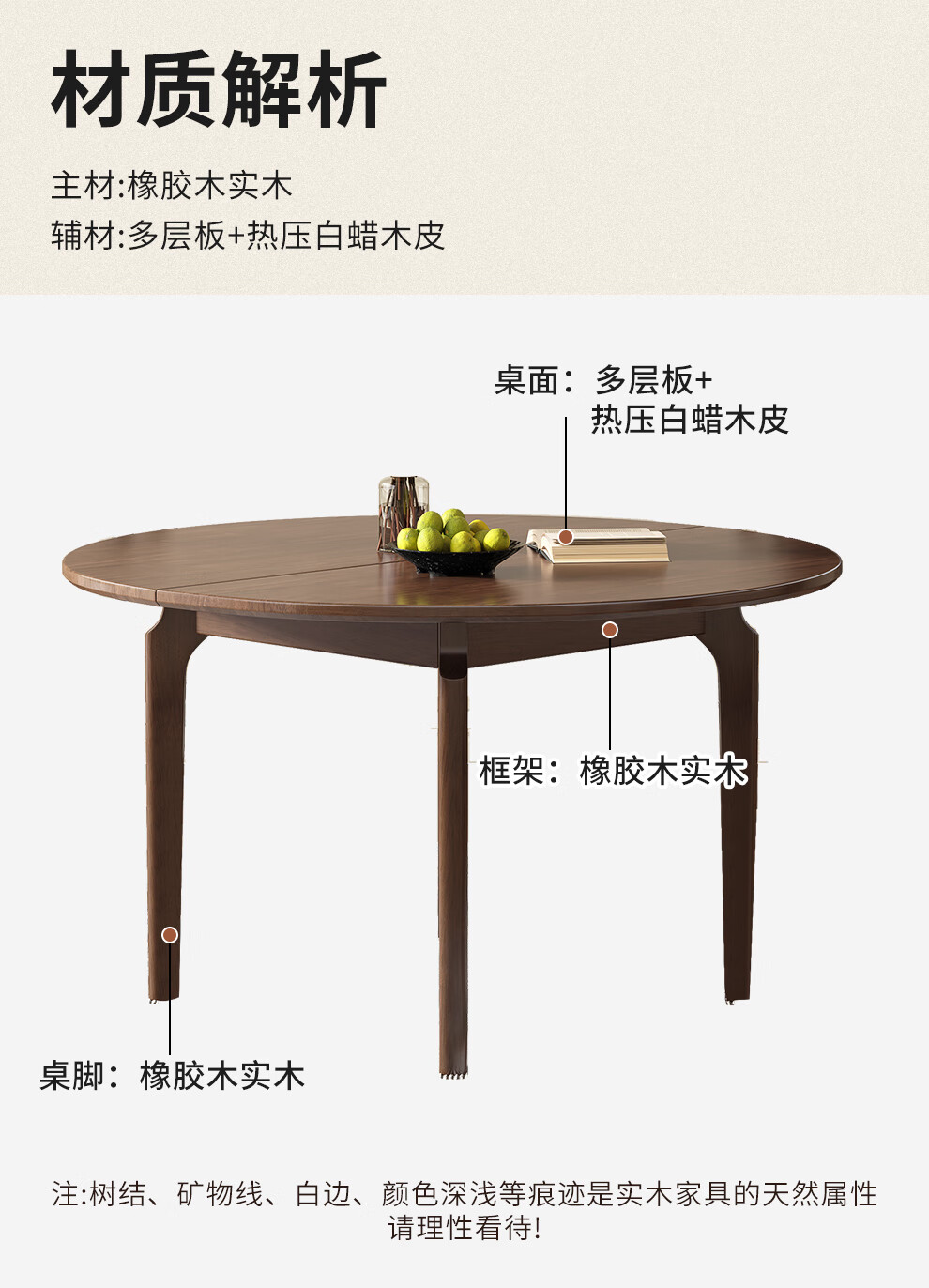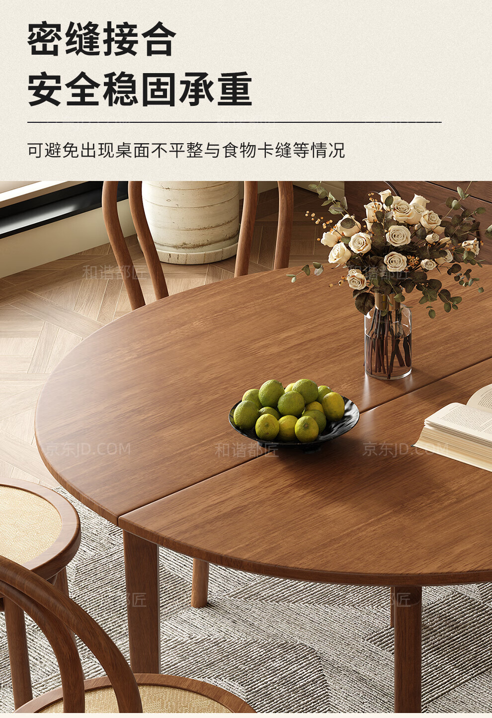 Harmony Dujiang mid-century solid wood dining table retractable folding oval dining table small apartment home dining table and chair combination walnut color single dining table 1 meter retractable to 1.3 meters