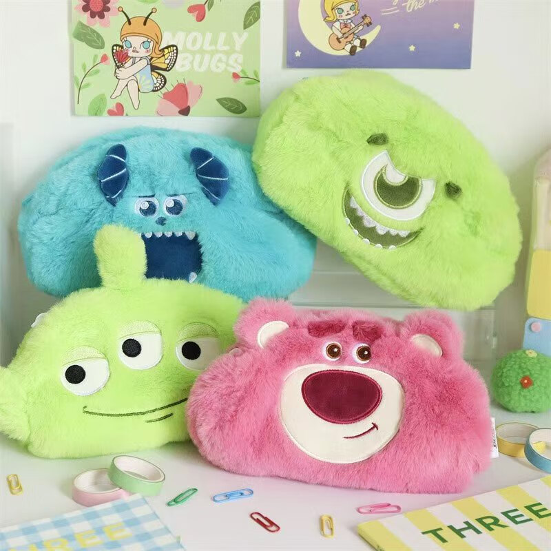 Plush double-sided cartoon storage coin purse Strawberry Bear-Big Eyes Double-sided pencil case / one size fits all