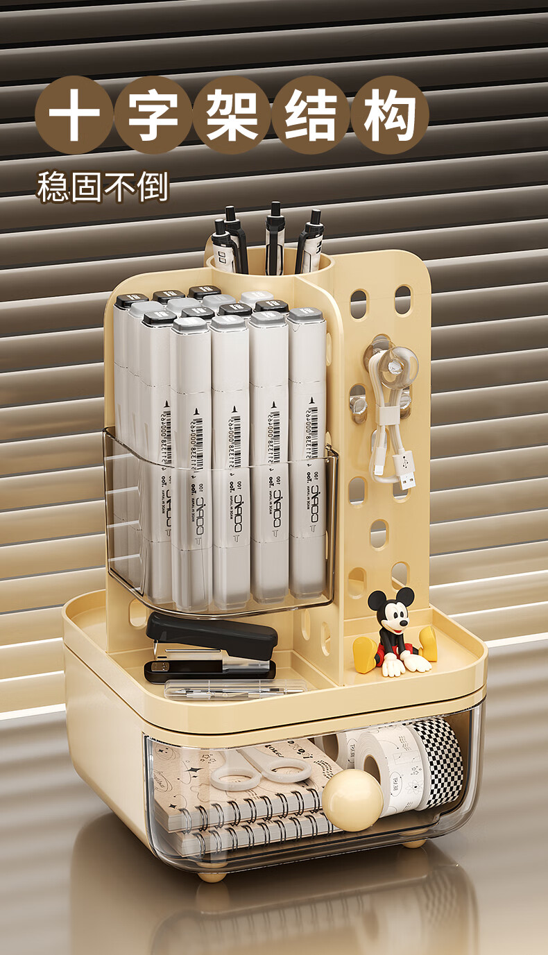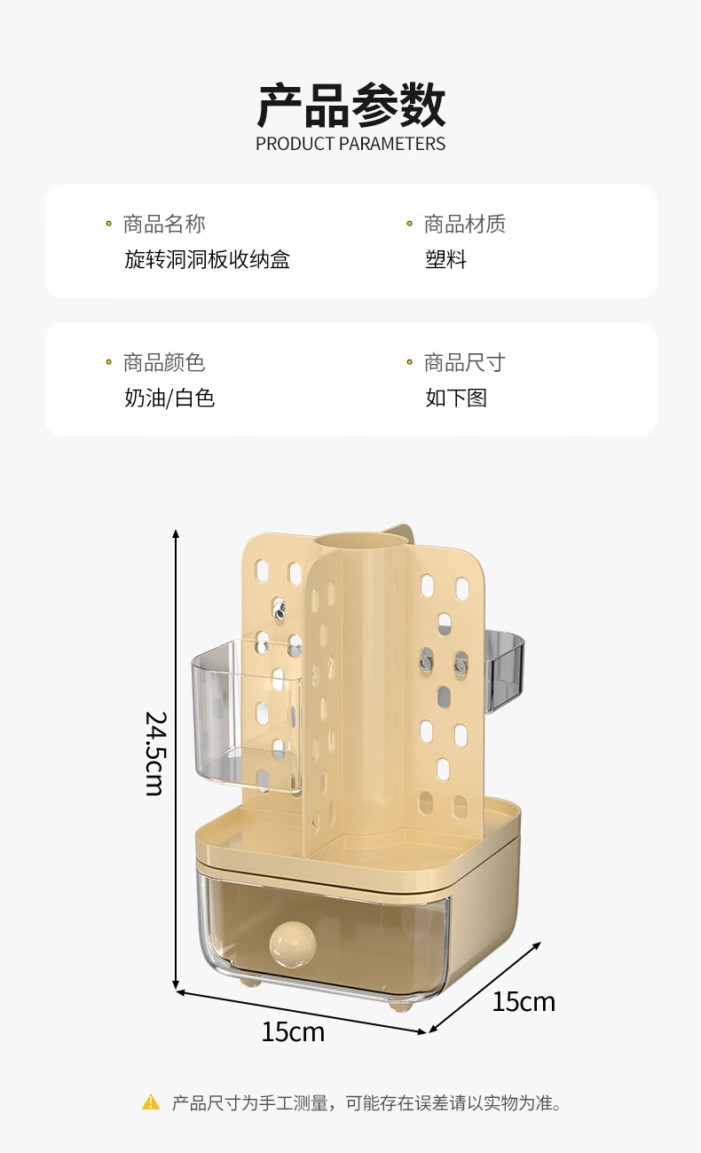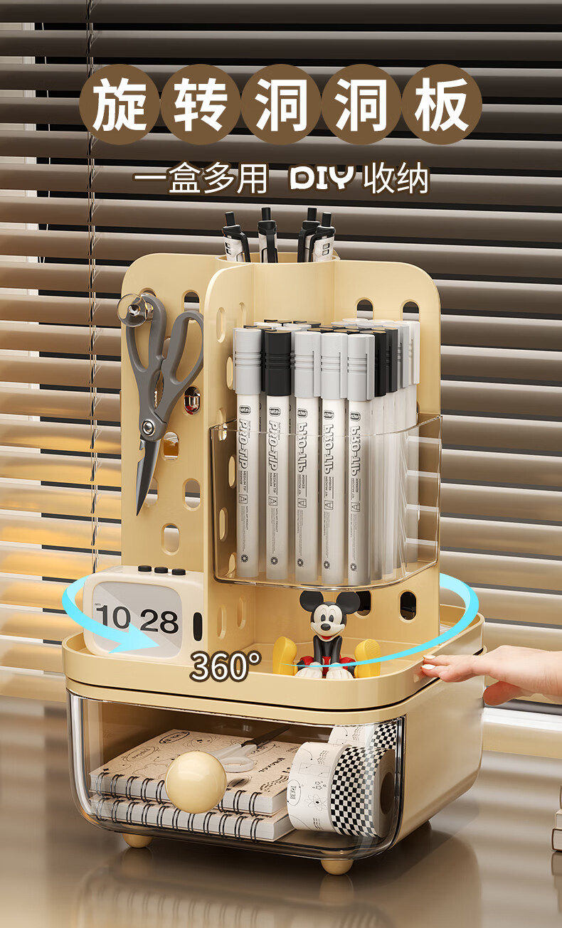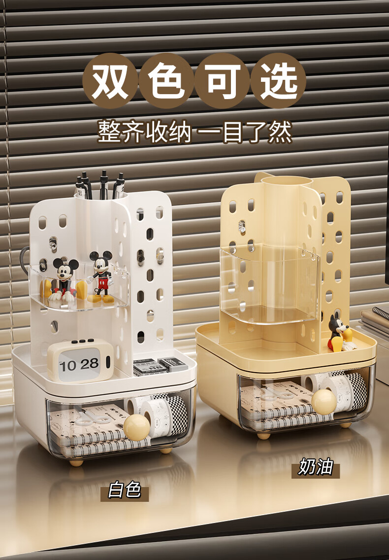 KAMAN desktop perforated board storage box pen holder drawer-type high-looking office student dormitory stationery rotating storage rack cream rotatable/with drawer 1