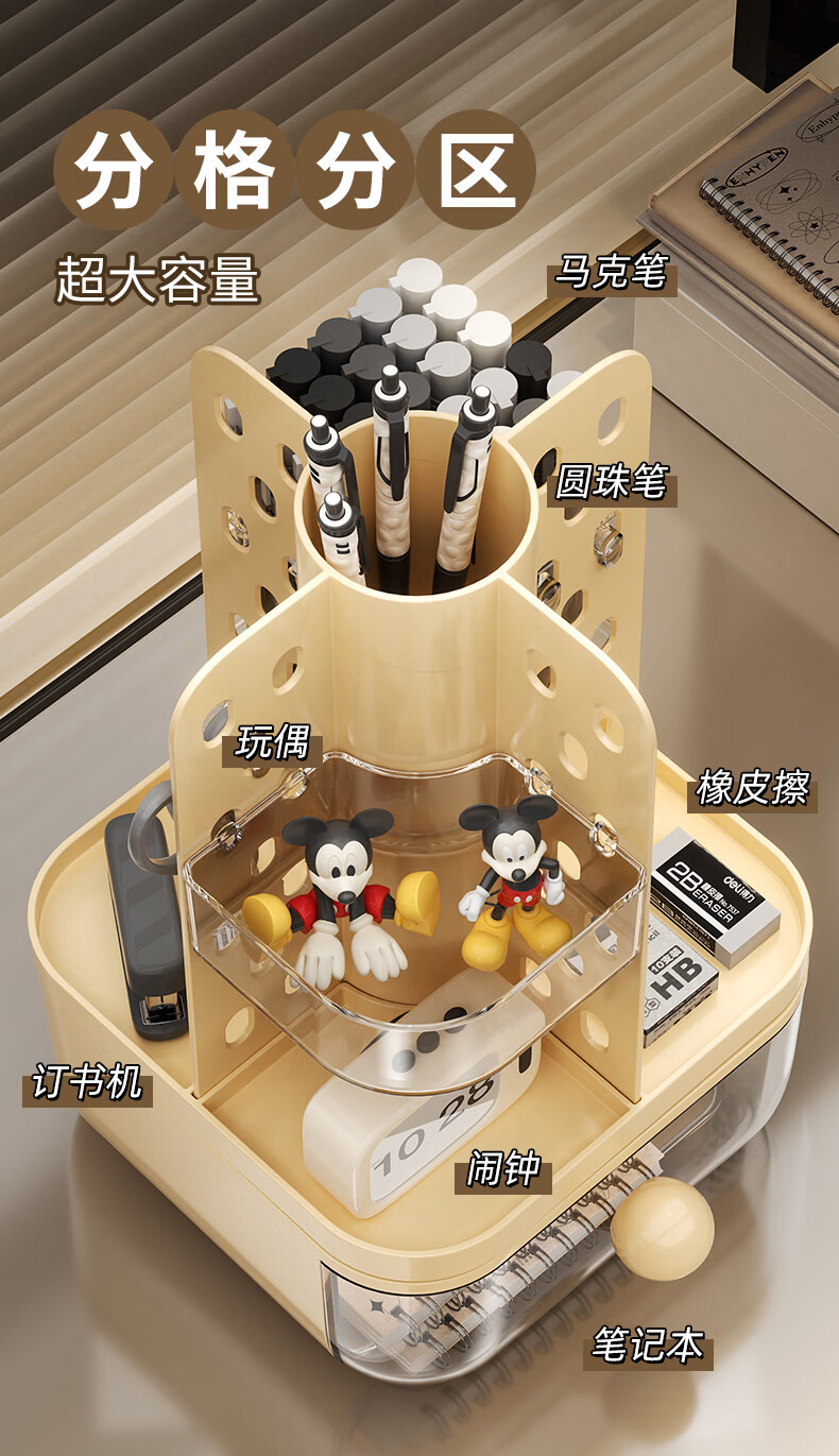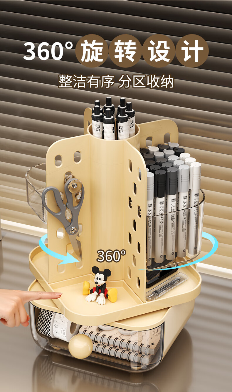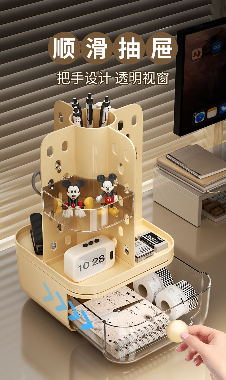 KAMAN desktop perforated board storage box pen holder drawer-type high-looking office student dormitory stationery rotating storage rack cream rotatable/with drawer 1