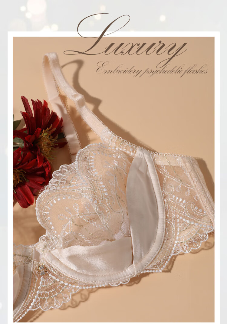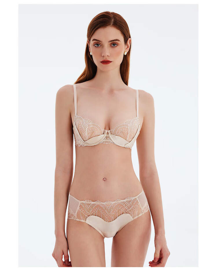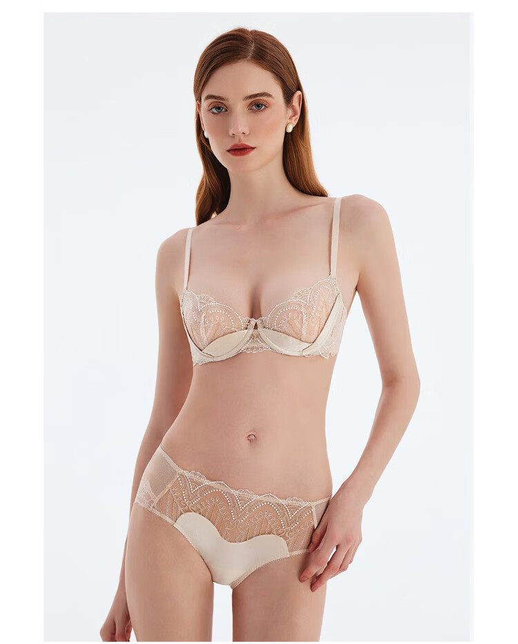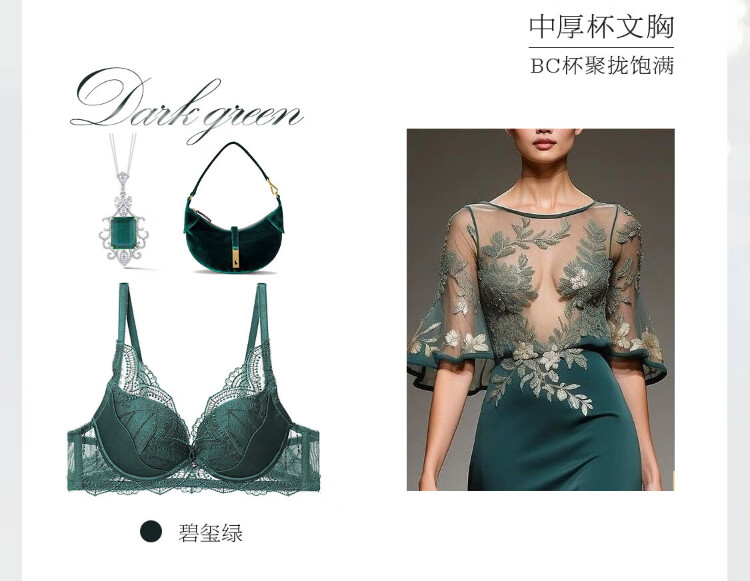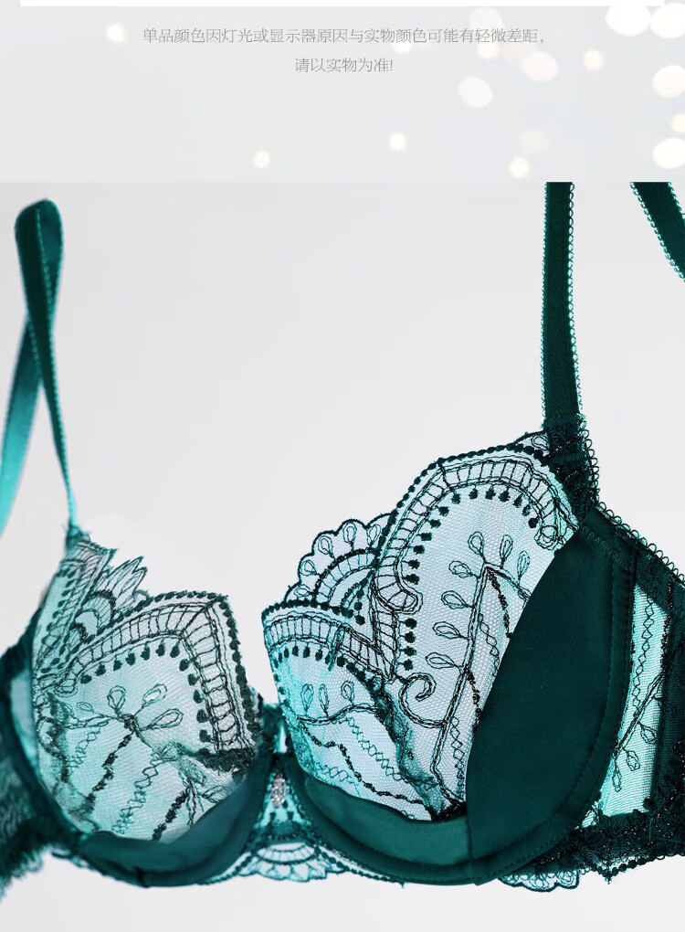 LA CLOVER22SS Wonderland Underwear Women's Sexy Embroidered Stripe Bra and Panties Set LC2023109 Dark Green-Clear Embroidered Thin Cup Bra Set 80C 160