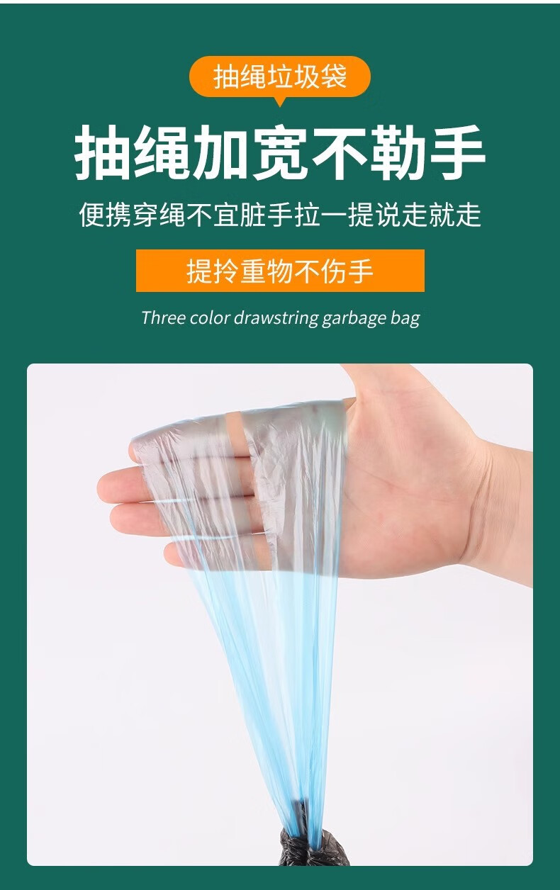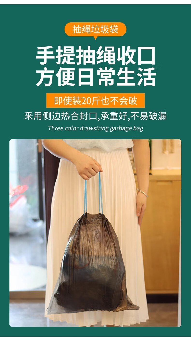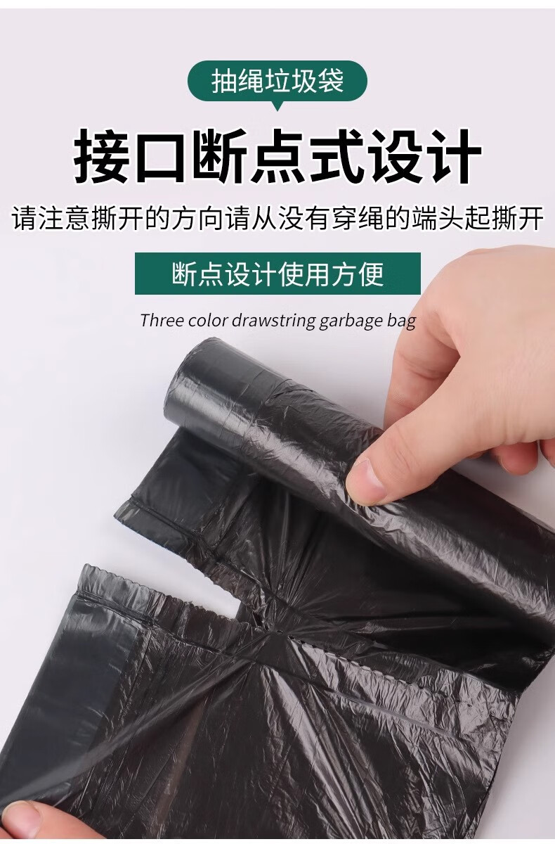 Kitchen tear-free garbage bag household thickened leak-proof portable extra thick drawstring garbage bag large black 45*50 thickened 60 pieces