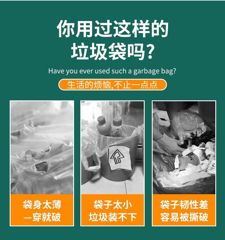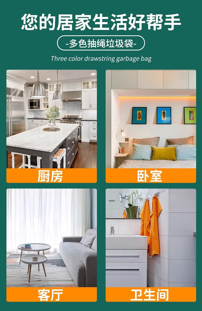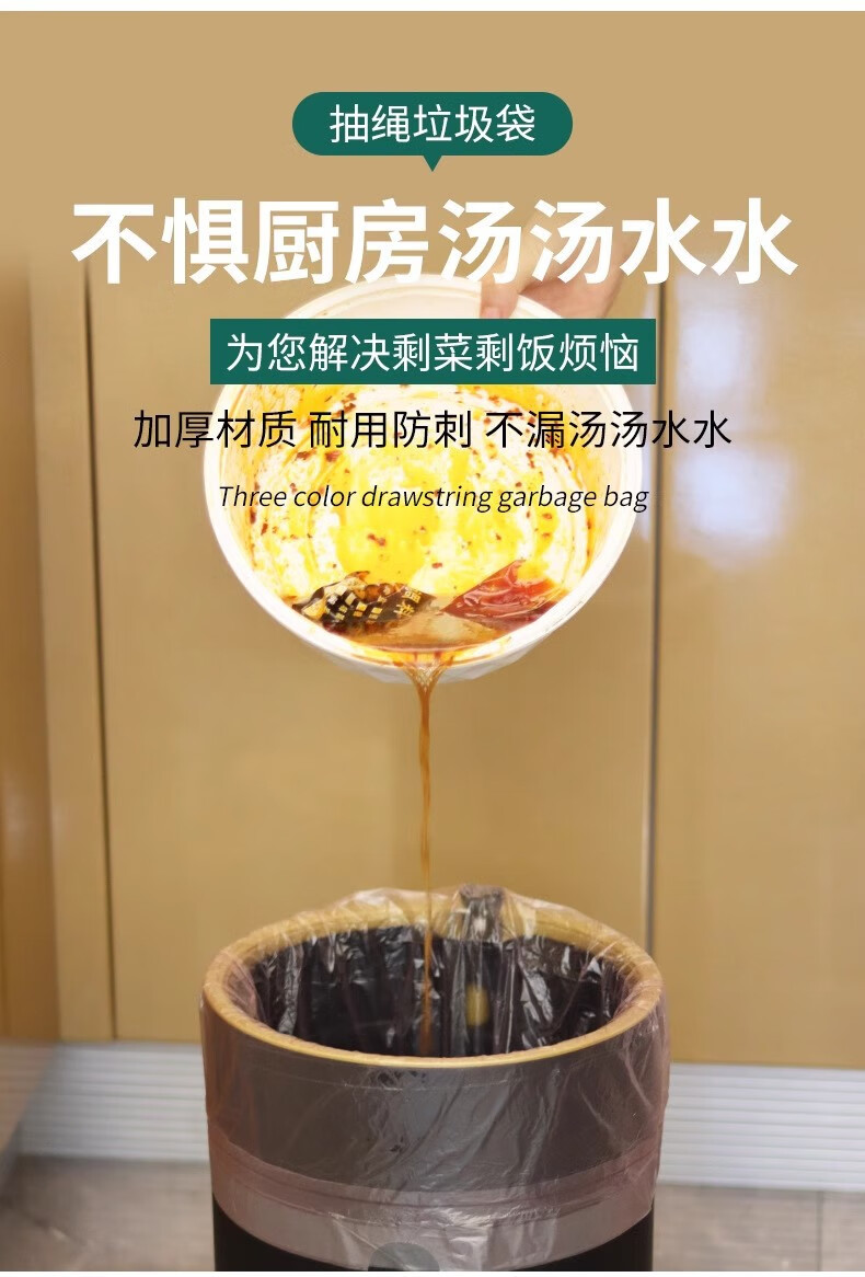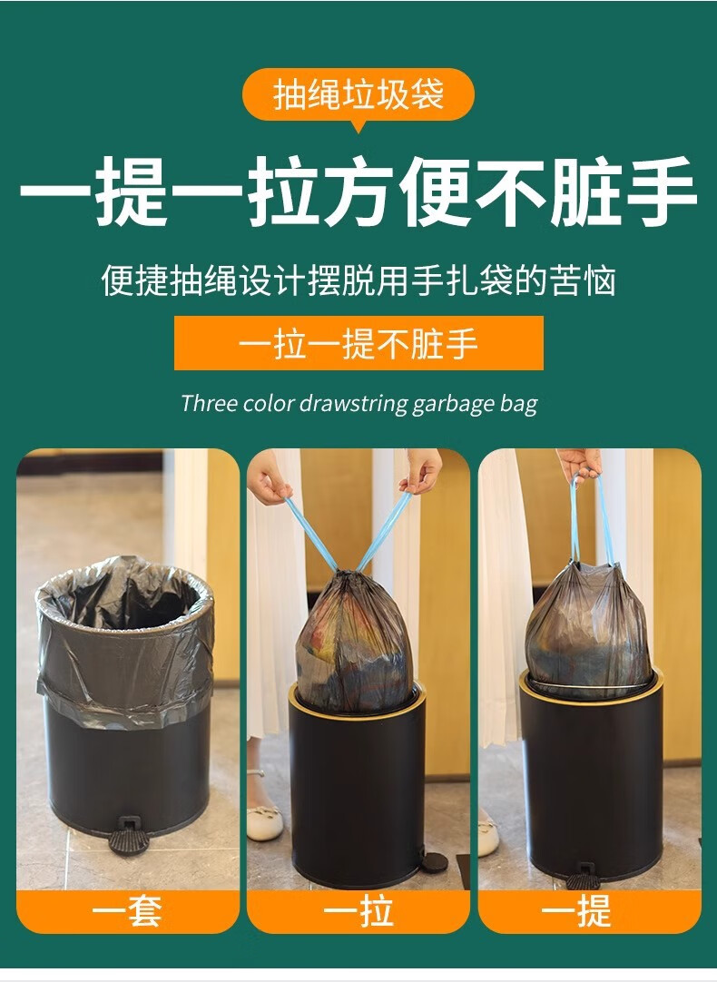 Kitchen tear-free garbage bag household thickened leak-proof portable extra thick drawstring garbage bag large black 45*50 thickened 60 pieces