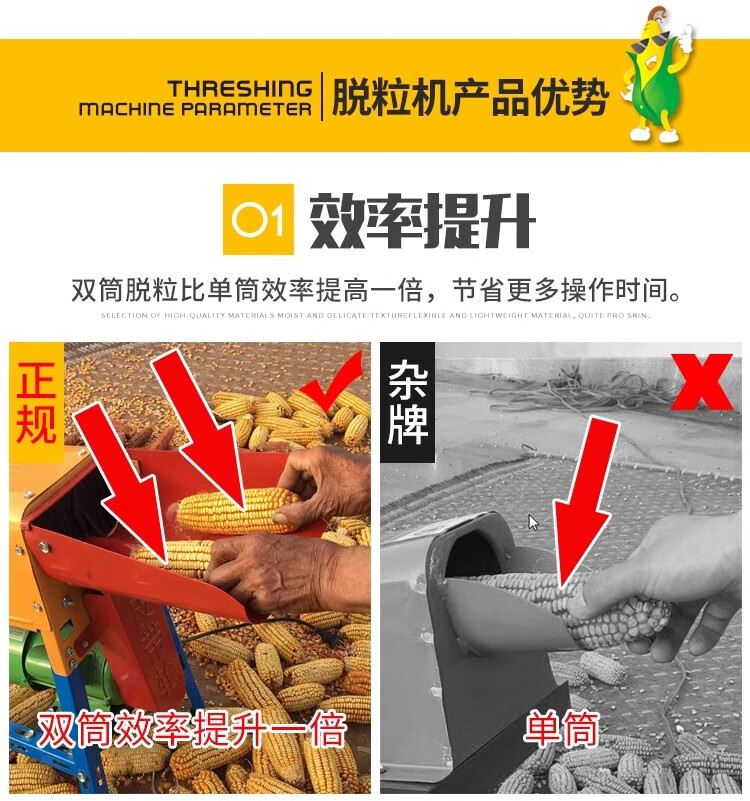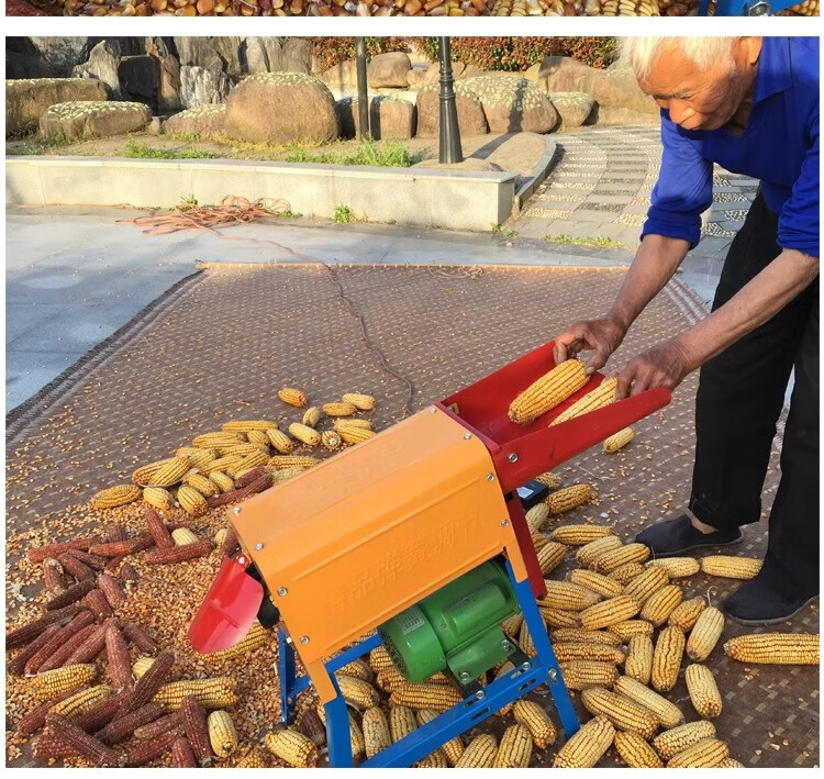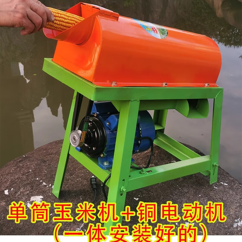 Riqiang electric corn household small 220V fully automatic corn peeling and corn threshing machine corn graining and bract threshing machine