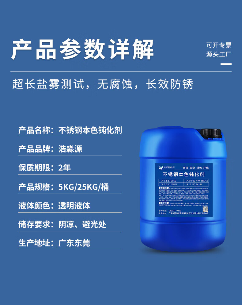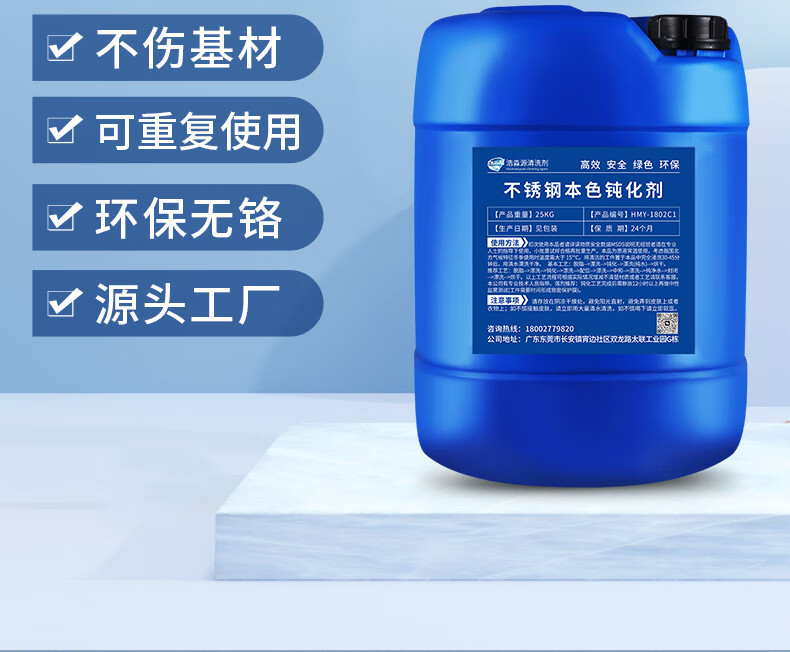 Haomiaoyuan Stainless Steel Natural Passivator Stainless Steel 304/316 Anti-rust, Anti-corrosion, Removal and Oxidation Improvement Salt Spray Resistance Treatment Liquid 201 Passivation Liquid Stainless Steel Natural Passivator-25kg
