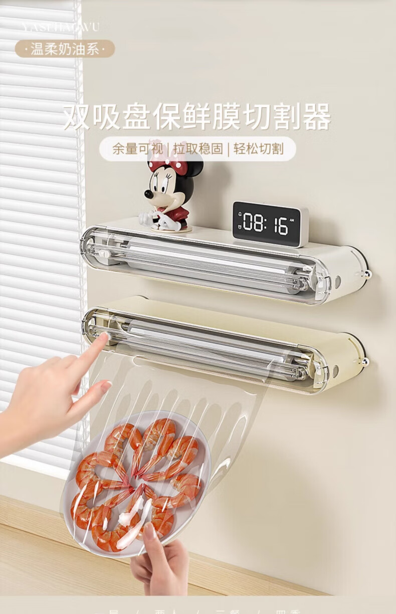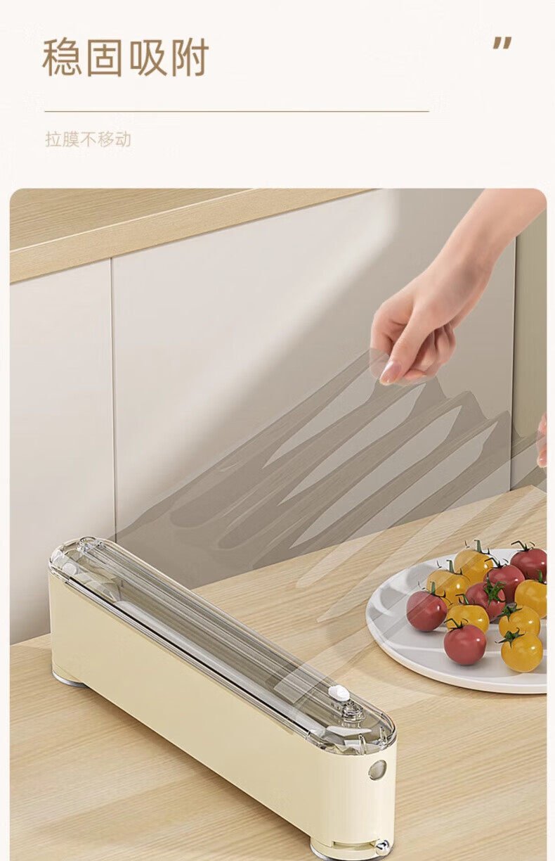 Mofan suction cup cling film cutter refrigerator household disposable cling film cover kitchen food special tear-free cutting box Main picture 2 milk white cutter (double suction cup/