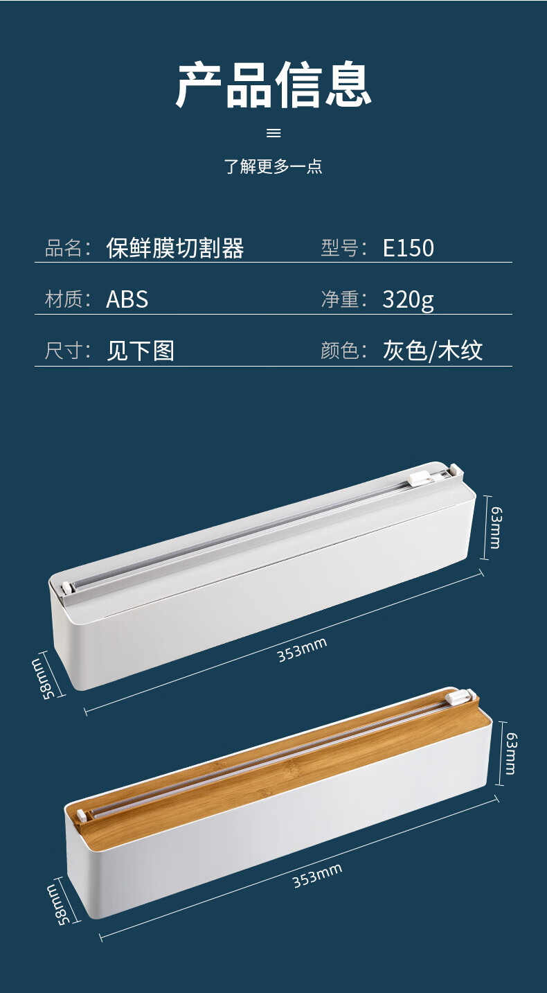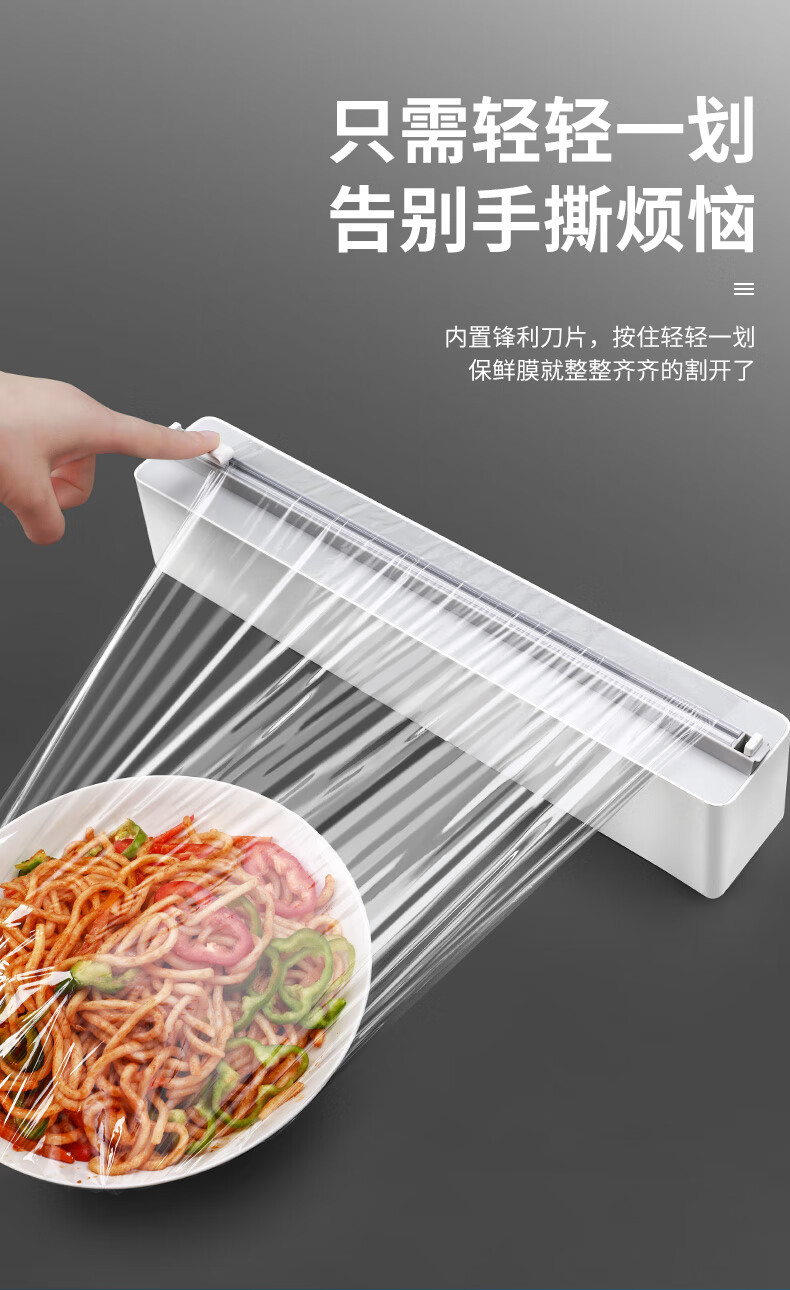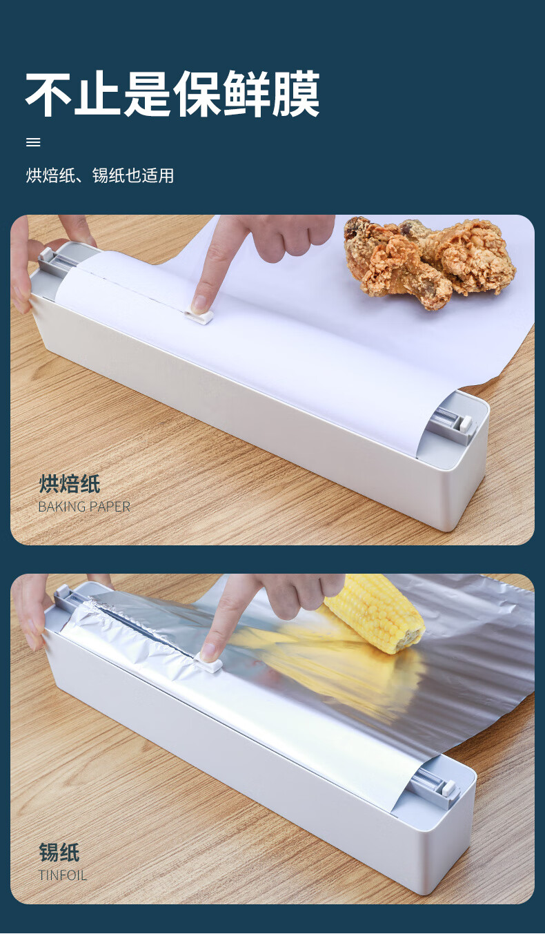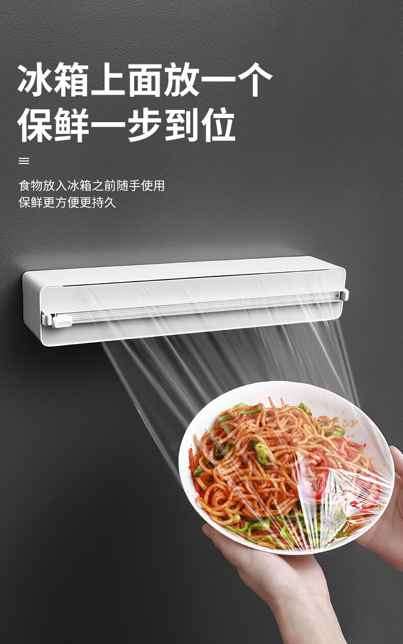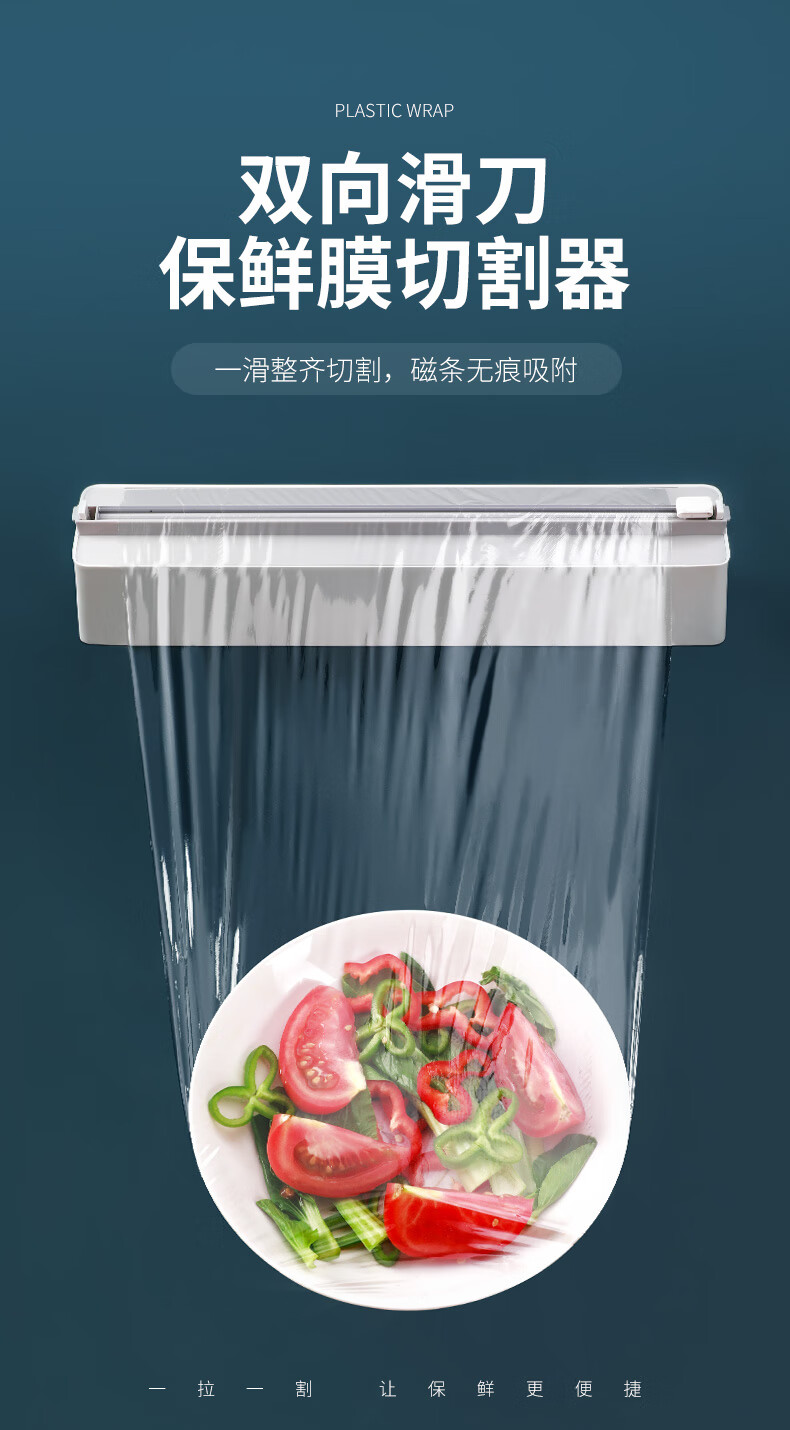 Mofan cling film cutter magnetic suction refrigerator special tear-free disposable cling film set kitchen household cutting box artifact style gray cutter + 50 meters of cling film 6-36cm