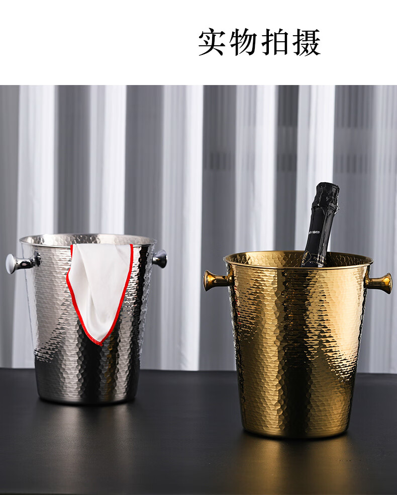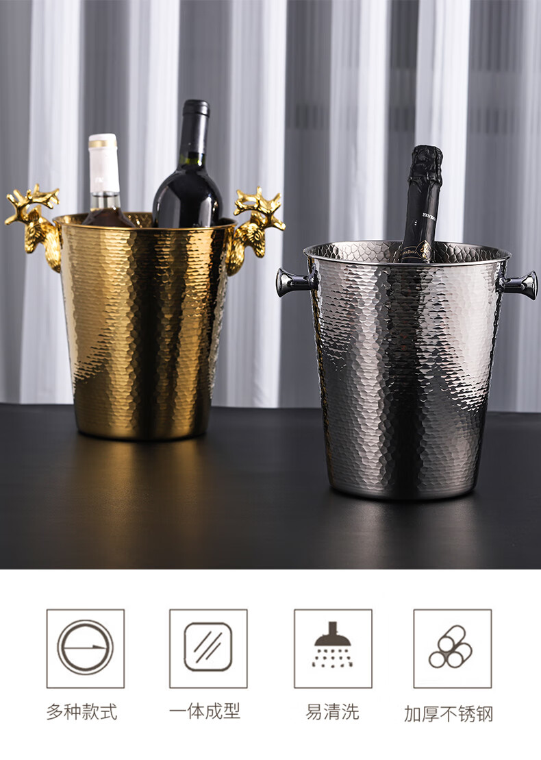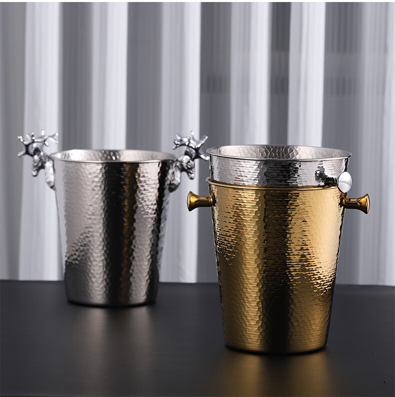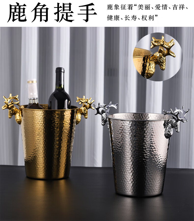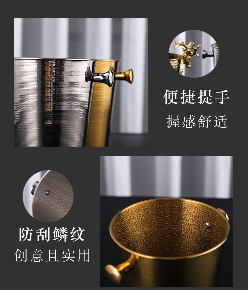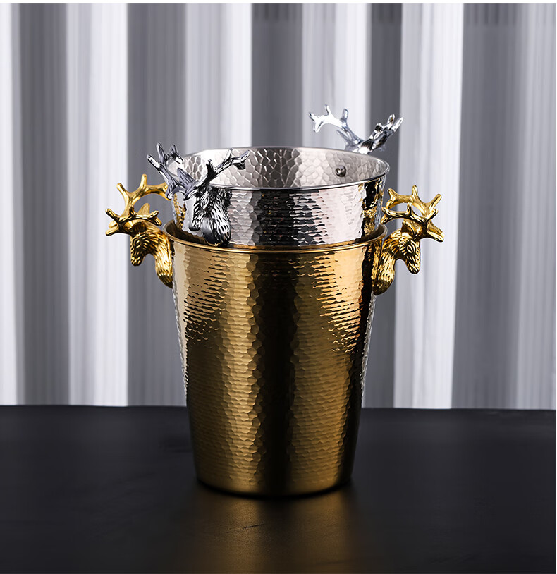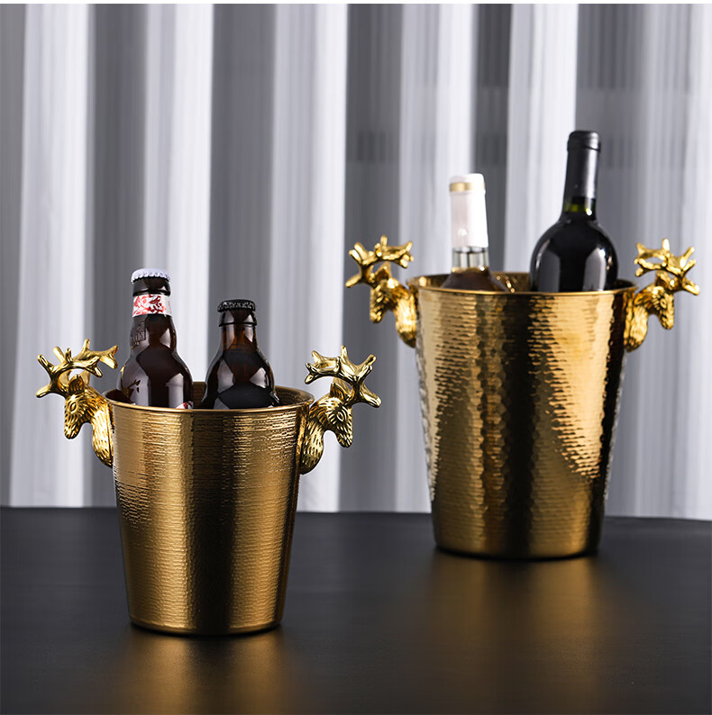 VOZVO European-style antler champagne bucket home wine ice bucket commercial restaurant bar thickened metal ice bucket light luxury 2L gold scale striped style