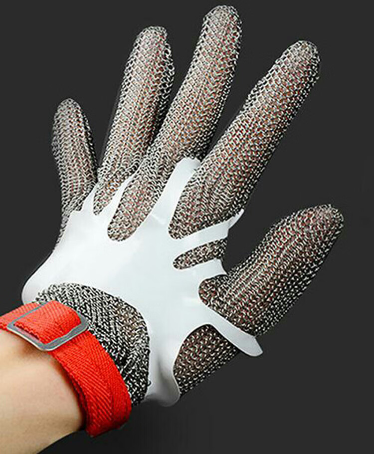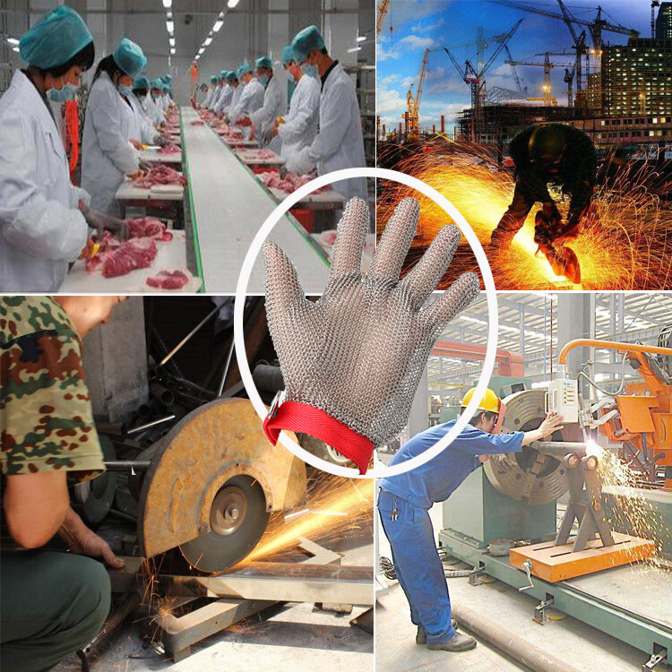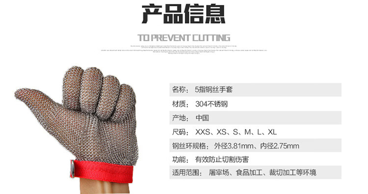 304 Steel Ring Welded Steel Wire Gloves Anti-cutting Anti-cut Fish Killing Five Finger Metal Oyster Chainmail Gloves Five Finger Style---Single Price---Usable for both left and right hands XS