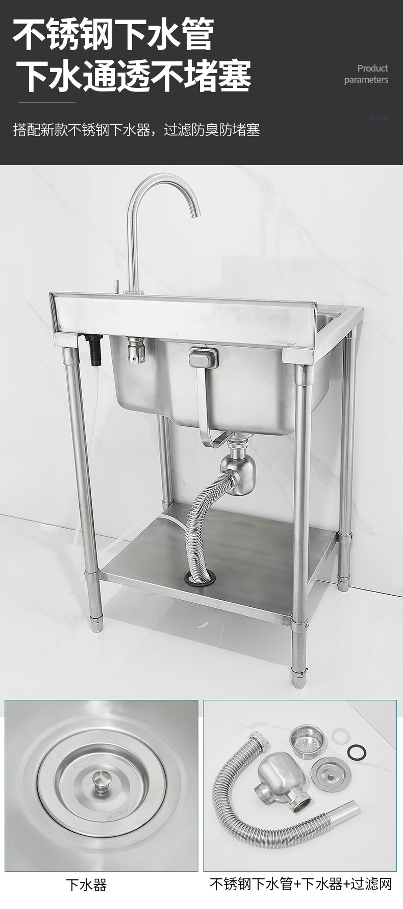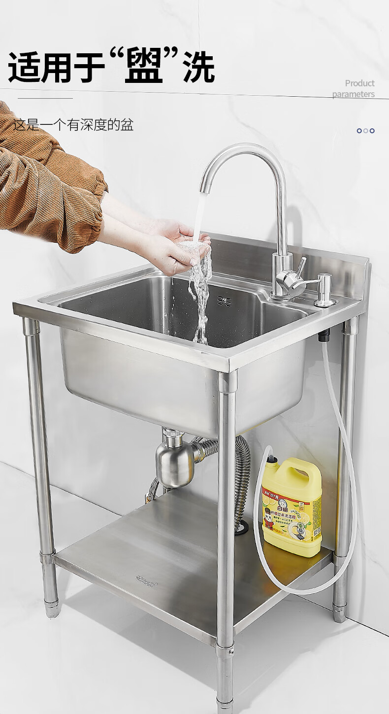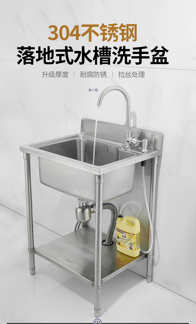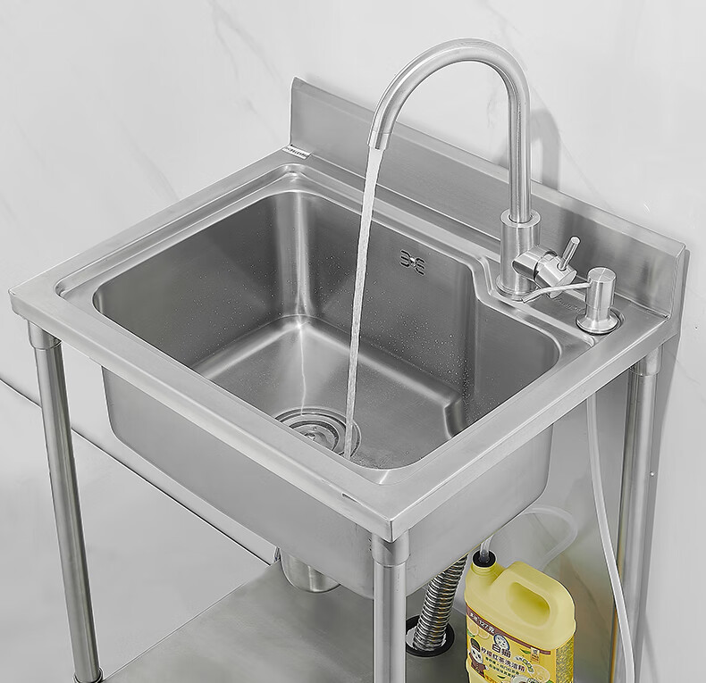 Pupan commercial 304 stainless steel sink large single tank with soap dispenser for kitchen sink basin wash basin sink package A 5643 floor stand sink (not included