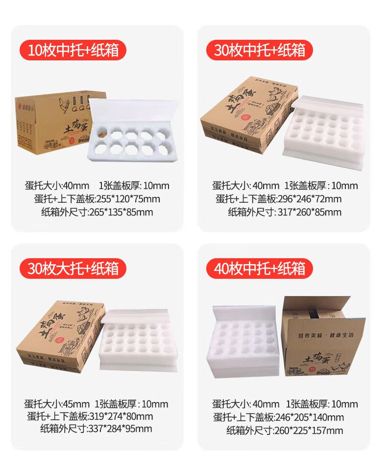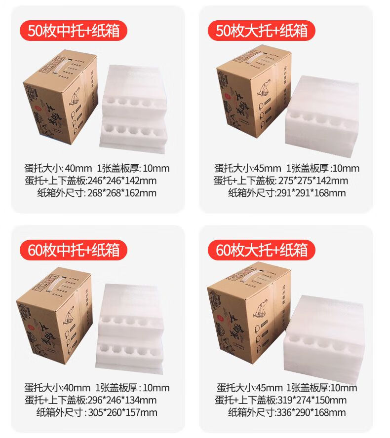 Local egg packaging box, shockproof and drop-proof, 30/40/50/60/100 pieces, customized egg tray for express delivery, 50 pieces, buckle center tray + carton, multiple of 12