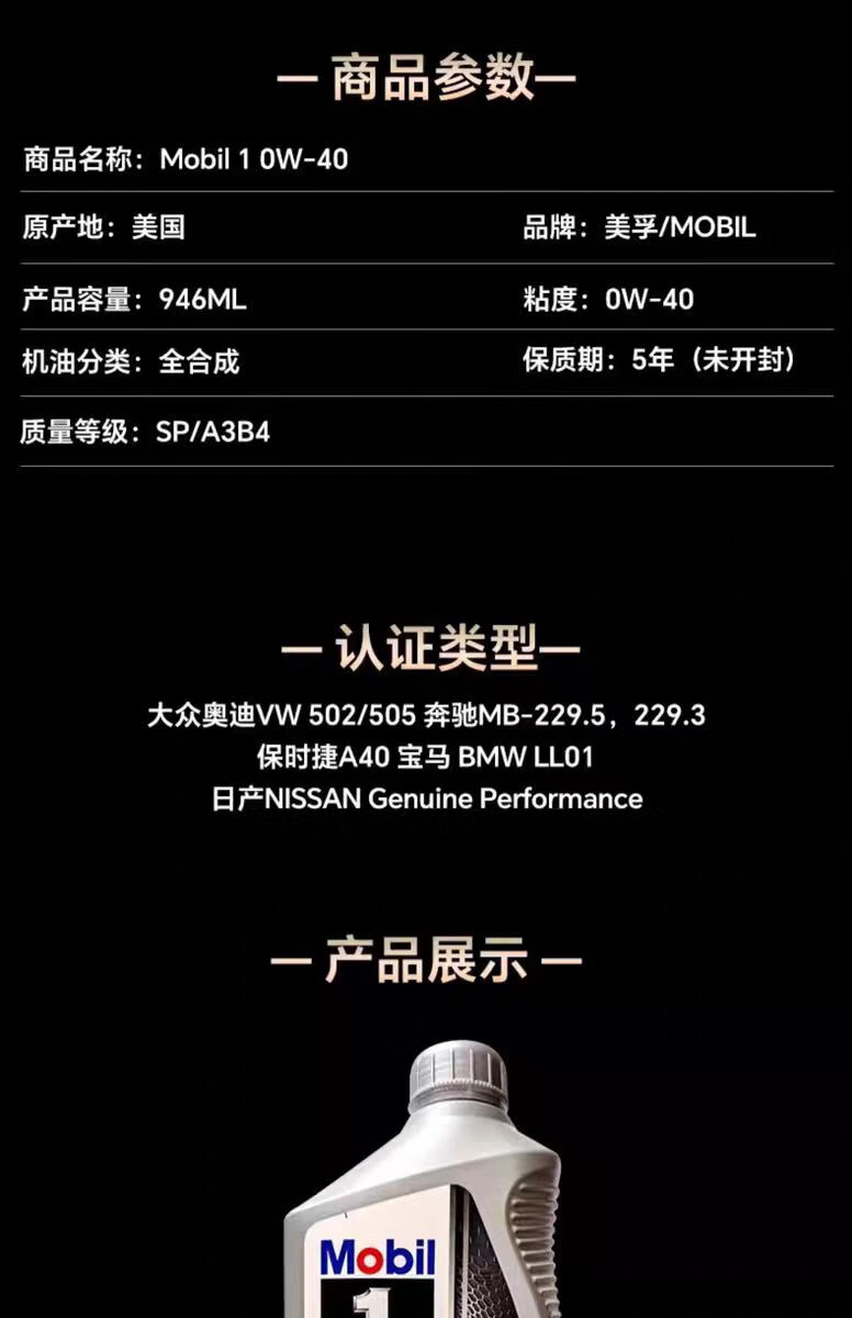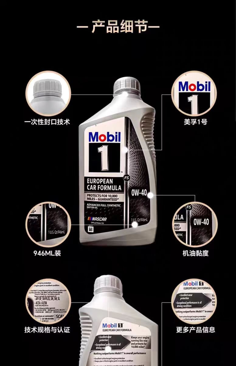 Imported American version of silver Mobil No. 1 FS0W40 engine oil additive suitable for Skoda, BMW and Mercedes-Benz Volkswagen Mobil No. 1 FS 0W-40 American version 0.946L