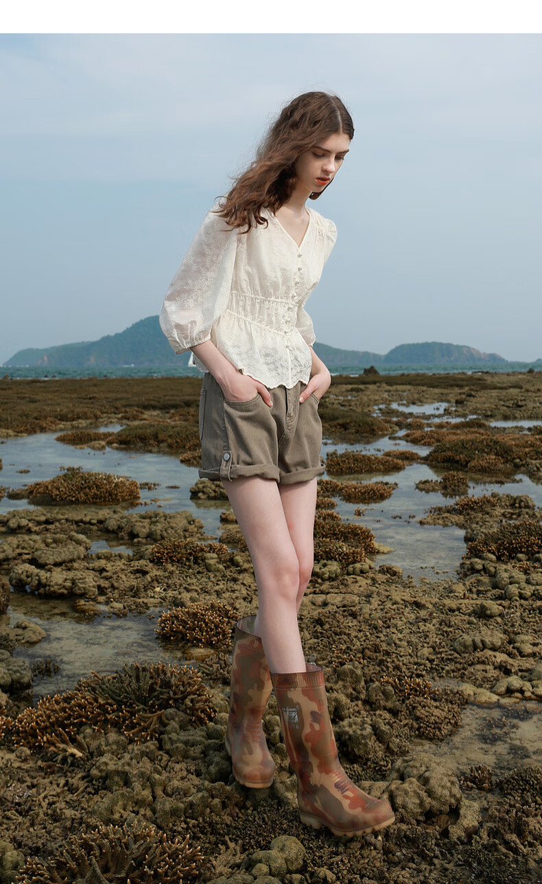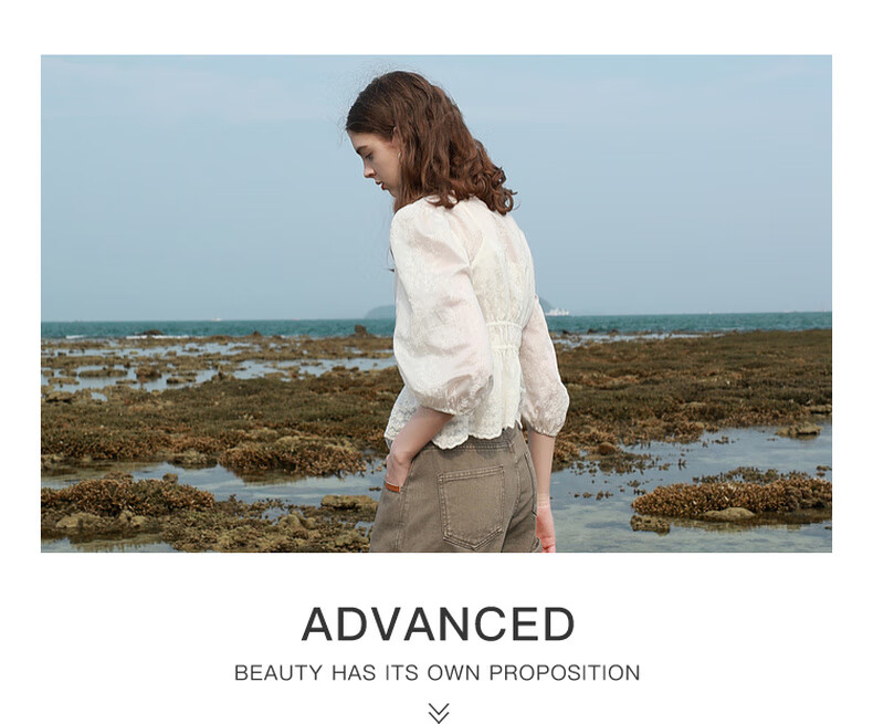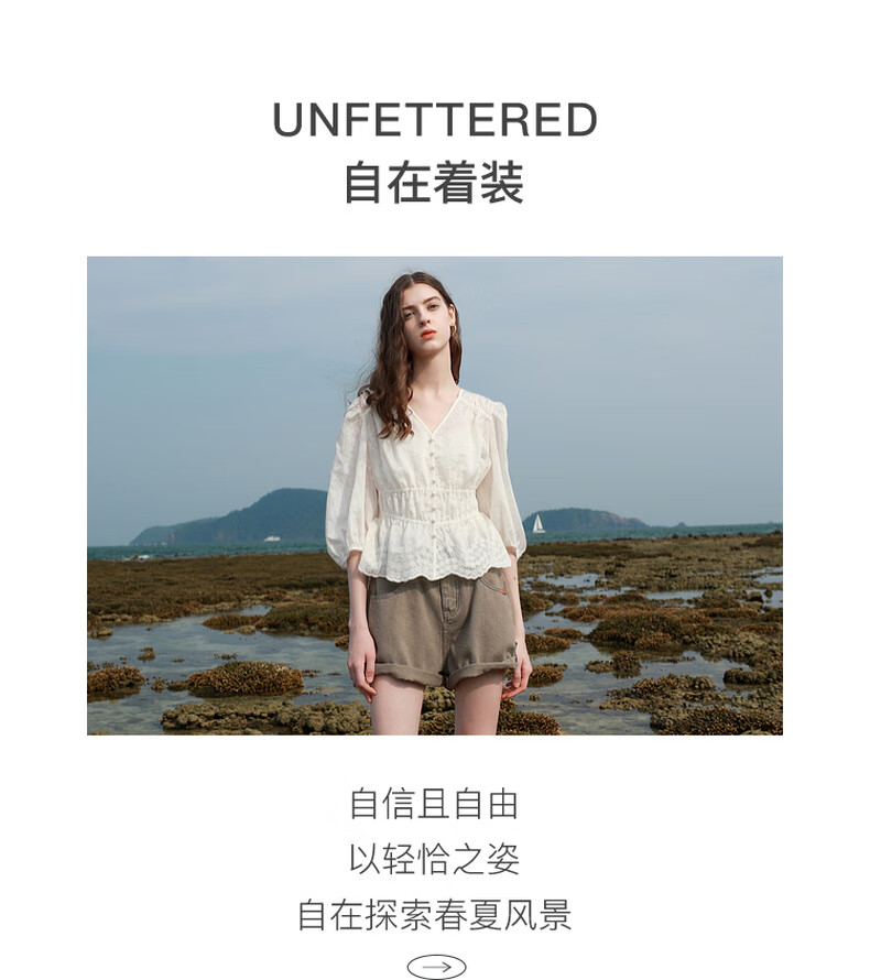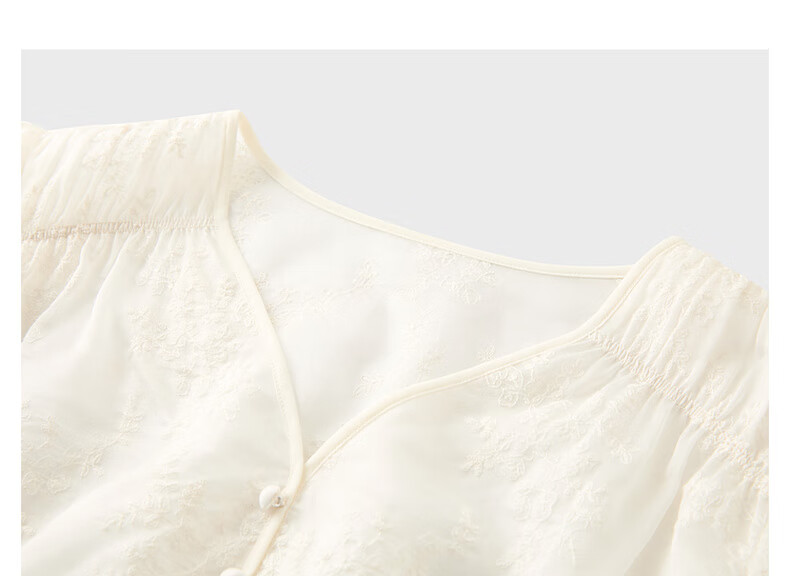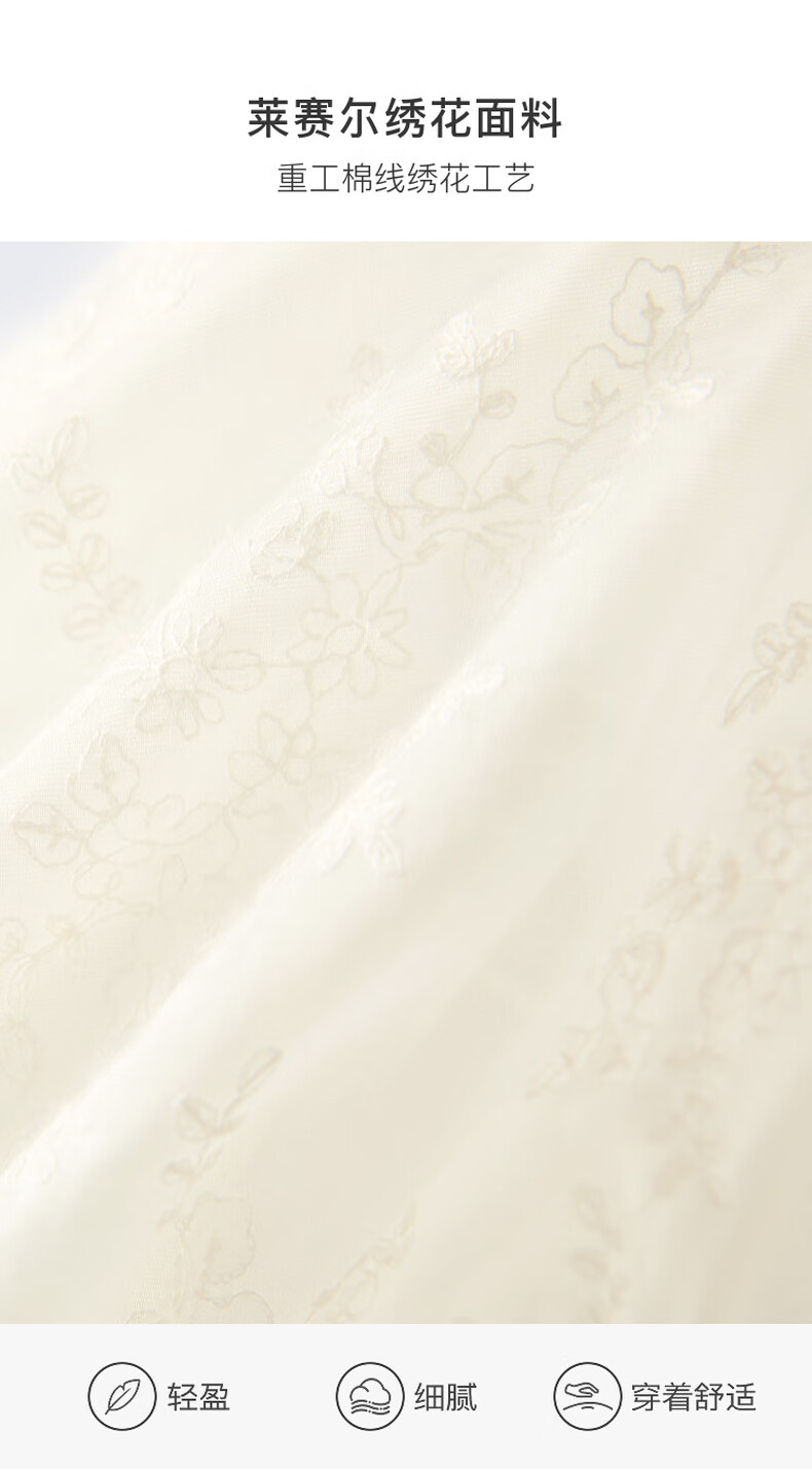 Tricolor 2025 Summer New Three Quarter Sleeve V Neck Lyocell Embroidered Shirt Waist Shirt Top Women Off White L 165/88A