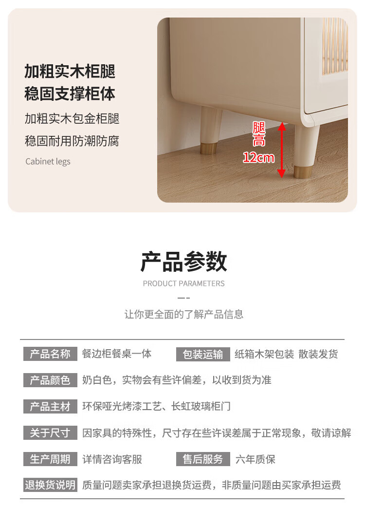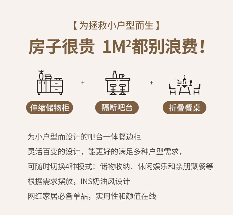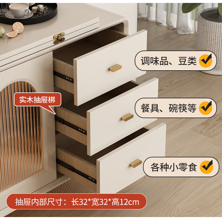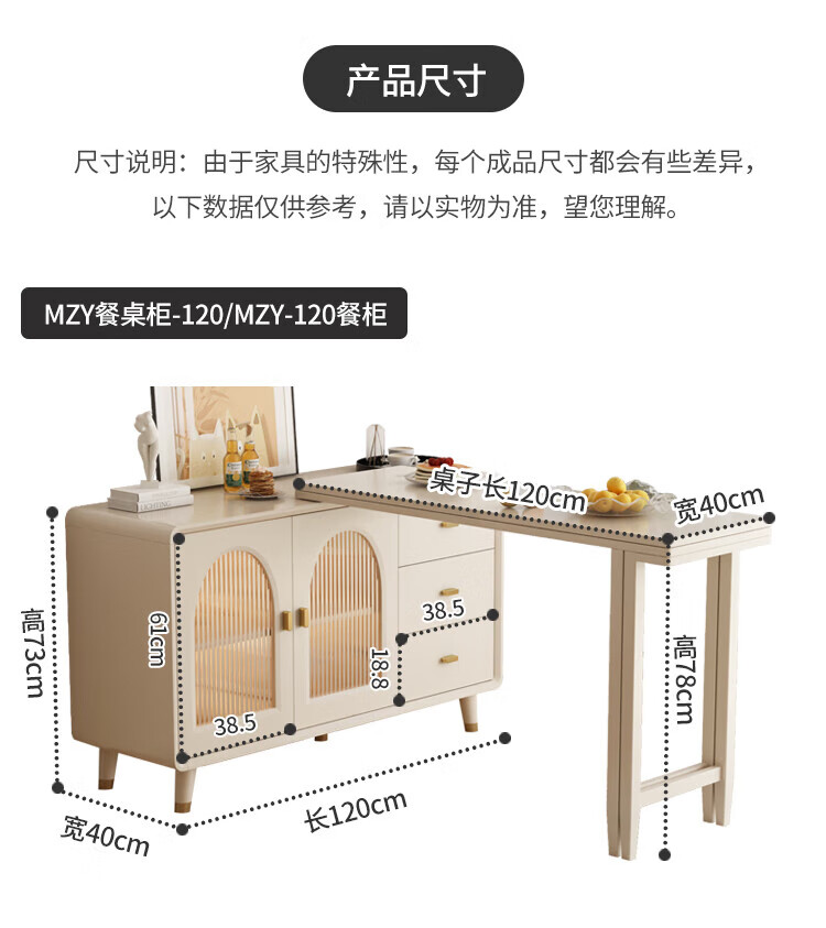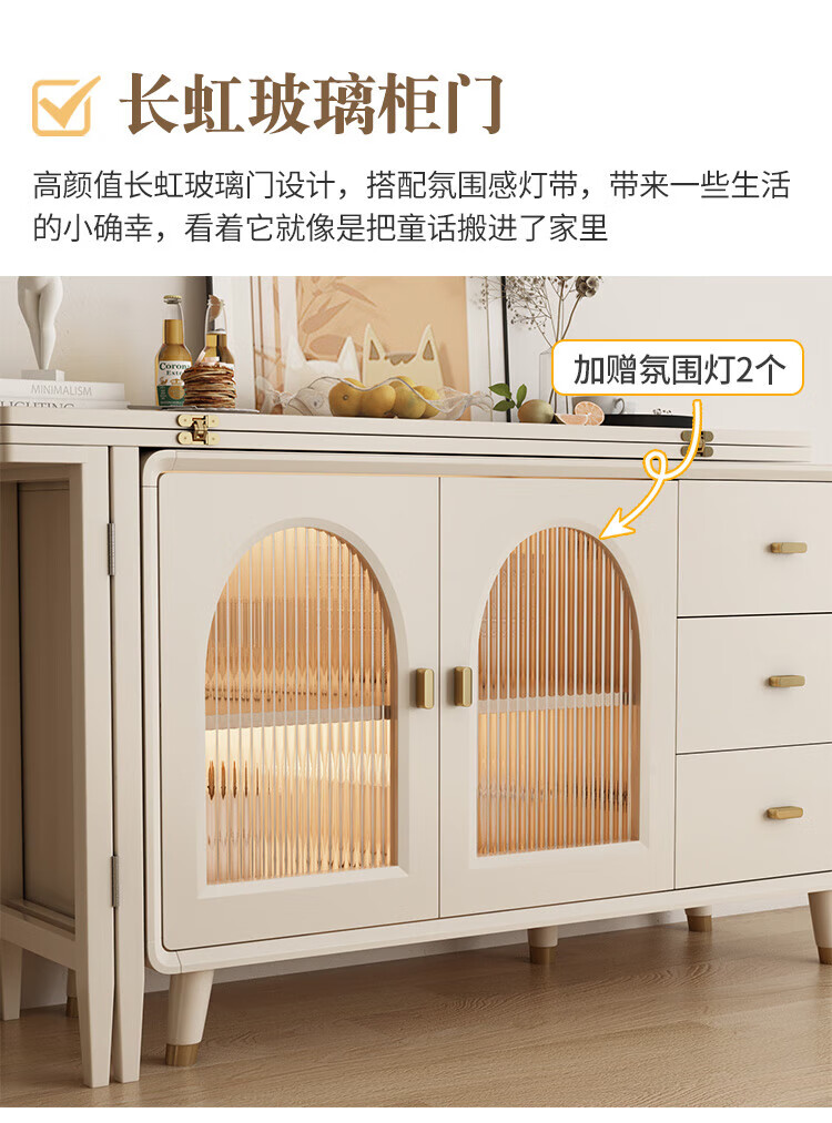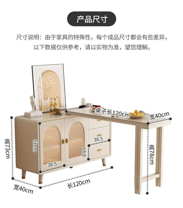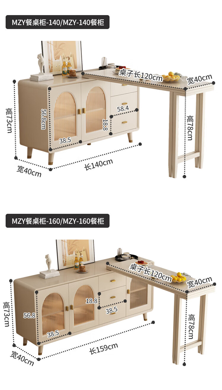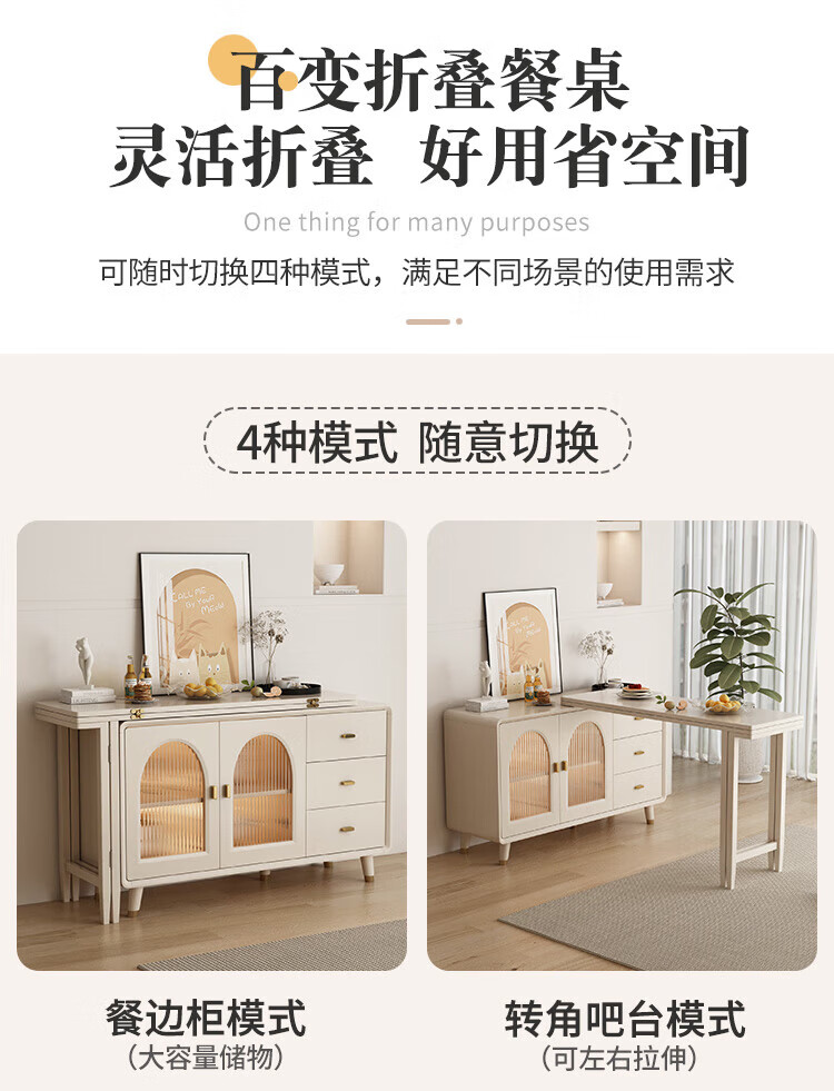 Bomengke light luxury cream style foldable dining table and sideboard integrated modern simple small apartment multi-functional storage cabinet dining table MZY dining table cabinet-120 retractable 120*40*73cm