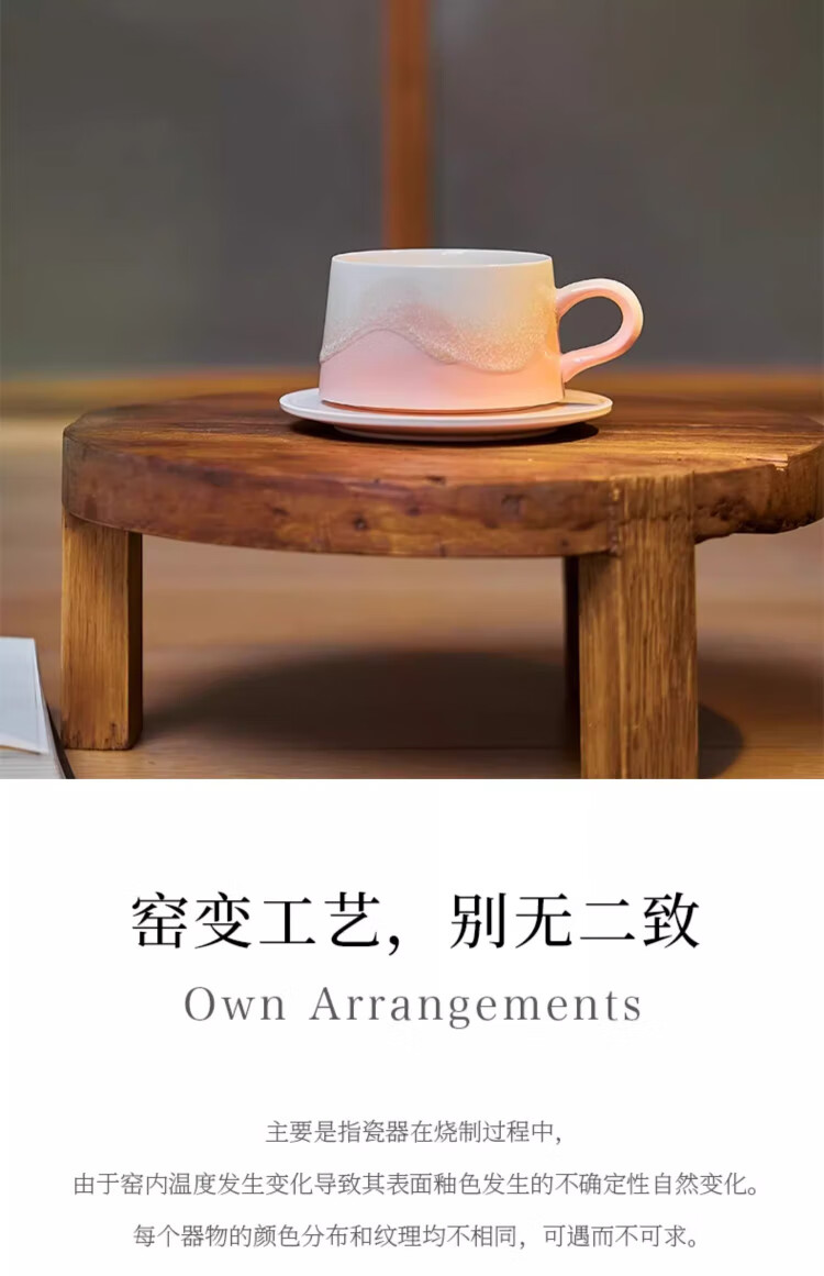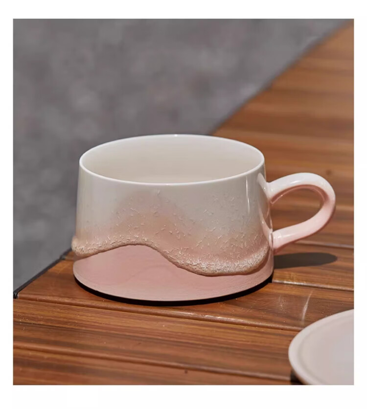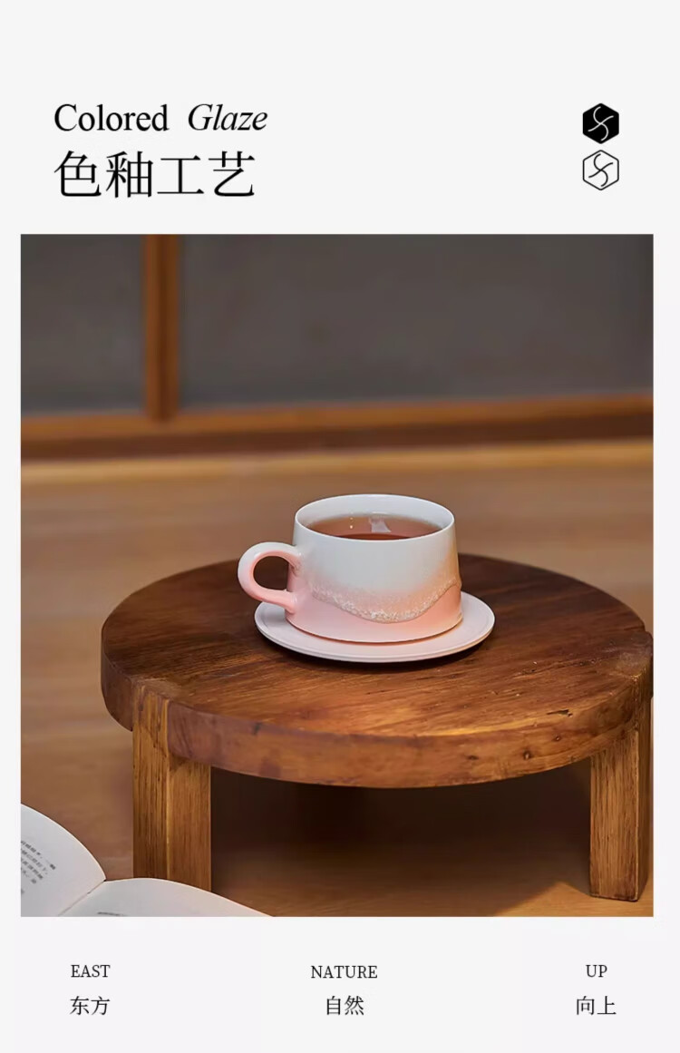 Amber powder ceramic coffee cup and saucer set for couples, underglaze gift box for girlfriend, birthday gift for Valentine's Day, amber powder coffee cup gift box, 1 piece 220ml