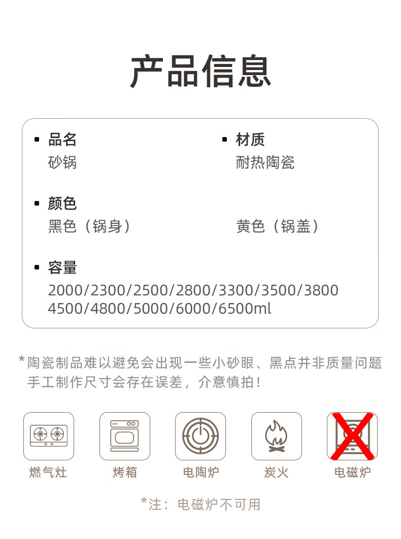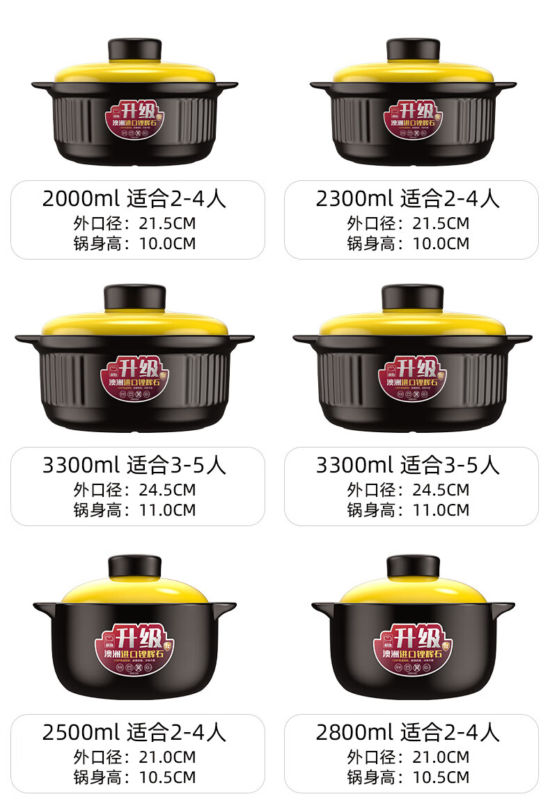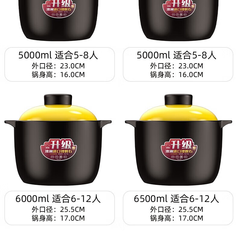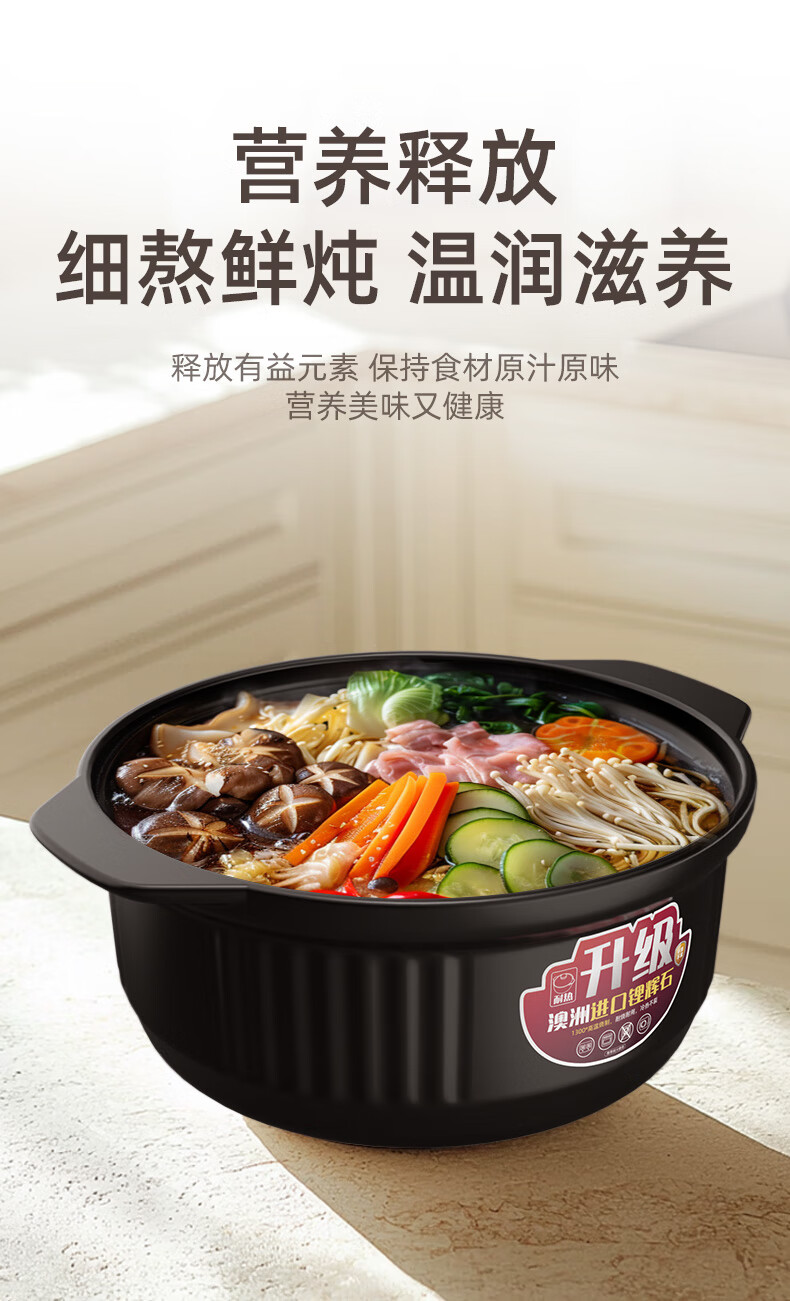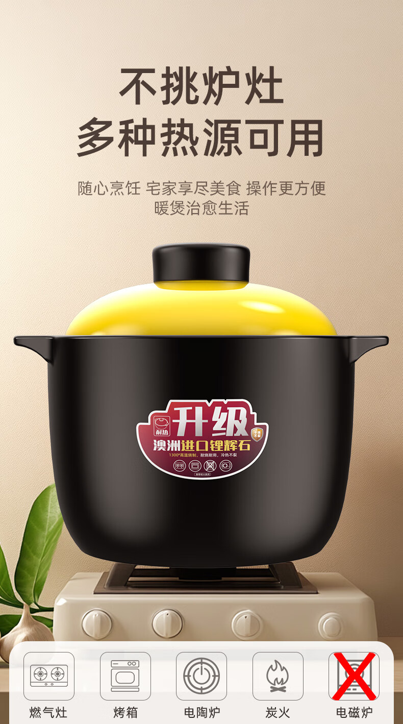 Kangshu Kangshu casserole stew pot household gas high temperature resistant ceramic soup pot dry burning non-cracking gas stove clay pot rice casserole new formula black and yellow casserole suitable for 6-12 people 6500ml