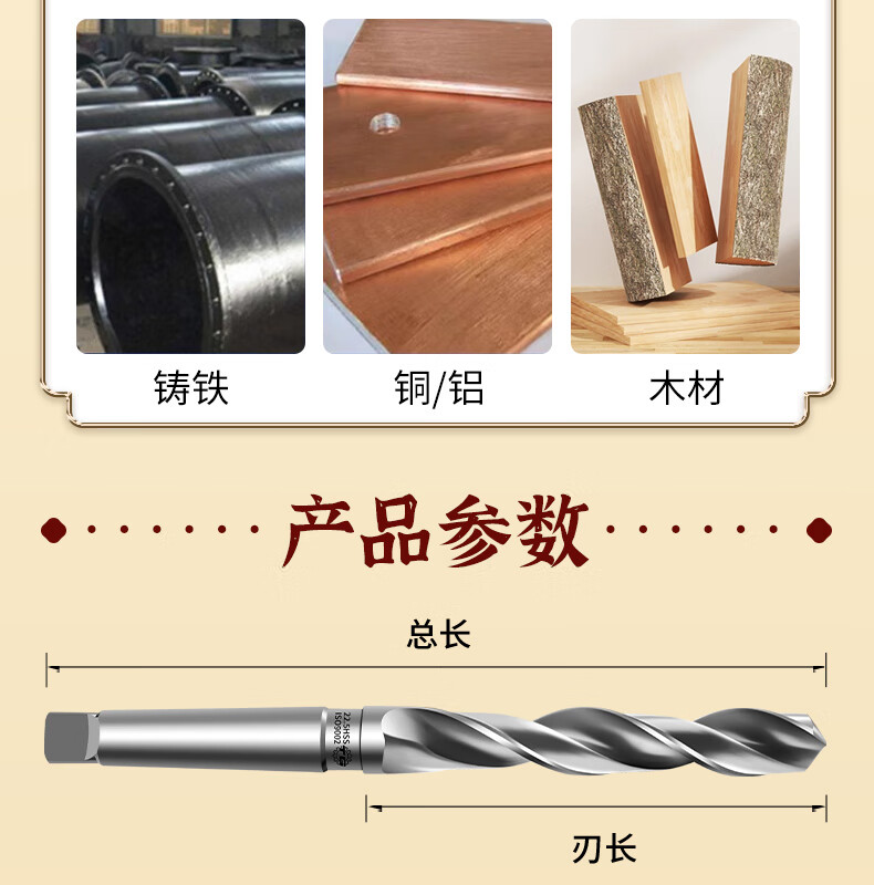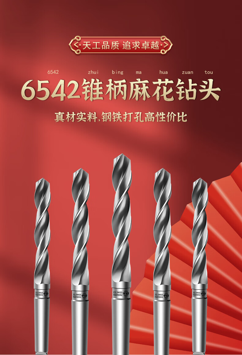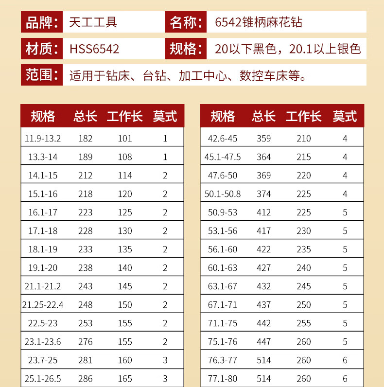 TIANGONG 6542 taper handle twist drill for Mohs stainless steel, special cobalt-containing super-hard extended drill twist drill for high-speed steel drilling 14.2mm