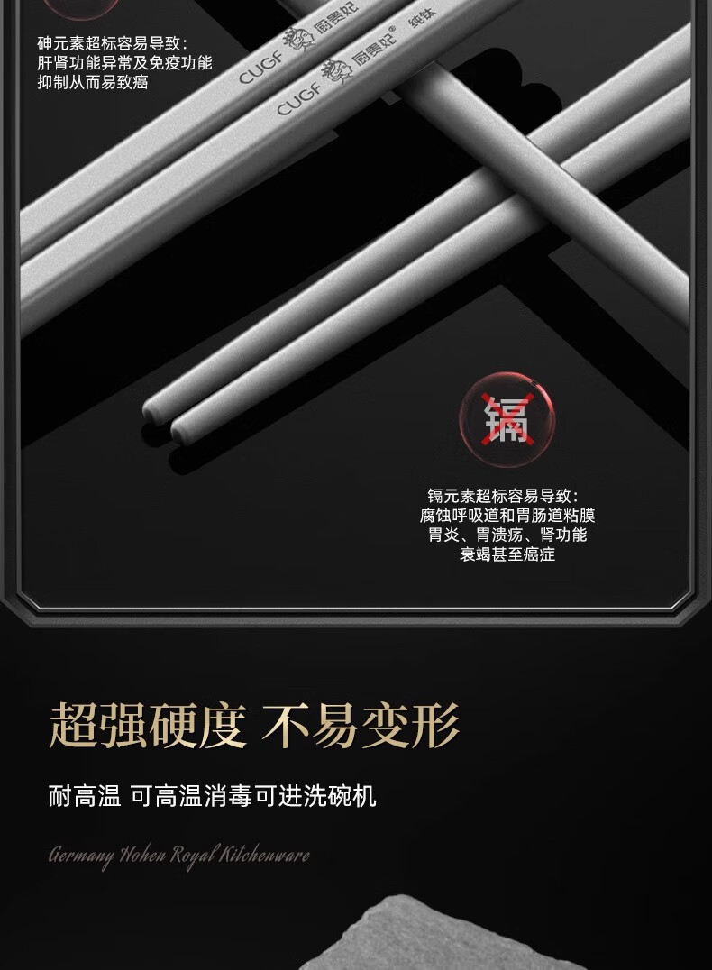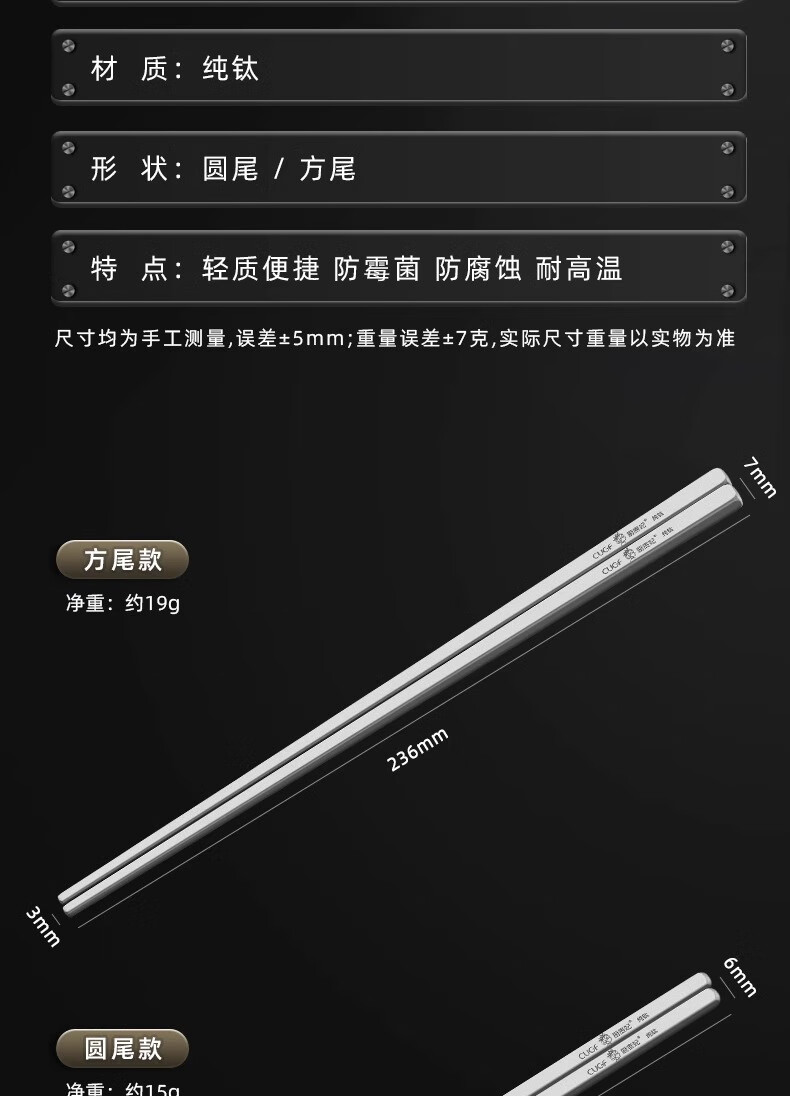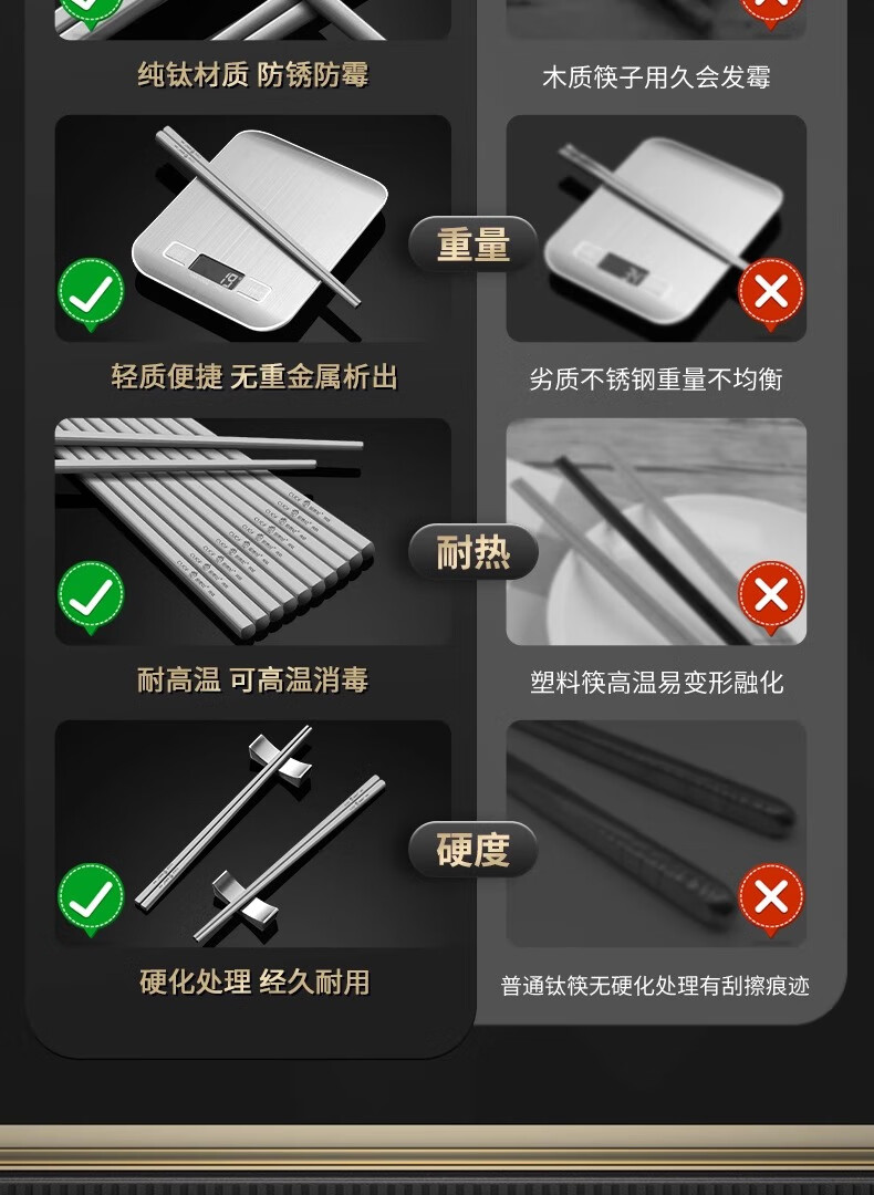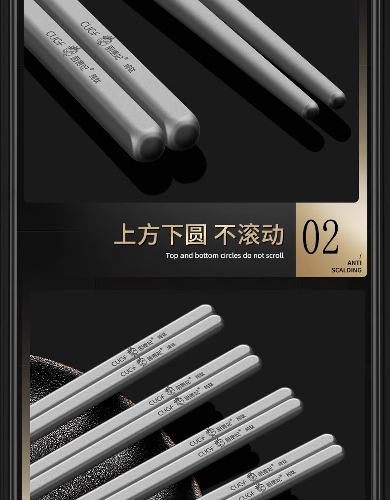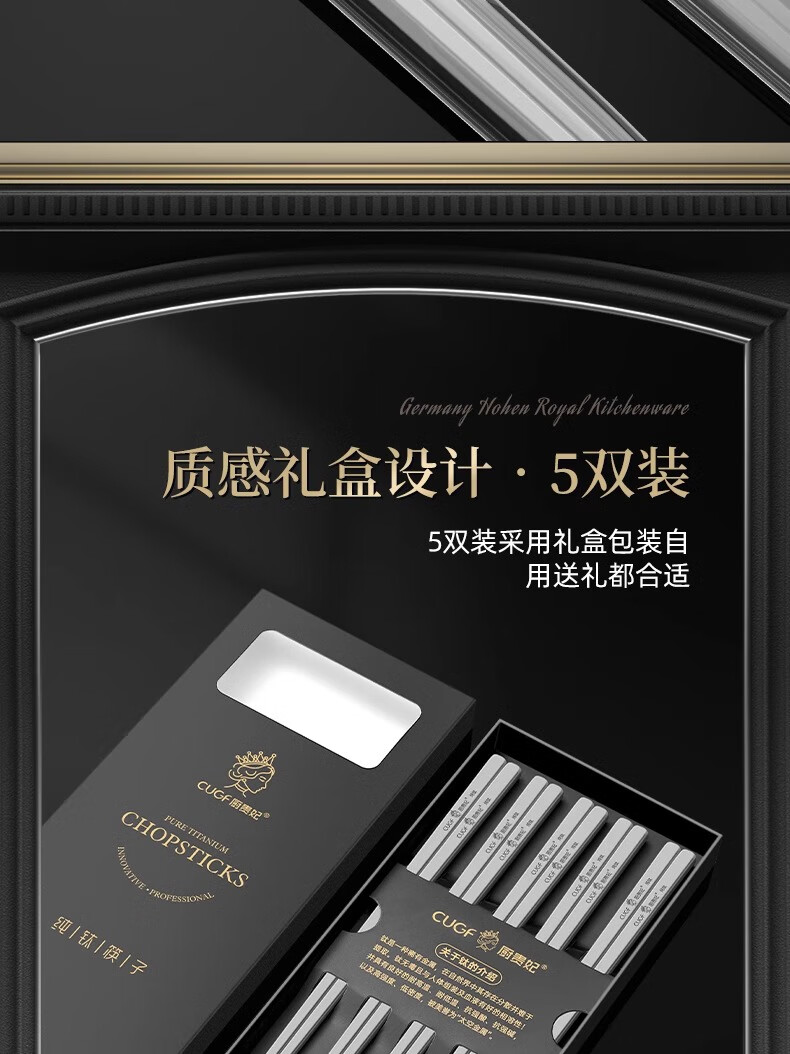 Chu Guifei (CUGF) Chu Guifei pure titanium chopsticks household high-end tableware anti-bacterial and mildew-proof household chopsticks non-slip high temperature resistant portable chopsticks 10 pairs square tail style pure titanium chopsticks