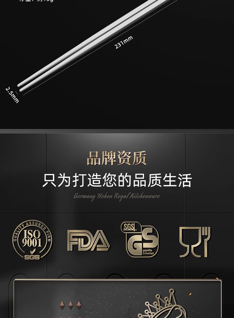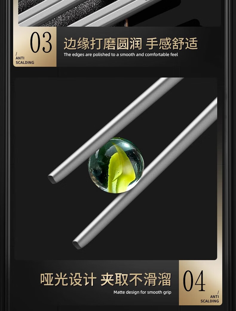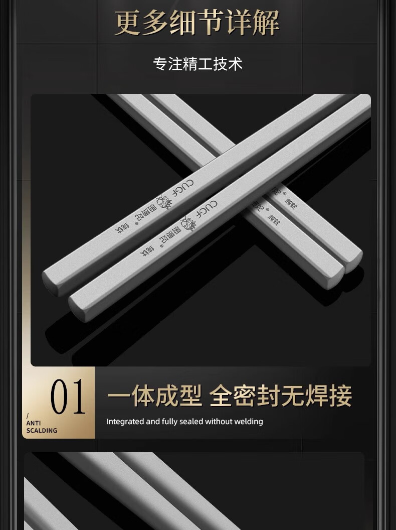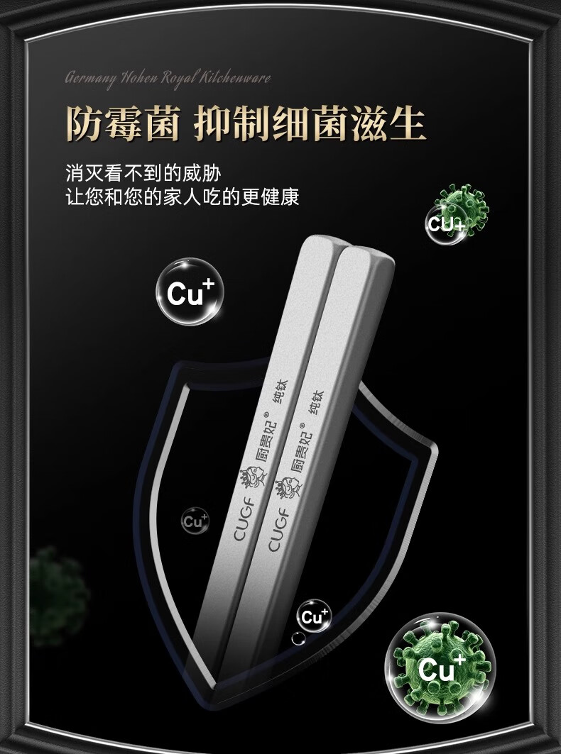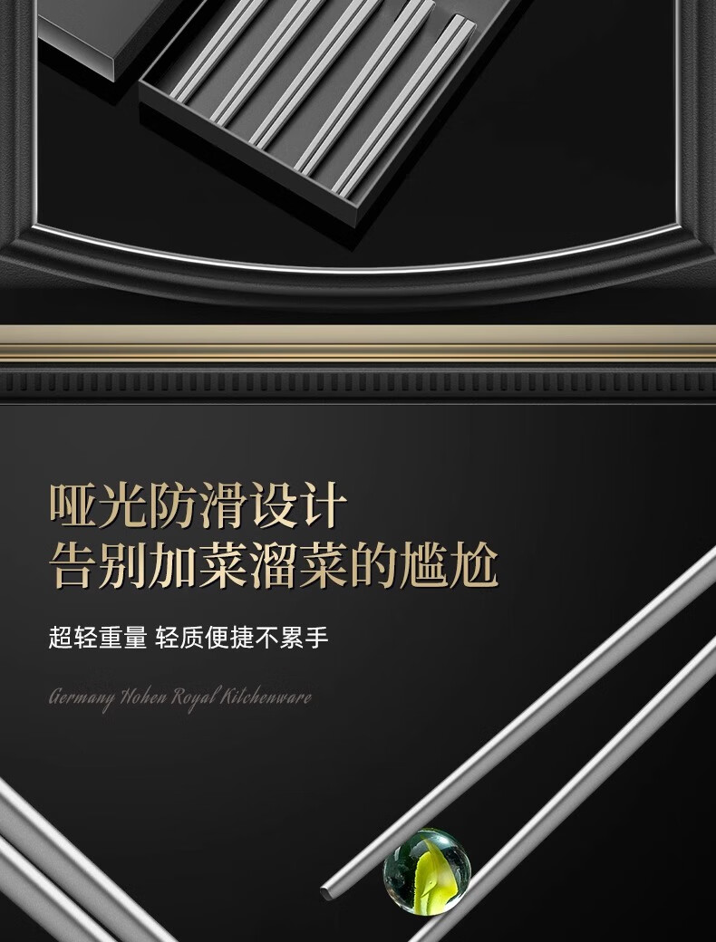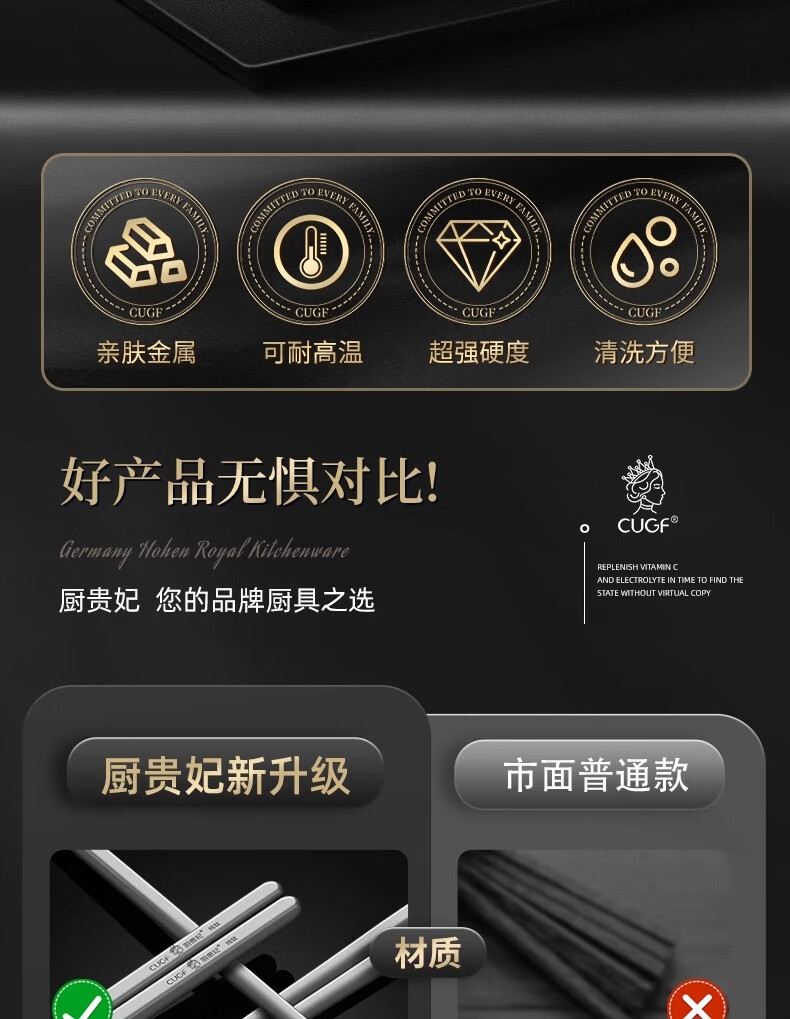 Chu Guifei (CUGF) Chu Guifei pure titanium chopsticks household high-end tableware anti-bacterial and mildew-proof household chopsticks non-slip high temperature resistant portable chopsticks 10 pairs square tail style pure titanium chopsticks