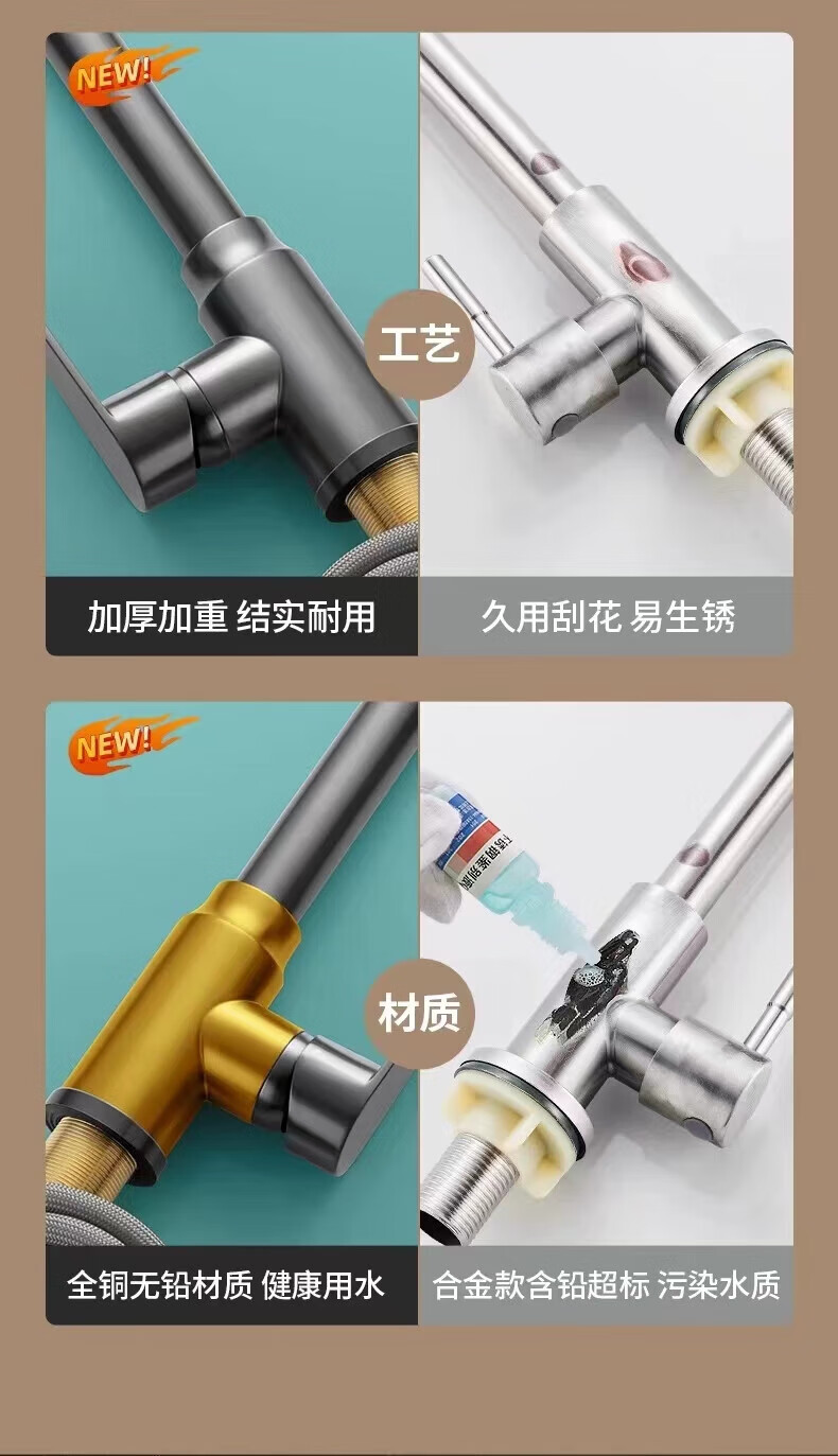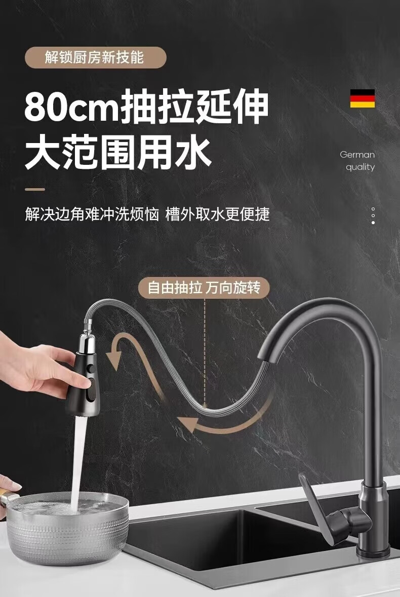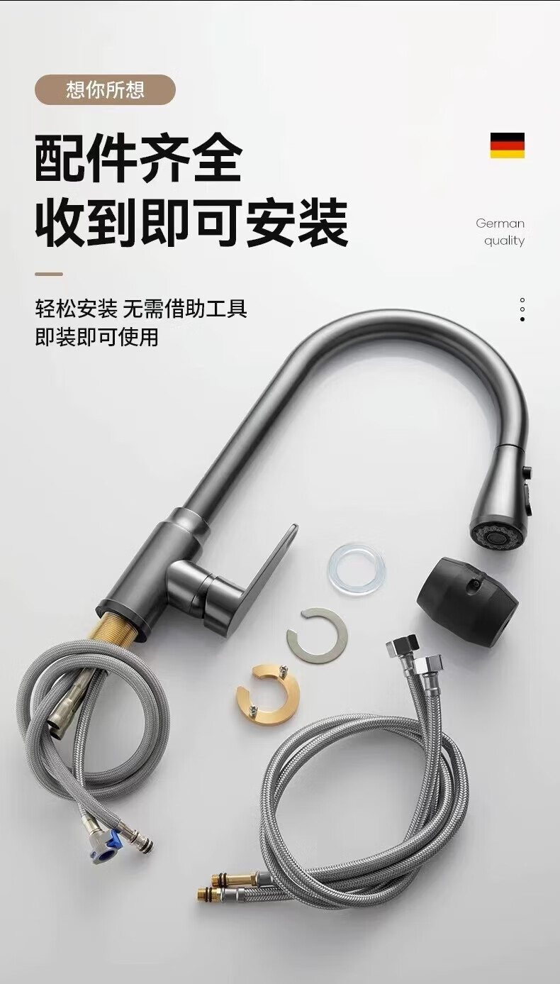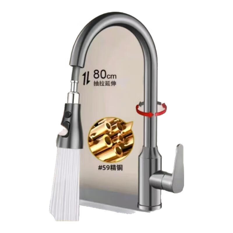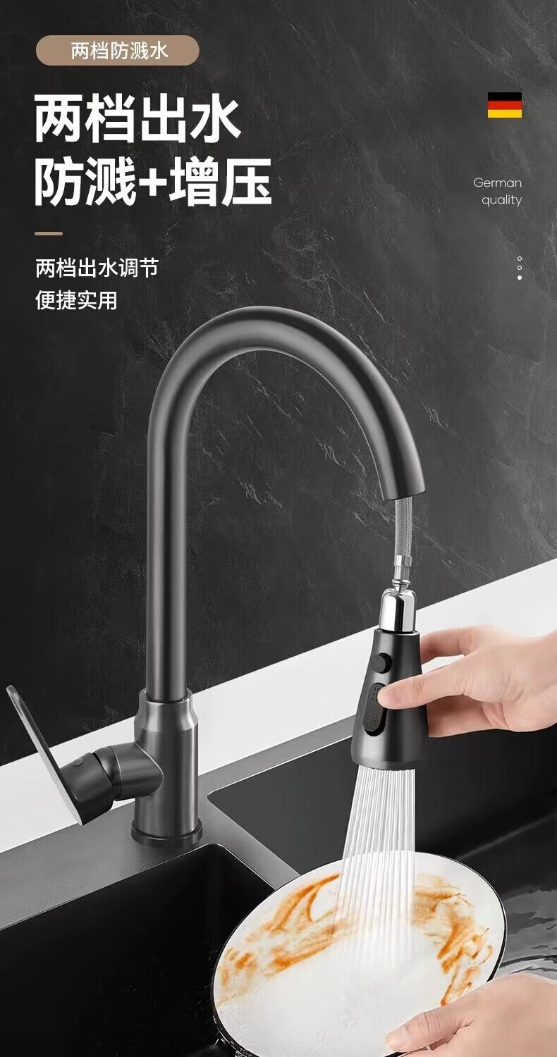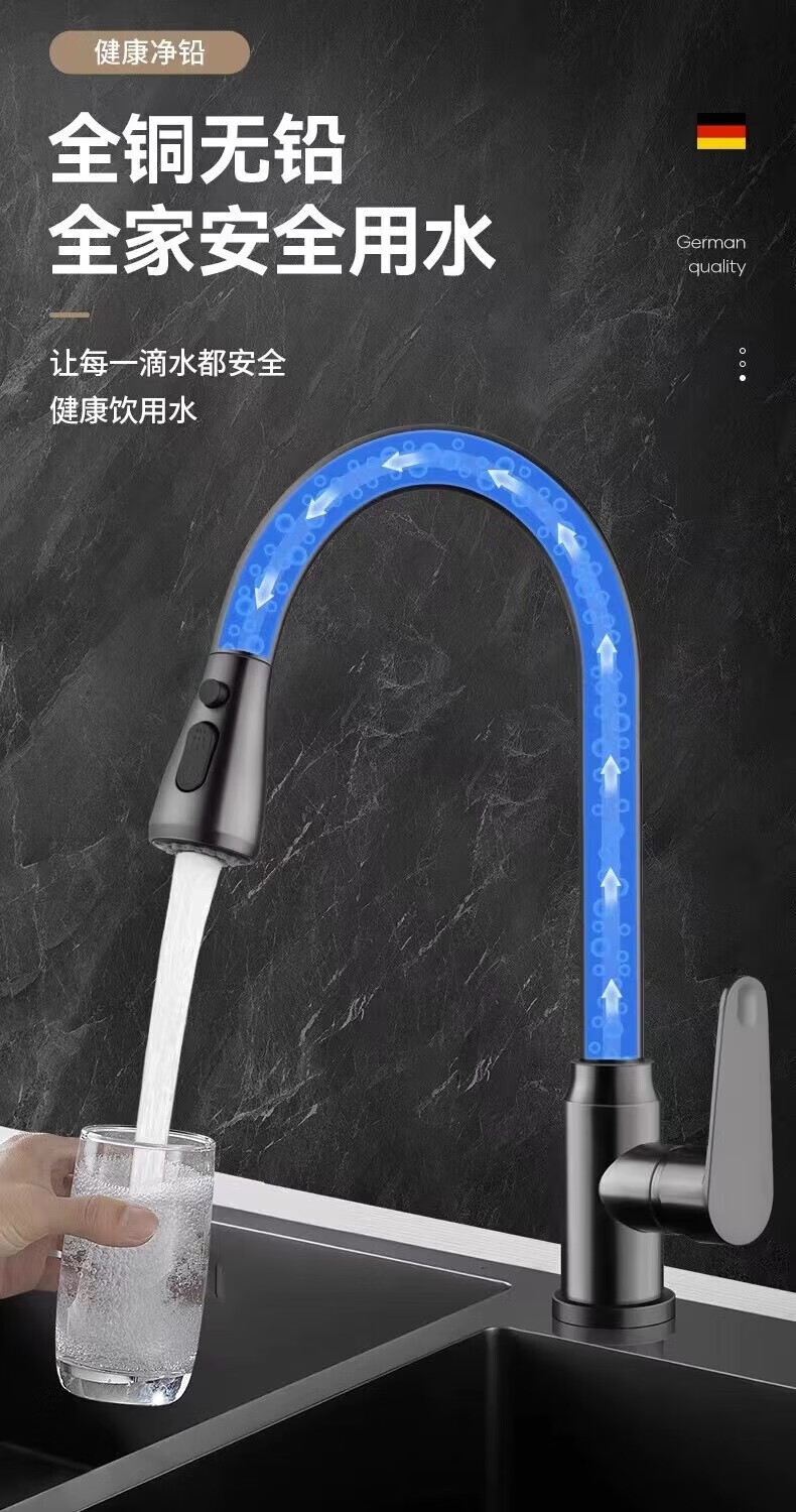 JOMOO all-copper faucet kitchen sink sink hot and cold water pull-out multi-functional household telescopic faucet electroplated three-speed pull-out faucet