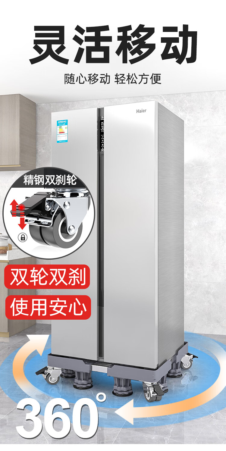 Suitable for Haier refrigerator base special movable universal wheel heightening pulley tripod double door bracket heightening bracket for large size double-tube 8-leg 4-wheel movement