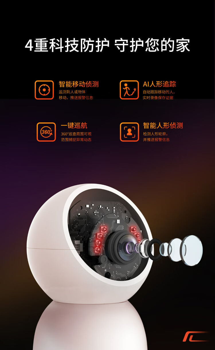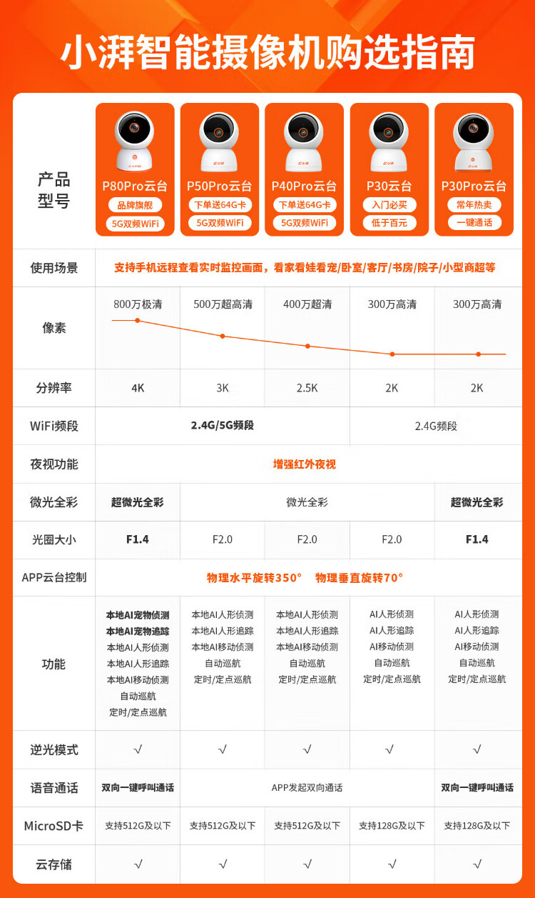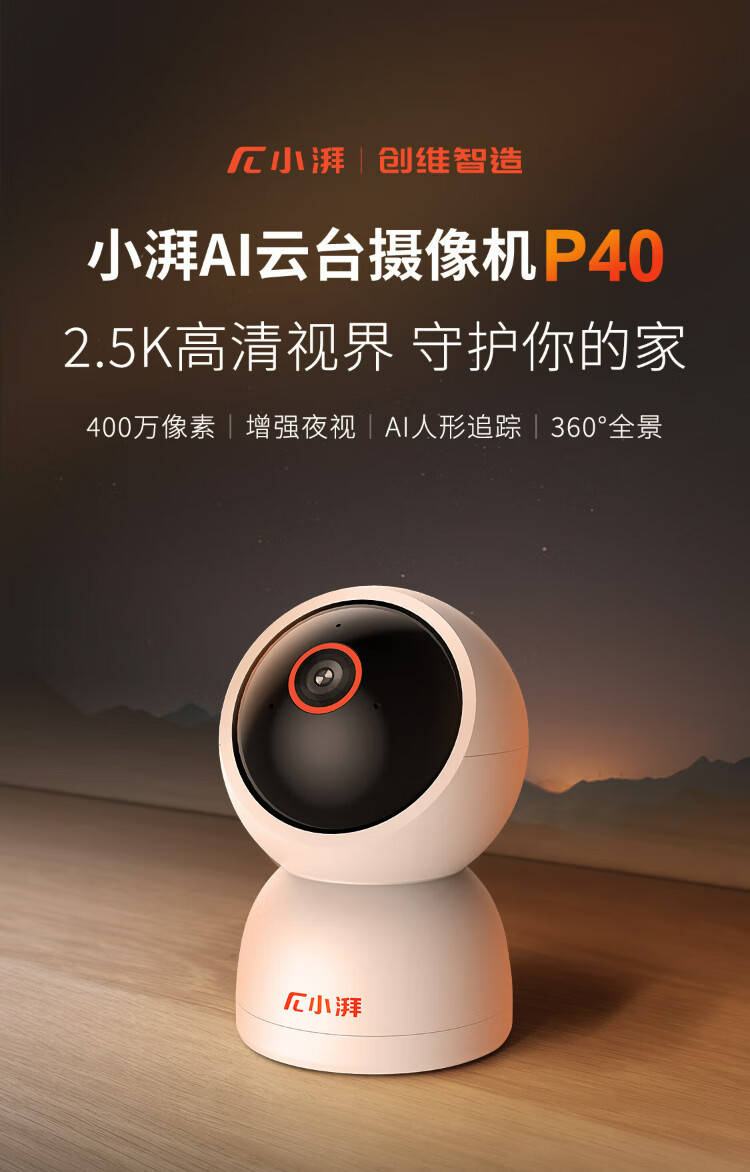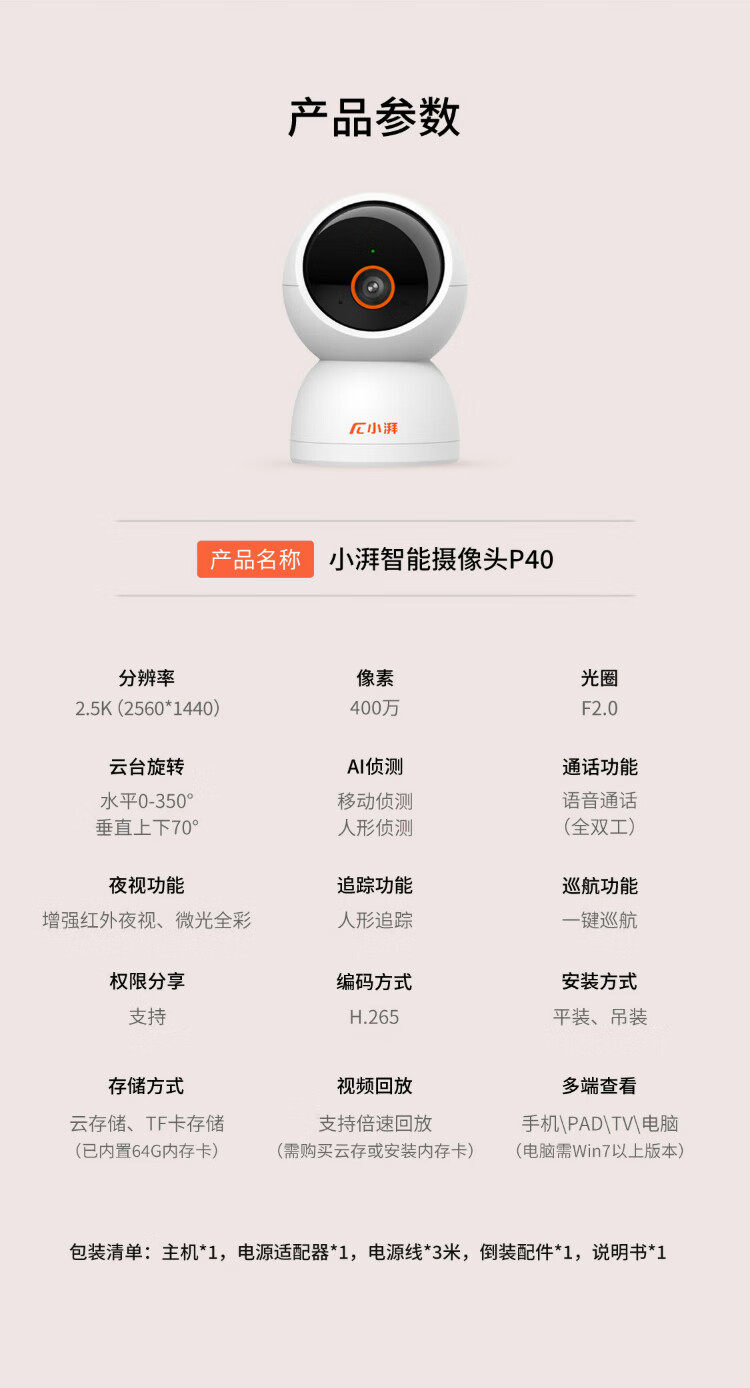 Xiaopai 4 million home surveillance camera P40+ built-in 64G card 2.5K wireless network smart camera 360-degree humanoid tracking 64G memory card