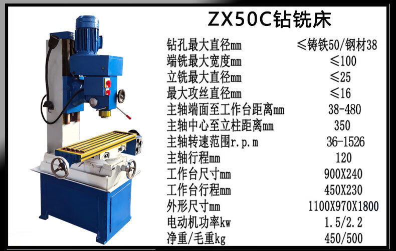 Kezitu ZX vertical drilling and milling machine 50 high-precision multi-function digital display small drilling machine all-in-one machine drill cast iron modified CNC ZX20 drilling and milling machine
