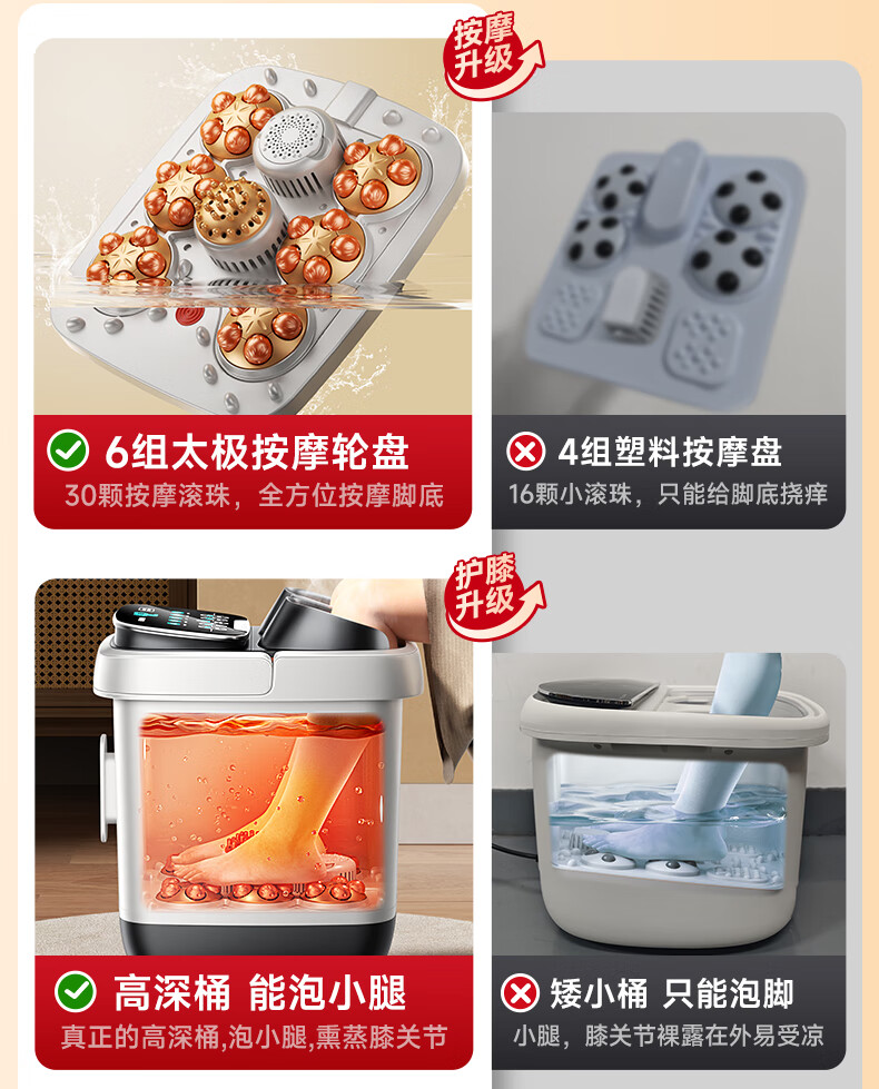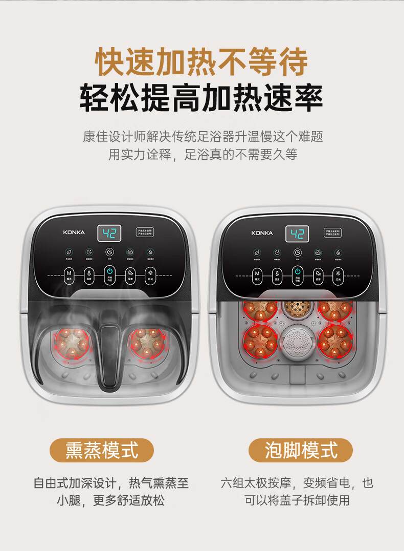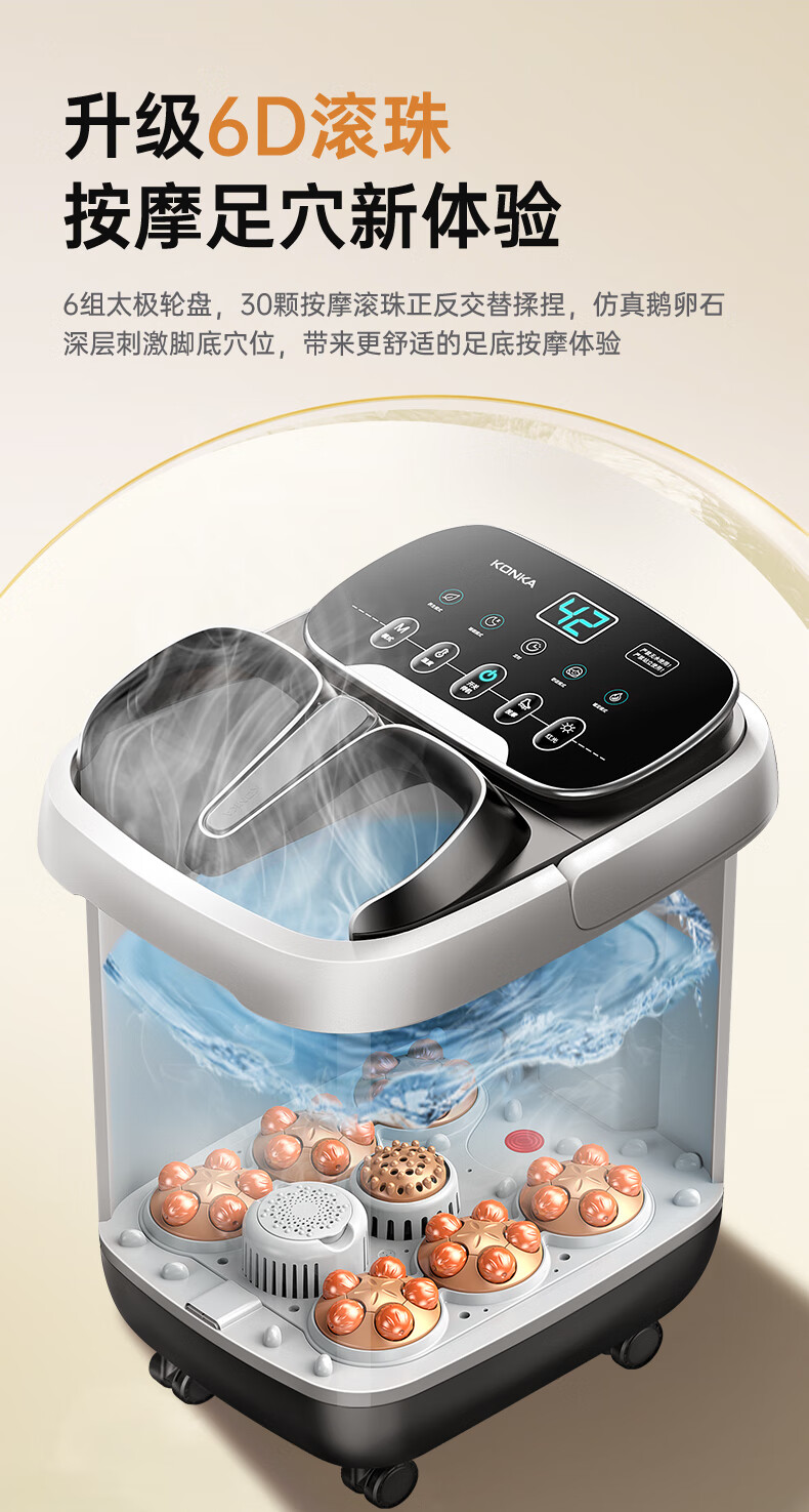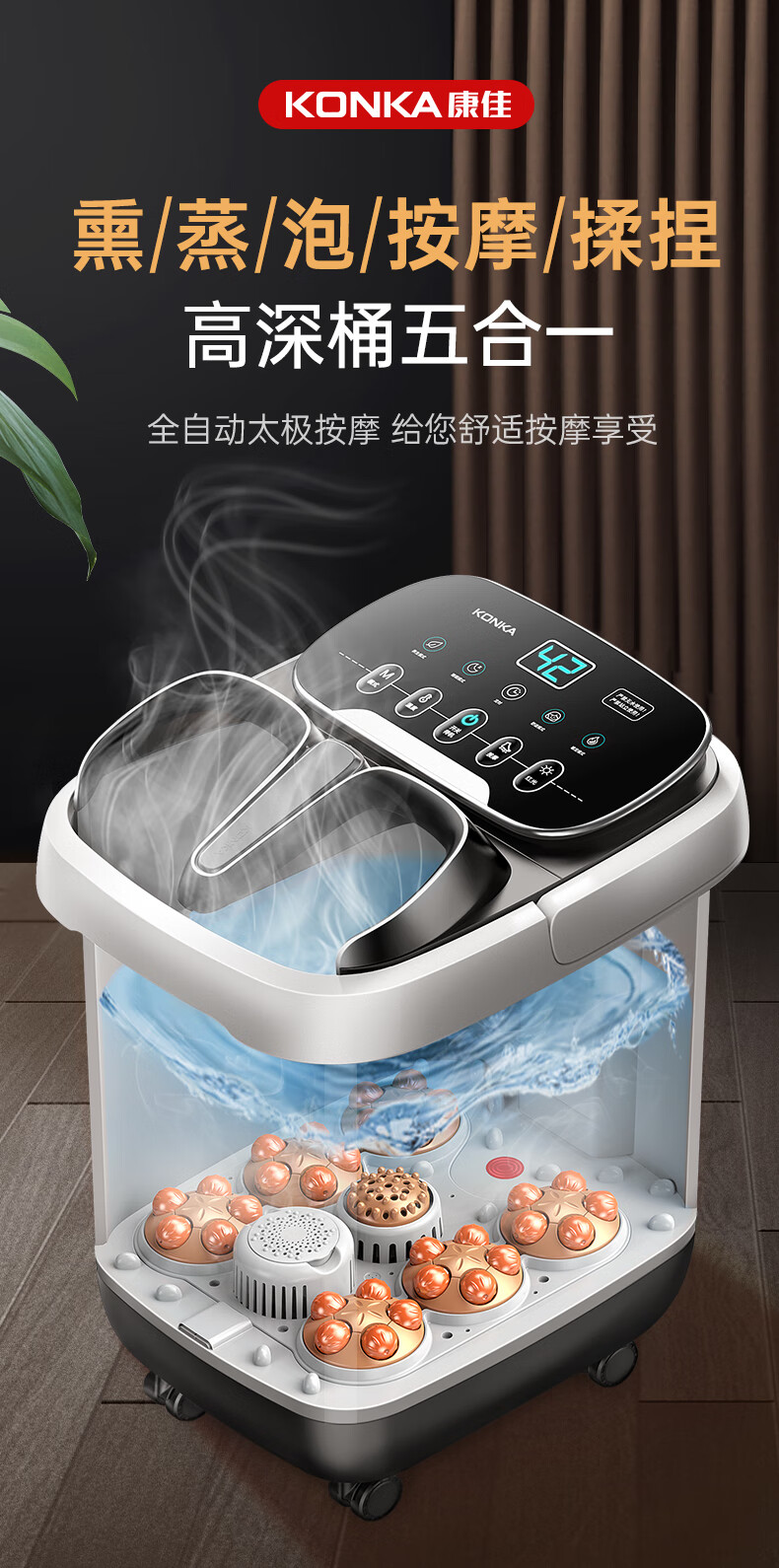 Konka birthday gift foot bath bucket heated constant temperature foot bath fully automatic massage bucket foot bath electric household deep foot bath bucket for the elderly parents upgraded steam fumigation model water and electricity separation + technology bionic massage
