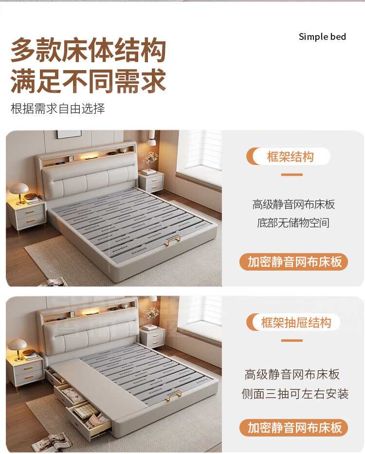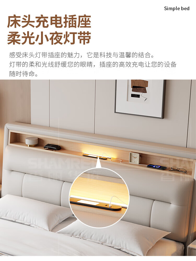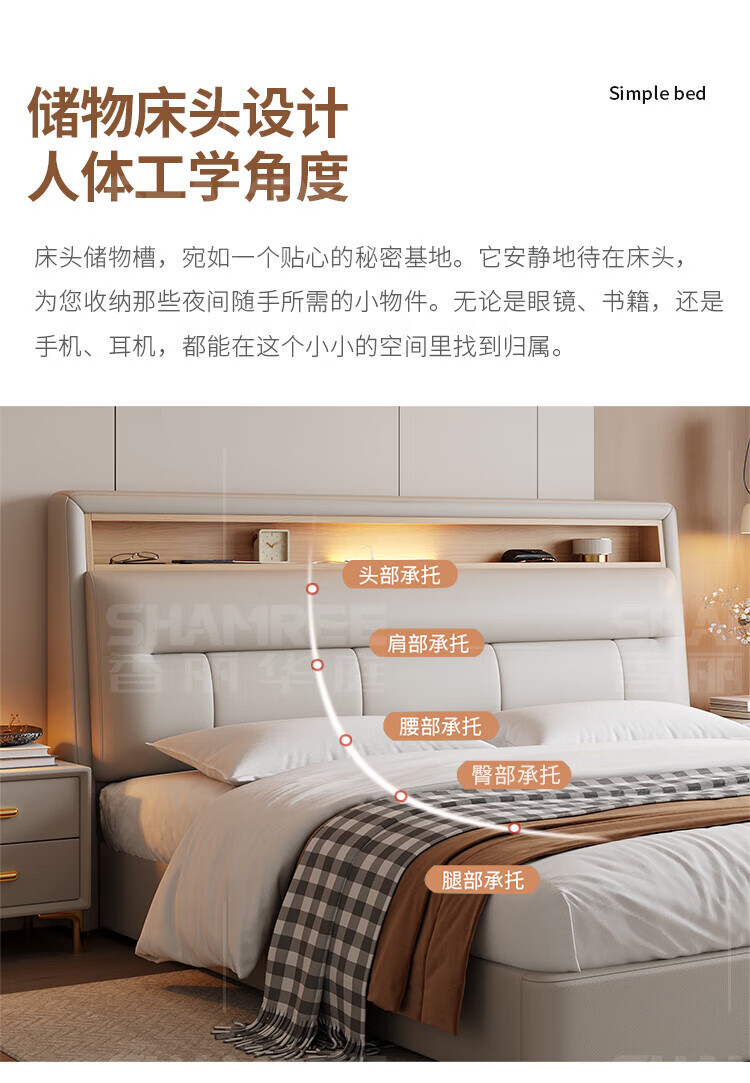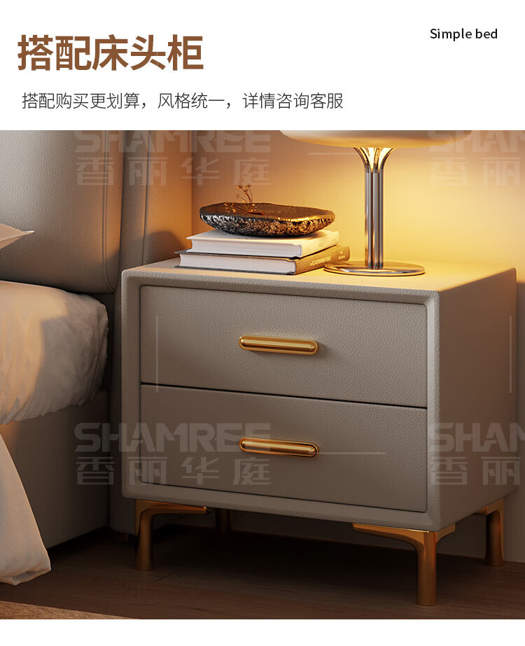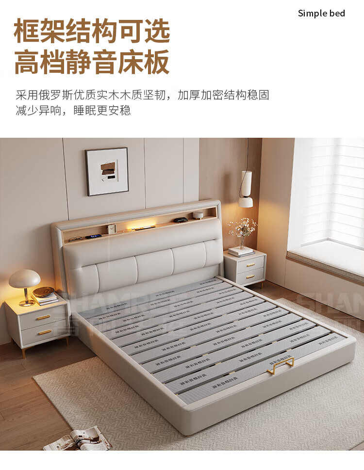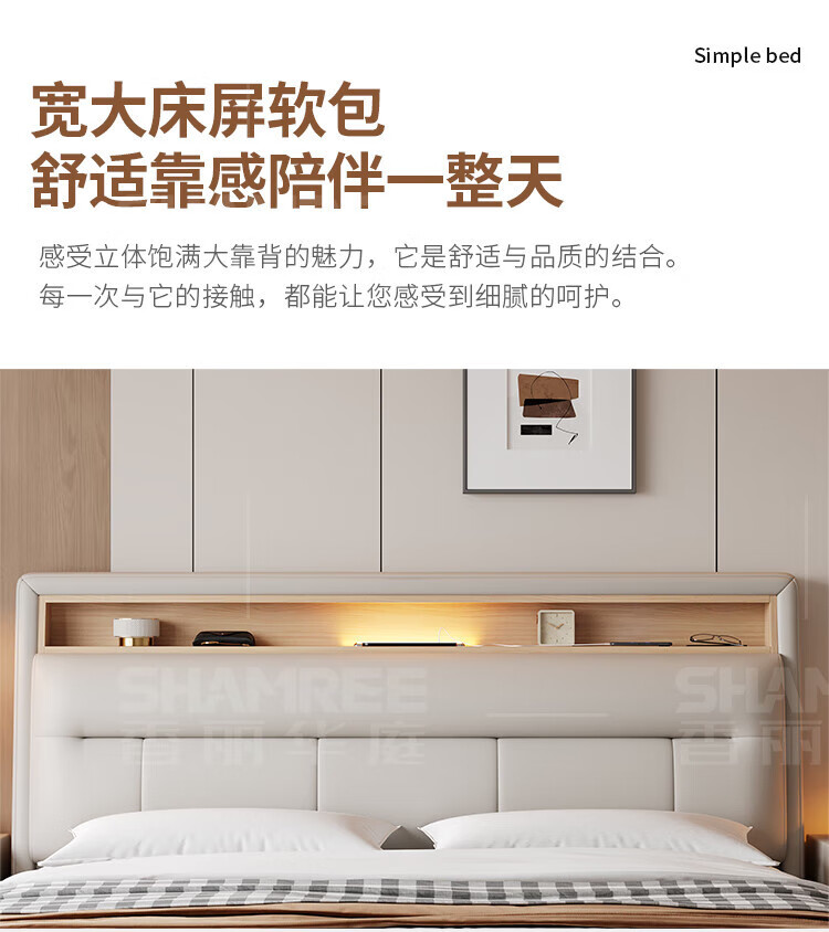 Xiangli Huating Cream Style Simple Double Bed 1.8m