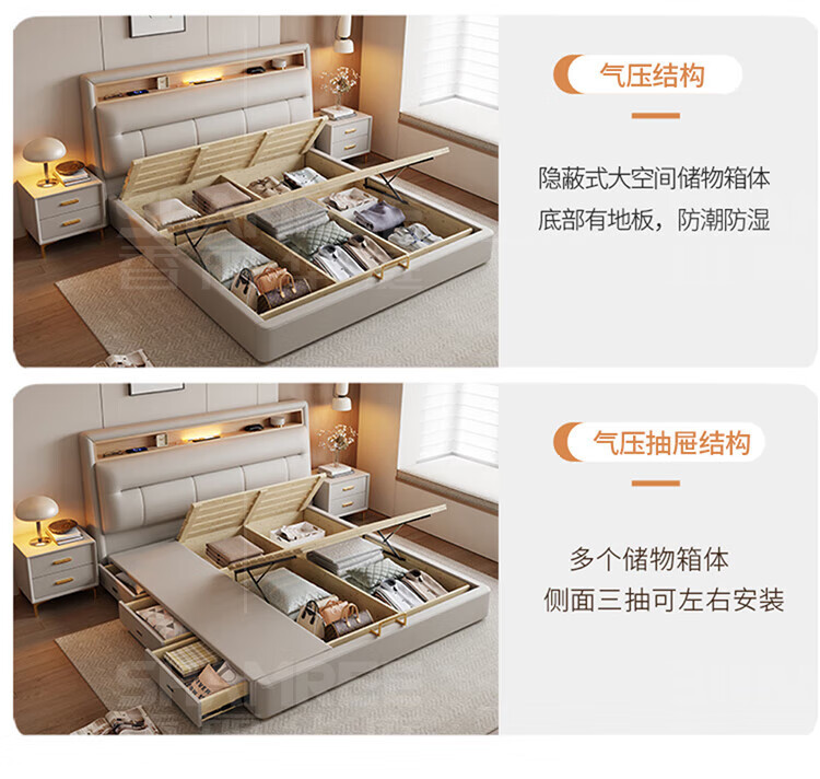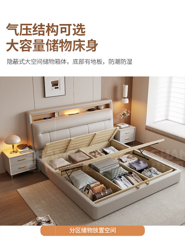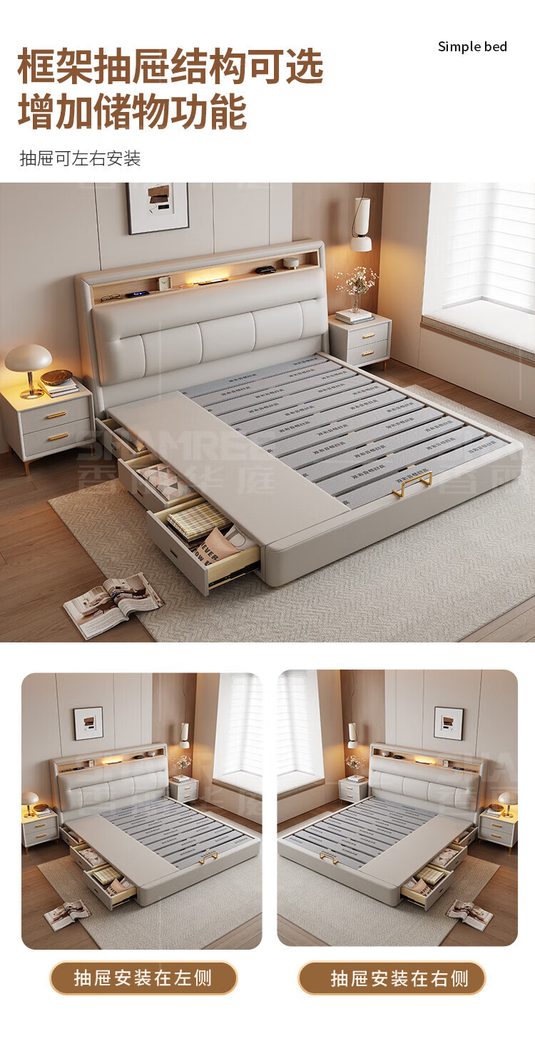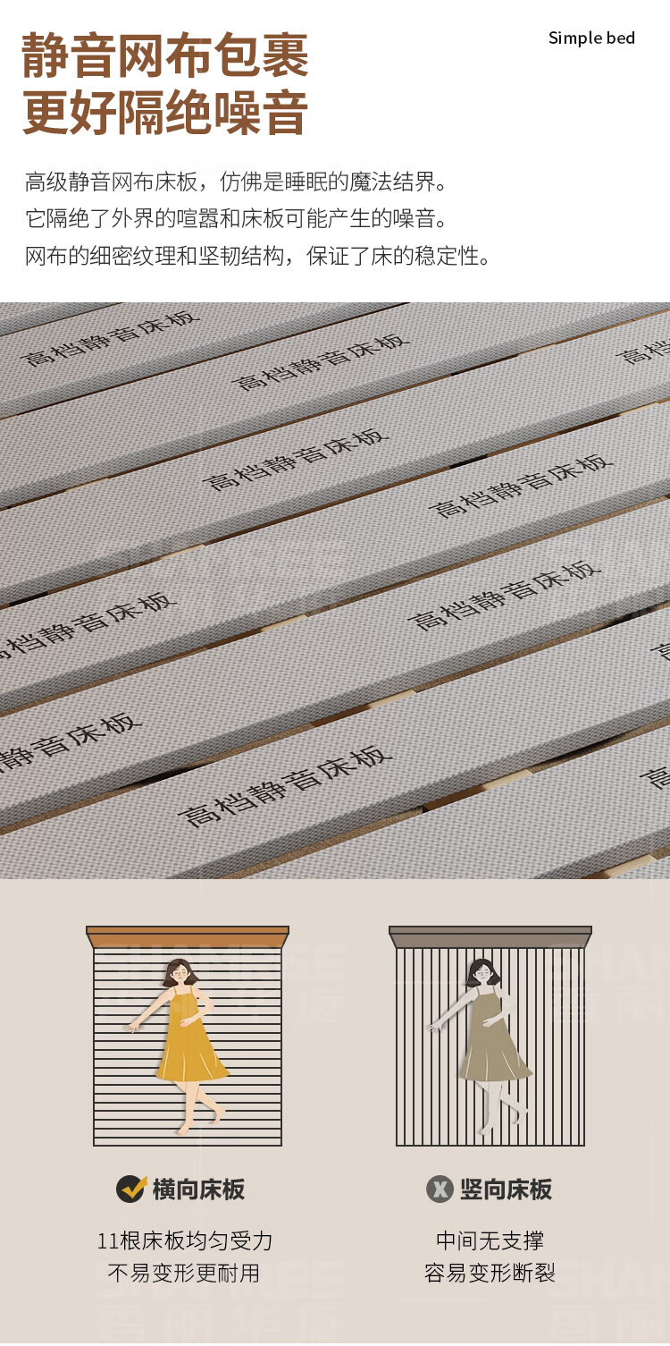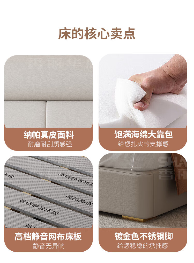 Xiangli Huating Cream Style Simple Double Bed 1.8m