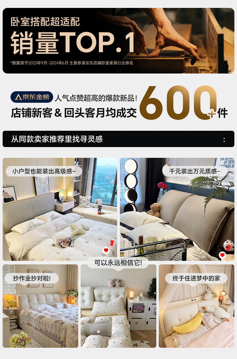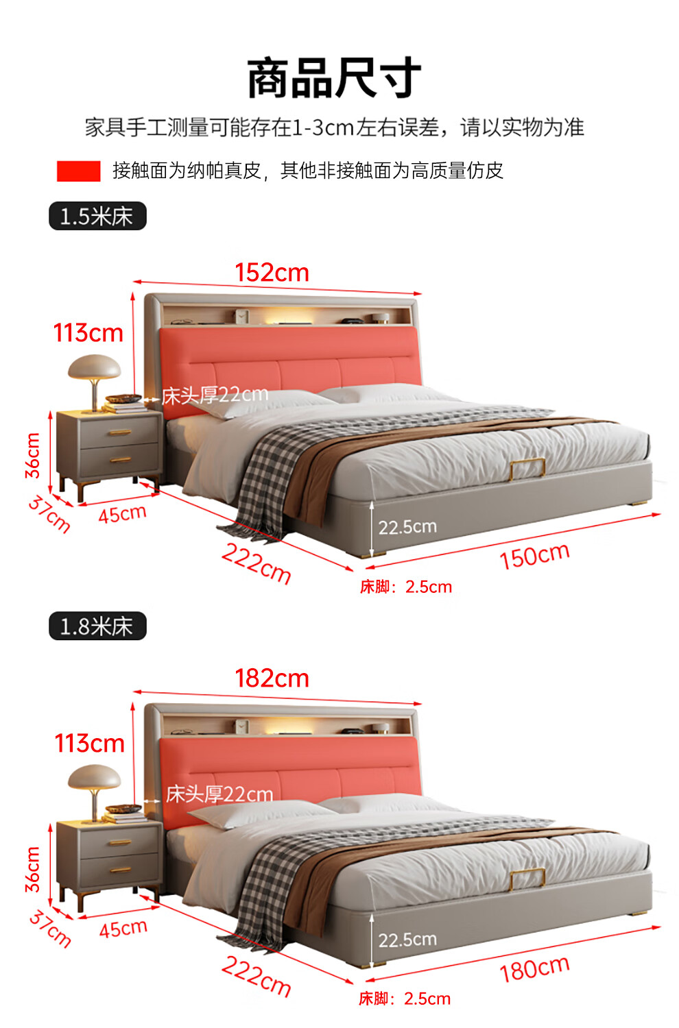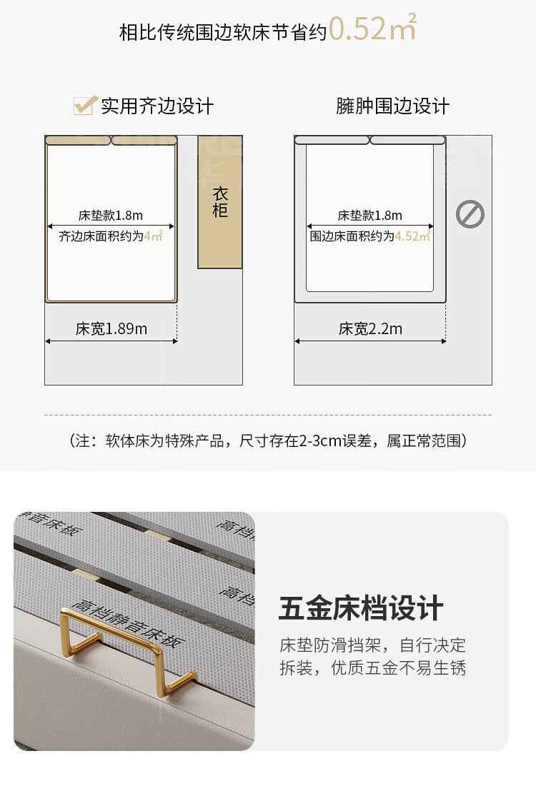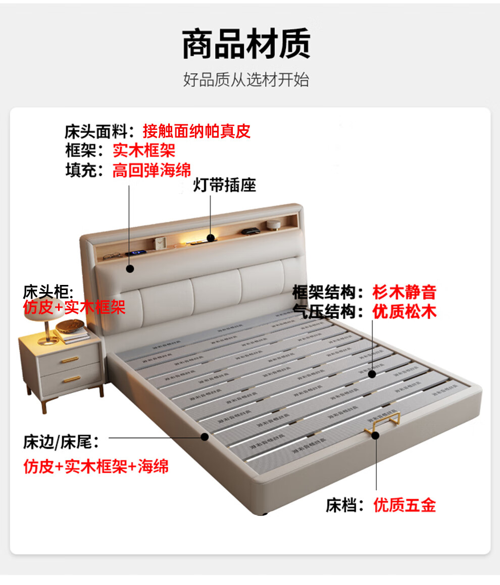 Xiangli Huating Cream Style Simple Double Bed 1.8m