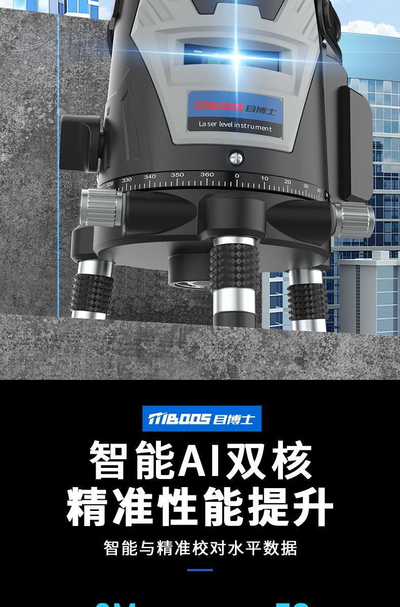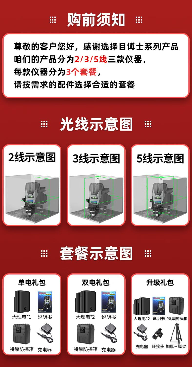 Dr. Mushi green light 5-line level laser infrared outdoor high-precision wall-to-floor automatic leveling level meter German ld green light 2-line upgrade kit + dual lithium battery