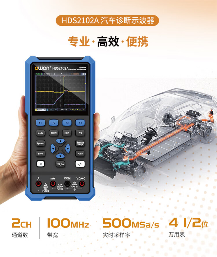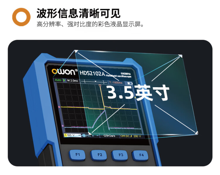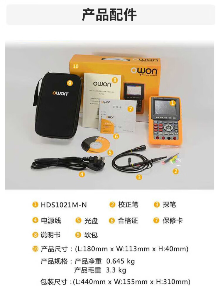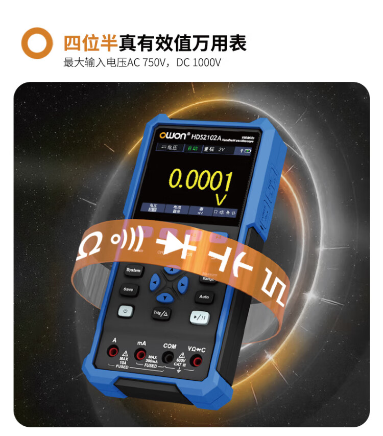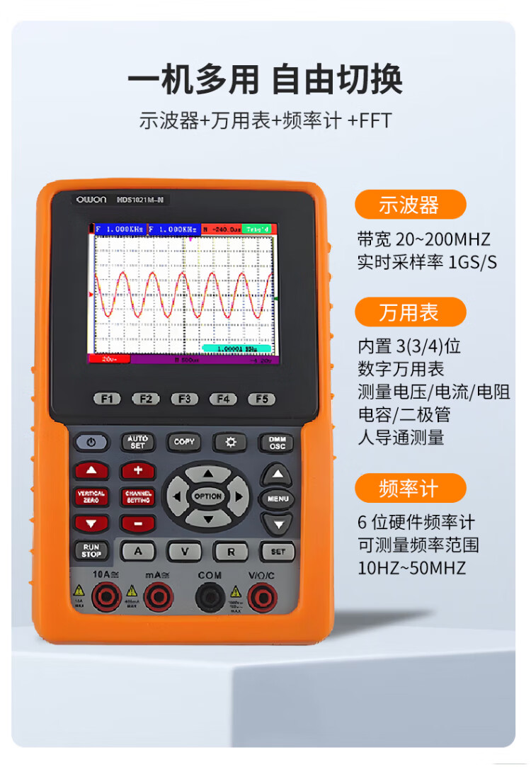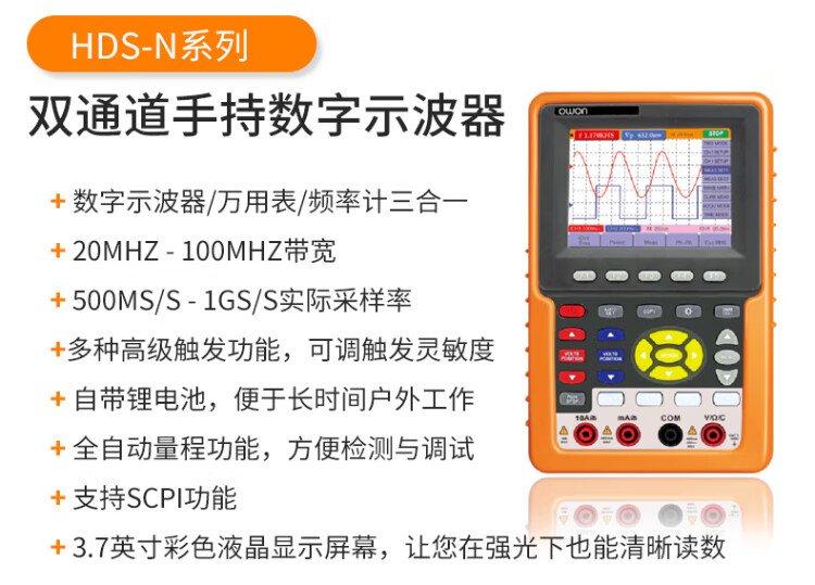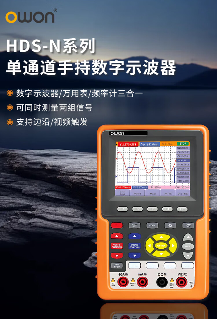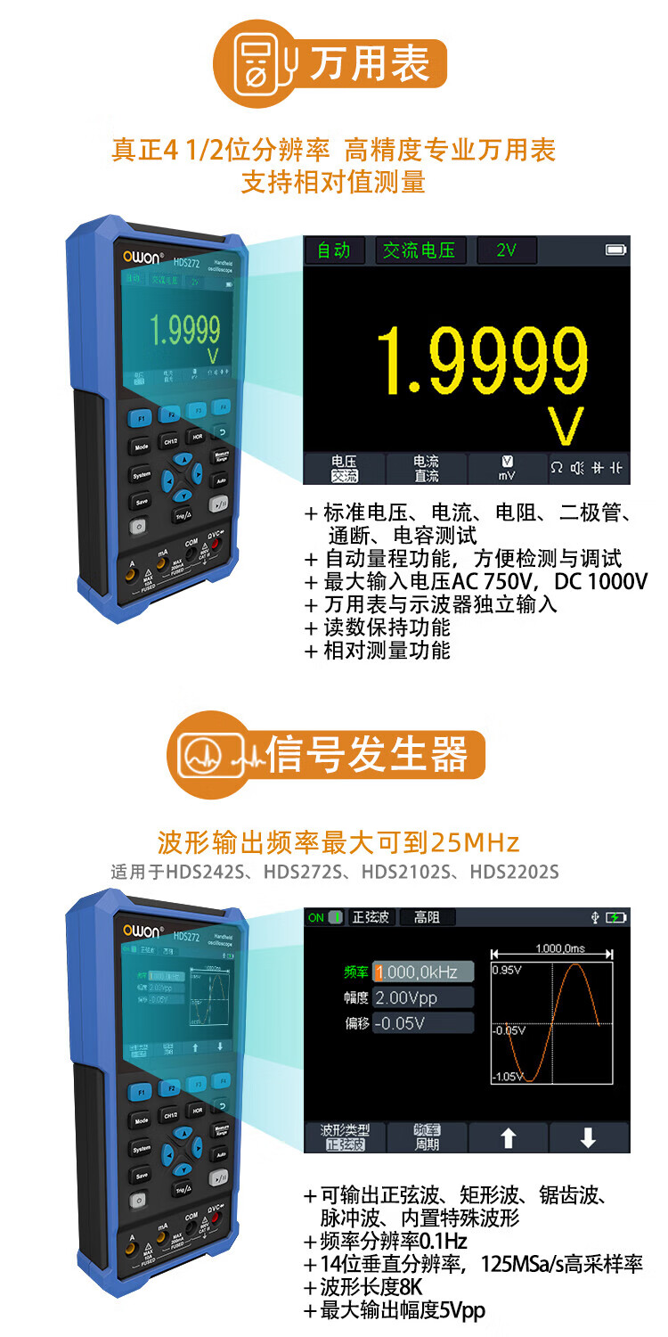 Owon Lilliput handheld oscilloscope HDS200 series dual channel integrated four and a half digit multimeter signal generator HDS2102S (dual channel + signal source 100M)