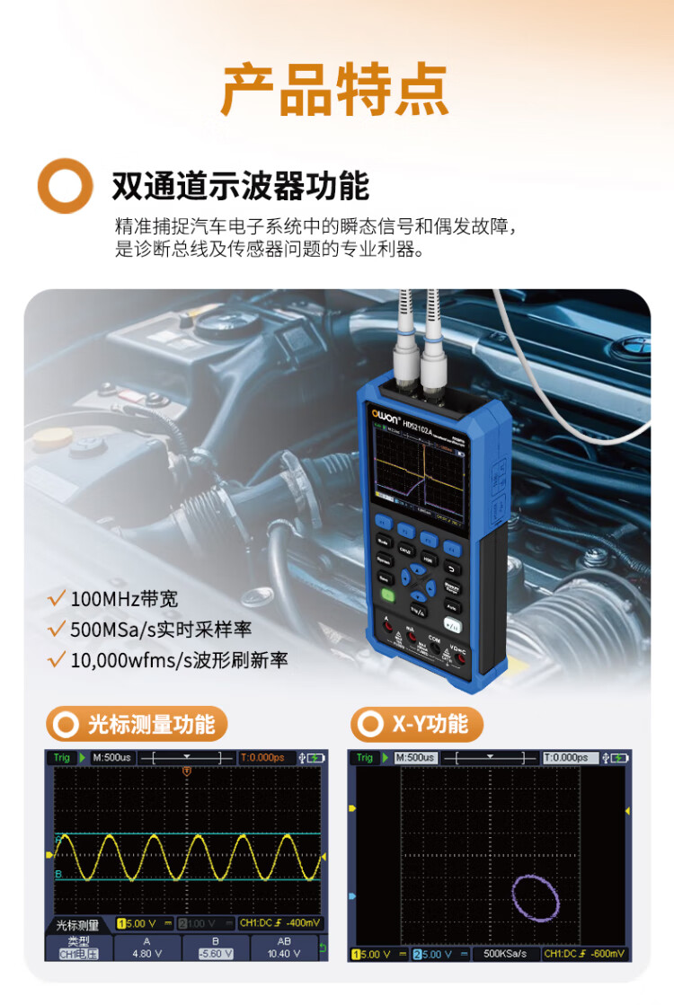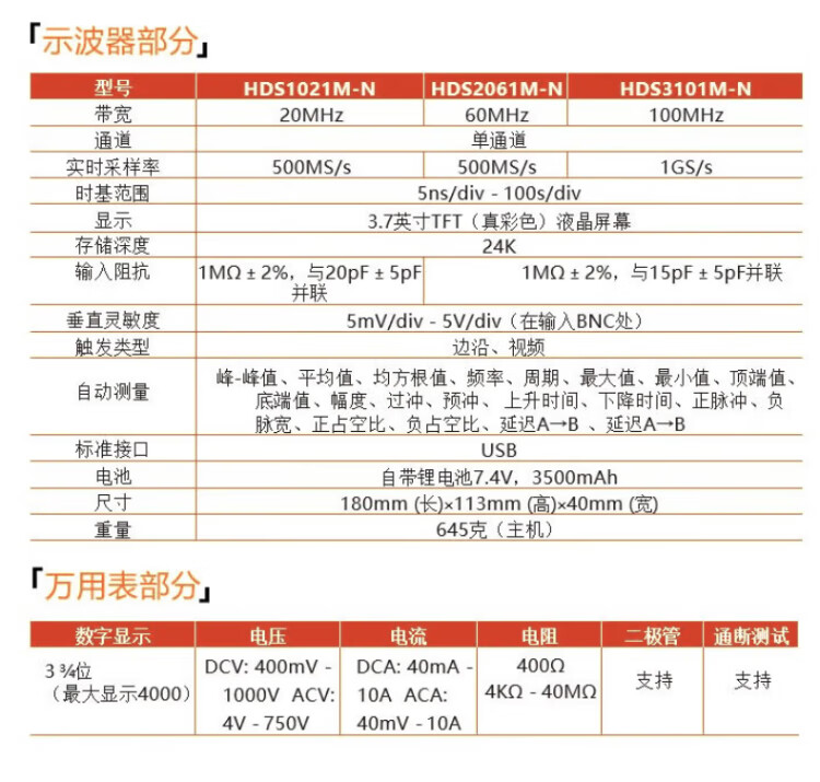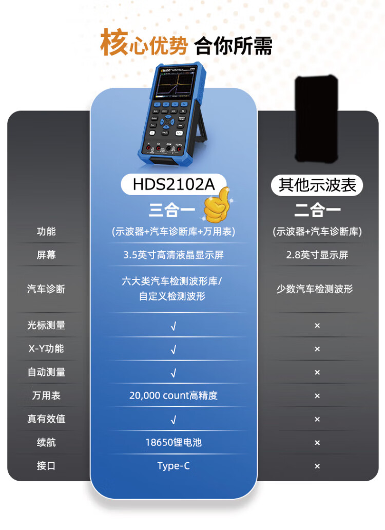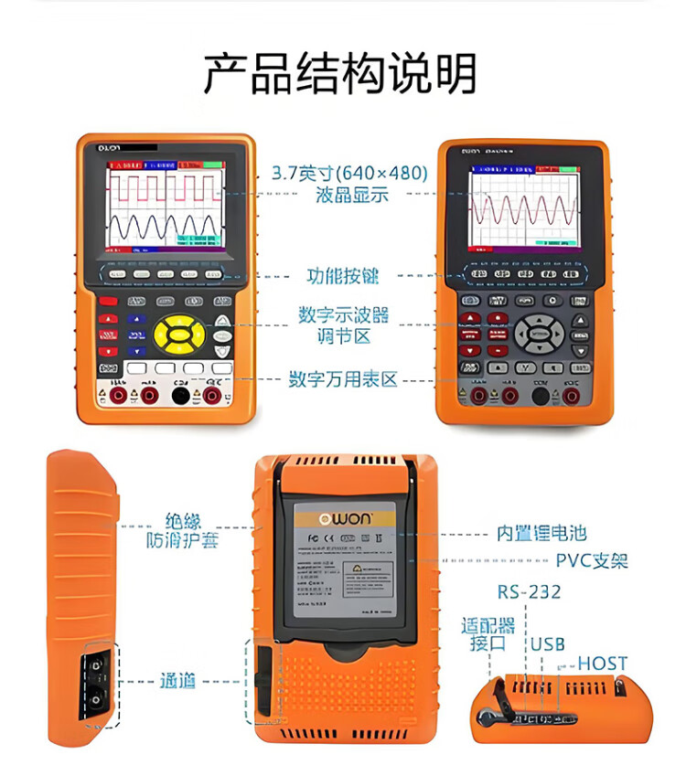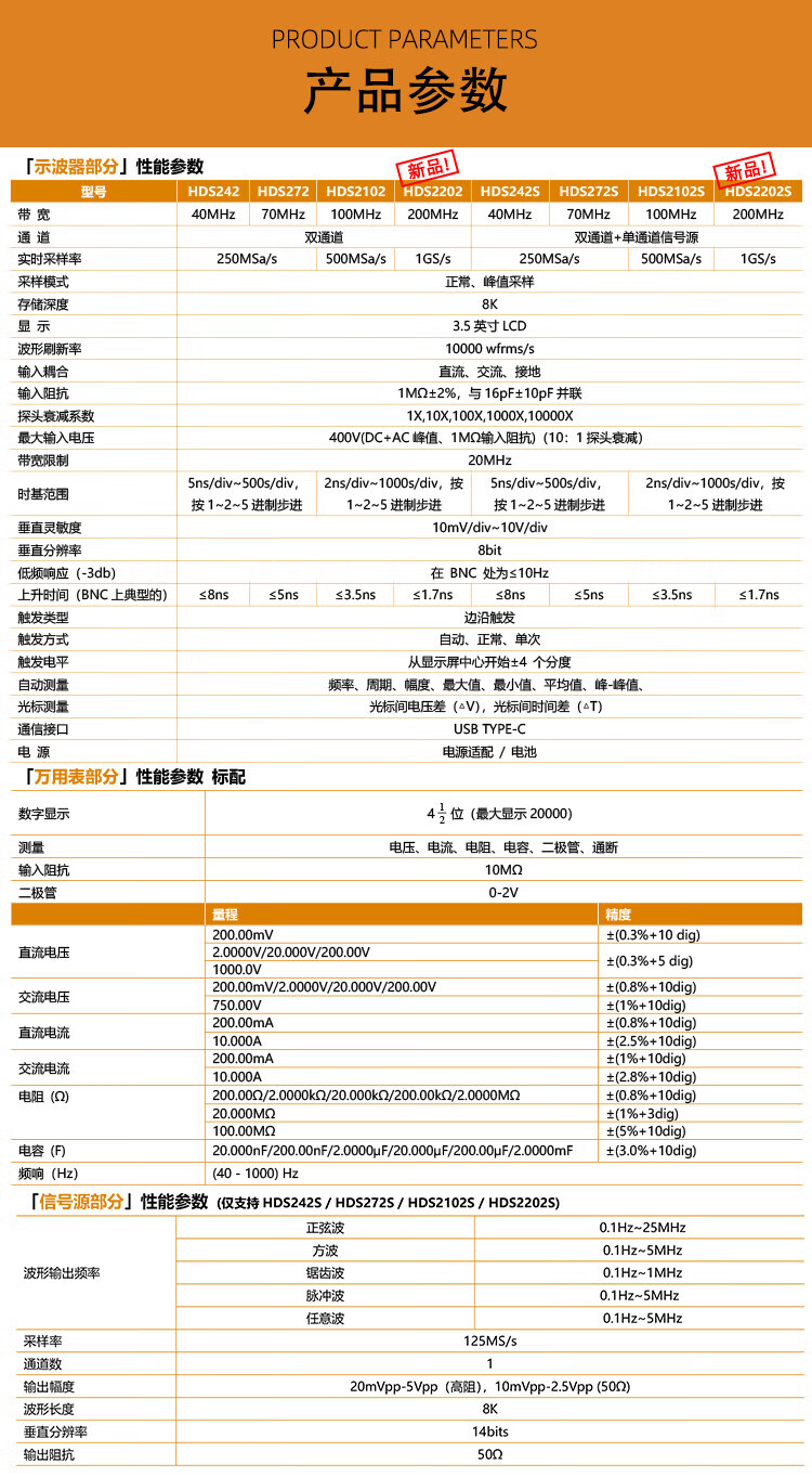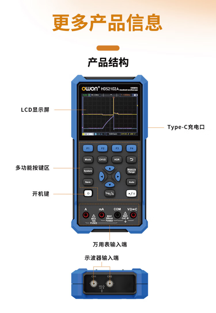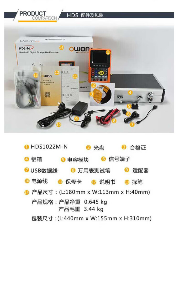 Owon Lilliput handheld oscilloscope HDS200 series dual channel integrated four and a half digit multimeter signal generator HDS2102S (dual channel + signal source 100M)