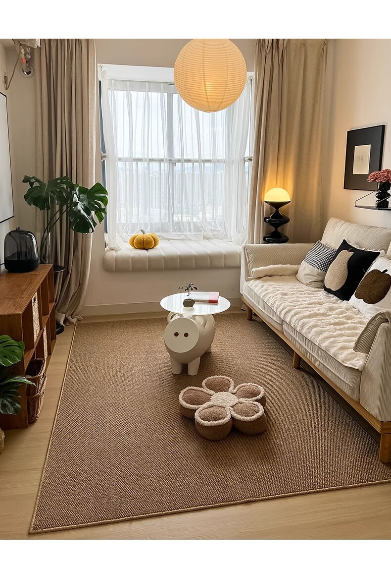 Bangyuan Imitation Sisal Carpet Customized Japanese Living Room 2025 New Light Luxury Sofa Cushion Studio Photography Floor Mat Cat Scratching Mat Large Grain Pineapple Pattern-Camel-Cotton Linen Bottom Customized